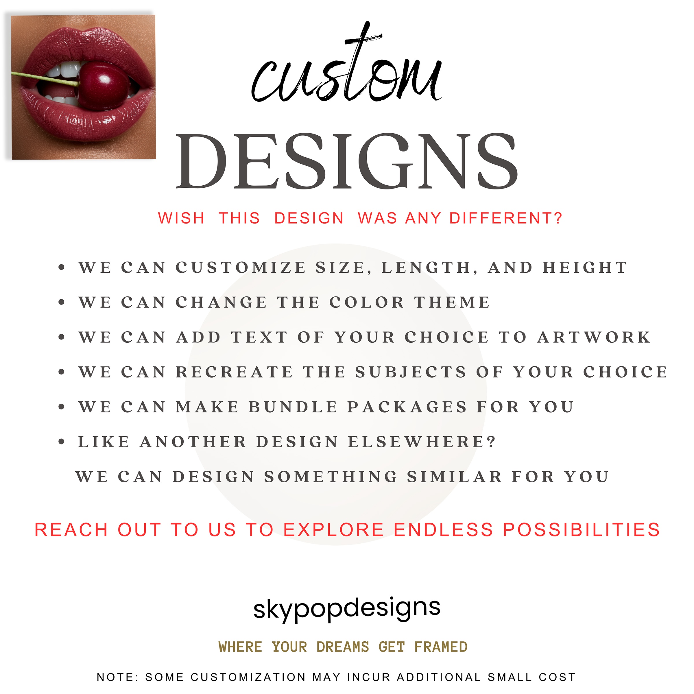 At SKYPOPDESIGNS, we specialize in high-quality canvas and poster prints designed to bring sophistication and style to your space. Please note that our designs are not created with 3D textures or as original oil, acrylic, or watercolor paintings; they are instead HD reproductions of original artwork. This approach allows us to offer these visually stunning pieces at competitive prices, ensuring you receive top-tier, maintenance-free art that’s easy to enjoy.