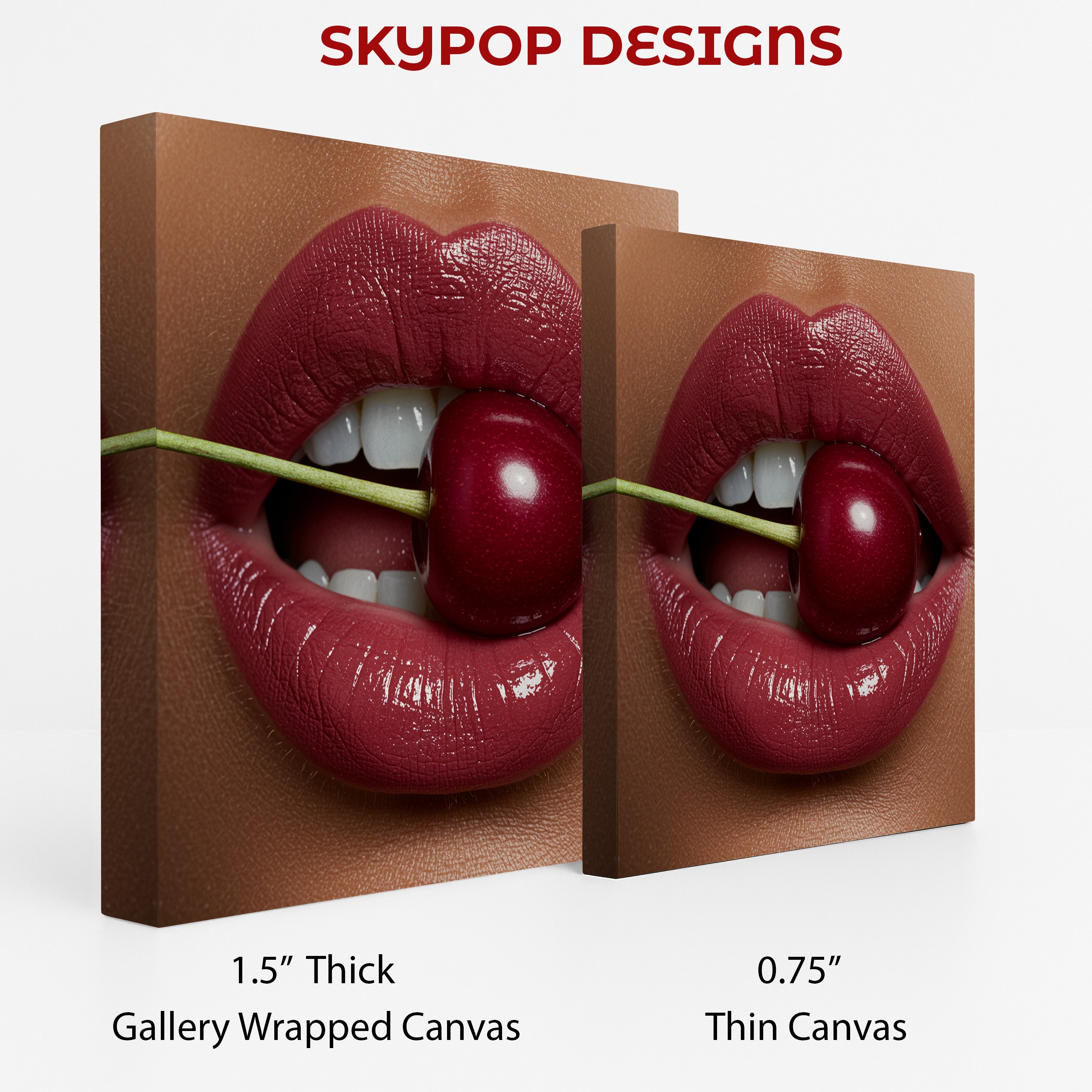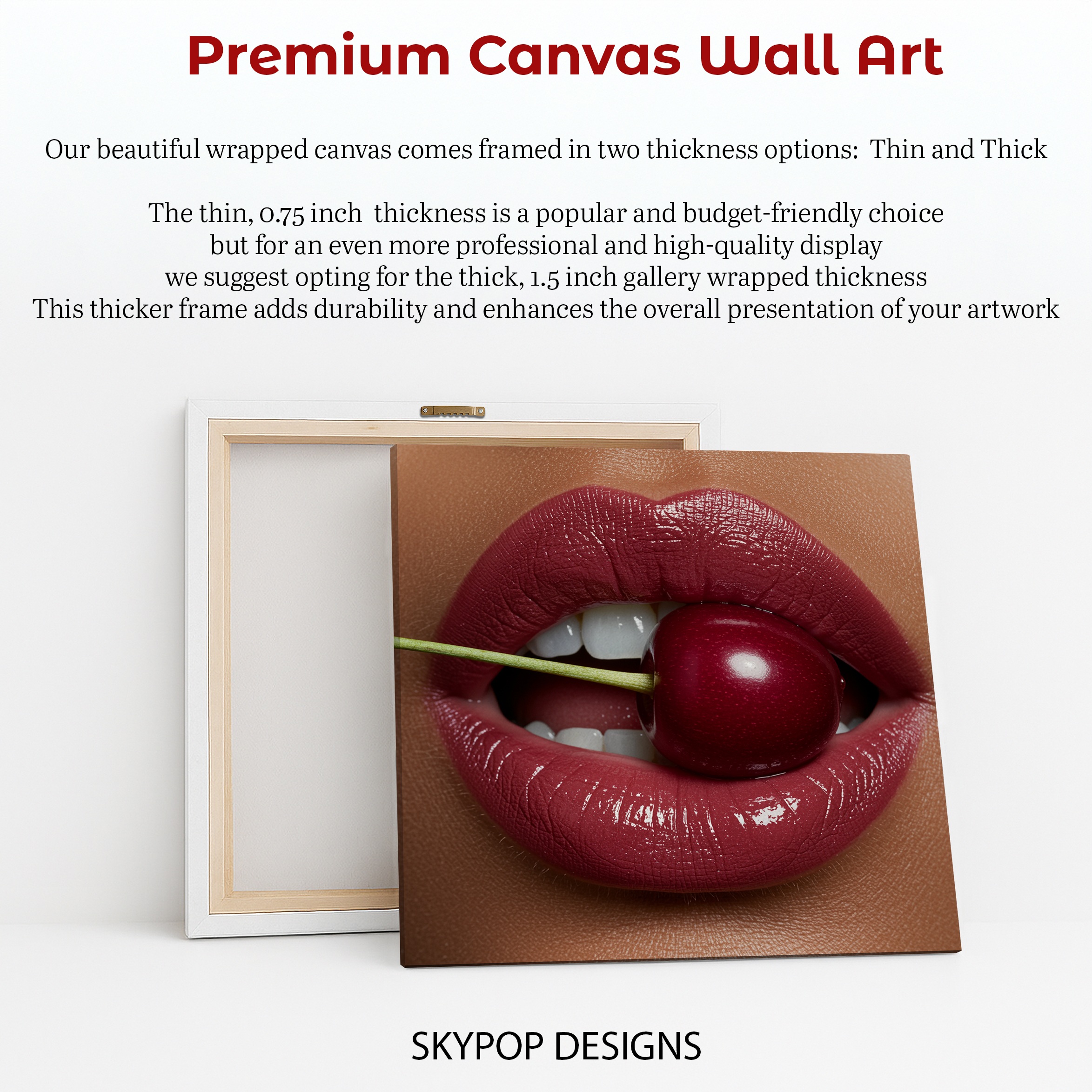 Elevate your space with this striking cherry lips canvas wall art that combines sensuality and sophistication. This eye-catching poster features luscious maroon lips holding a ripe cherry, creating a bold and alluring focal point for any room. Perfect for modern bedrooms or contemporary living rooms, this piece adds a touch of glamour and intrigue to your decor. The vibrant red tones pop against the neutral background, making a powerful statement that demands attention. Ideal for those who love edgy, fashion-forward design, this canvas wall art effortlessly blends pop art aesthetics with timeless appeal. The high-contrast imagery and glossy finish of the cherry create depth and dimension, ensuring this piece remains captivating from every angle. Whether you’re looking to spice up a dining room or add a daring element to your bathroom decor, this versatile artwork adapts beautifully to various interior styles. The impeccable detail captured in the lips’ texture and the cherry’s sheen showcases superior print quality. Make a bold statement in your home or surprise a friend with this unique housewarming gift that celebrates confidence and allure. Transform your space today with this unforgettable piece of wall art that’s sure to spark conversation and admiration.