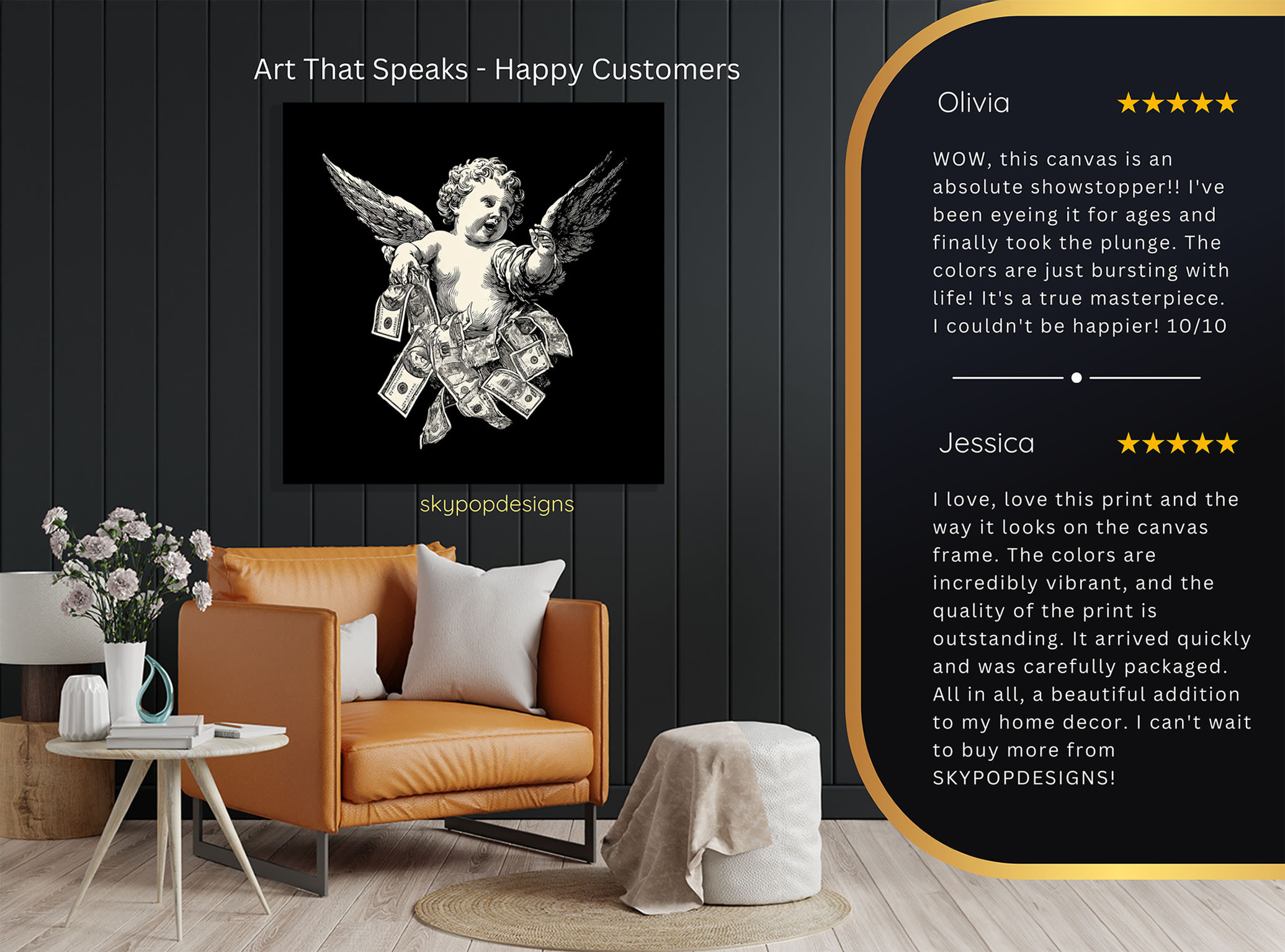 At SKYPOPDESIGNS, we specialize in high-quality canvas and poster prints designed to bring sophistication and style to your space. Please note that our designs are not created with 3D textures or as original oil, acrylic, or watercolor paintings; they are instead HD reproductions of original artwork. This approach allows us to offer these visually stunning pieces at competitive prices, ensuring you receive top-tier, maintenance-free art that’s easy to enjoy.