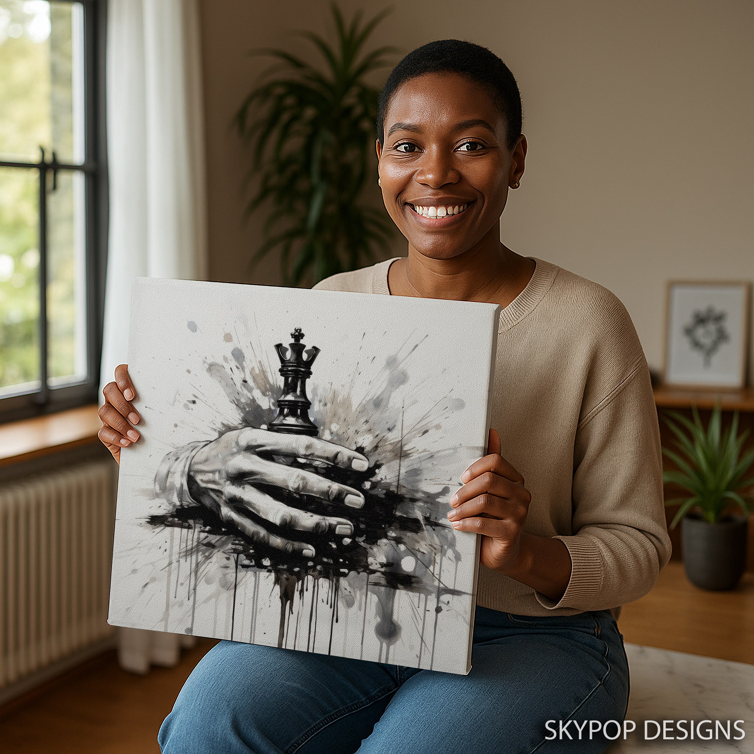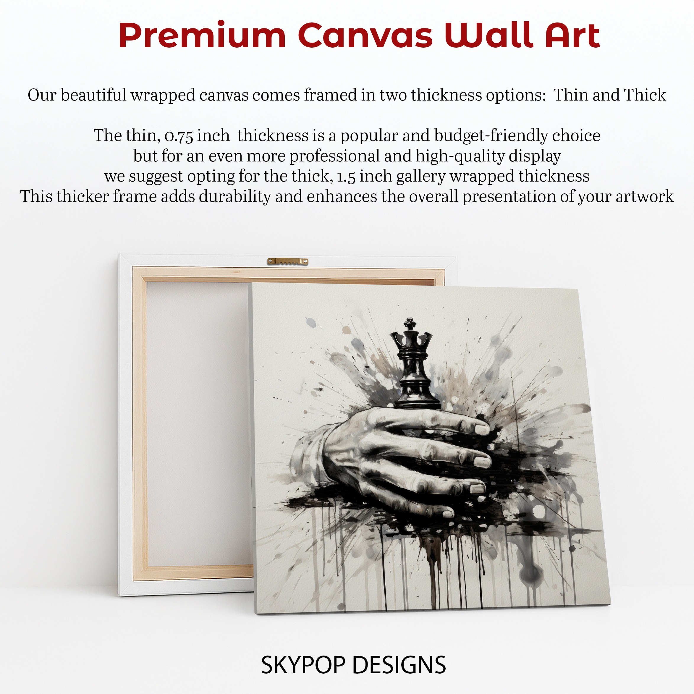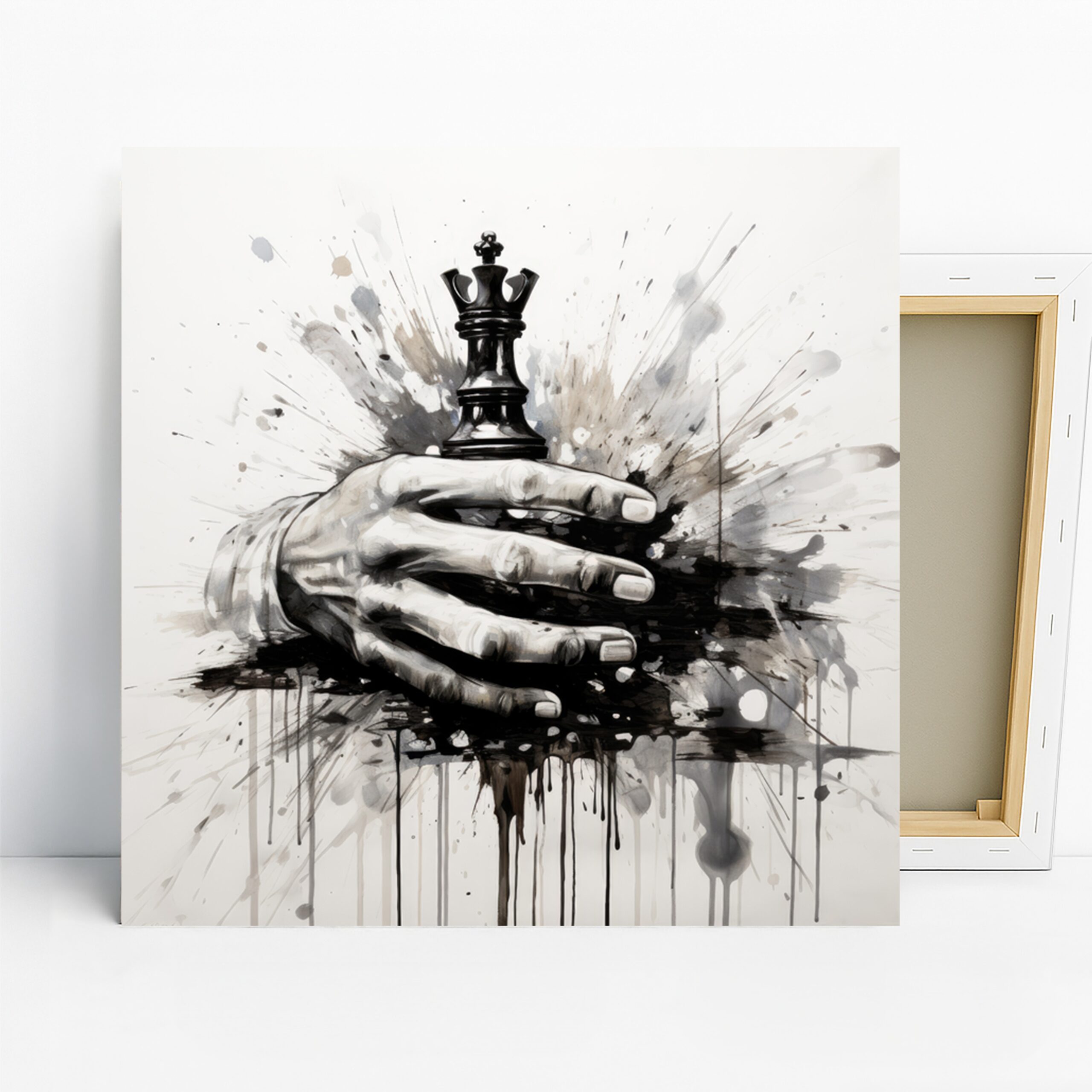 Keywords: Abstract Art, Contemporary Art, Minimalism Art, Modern Decor, Minimalist Decor, Contemporary Decor, Wall Art, Canvas Wall Art, Poster Art, Living Room Art, Office Art, Study Art, Game Room Art, Black and White Art, Grey Art, Black Art, Chess Art, Chess Masterpiece, King Chess Art, Hand Art, Ink Splatter Art, Dynamic Ink, Artistic Texture, Statement Piece, Modern Sophistication, Strategic Depth, Power Symbolism, Intellect Decor, Bold Graphic Art, Gift for Chess Enthusiast