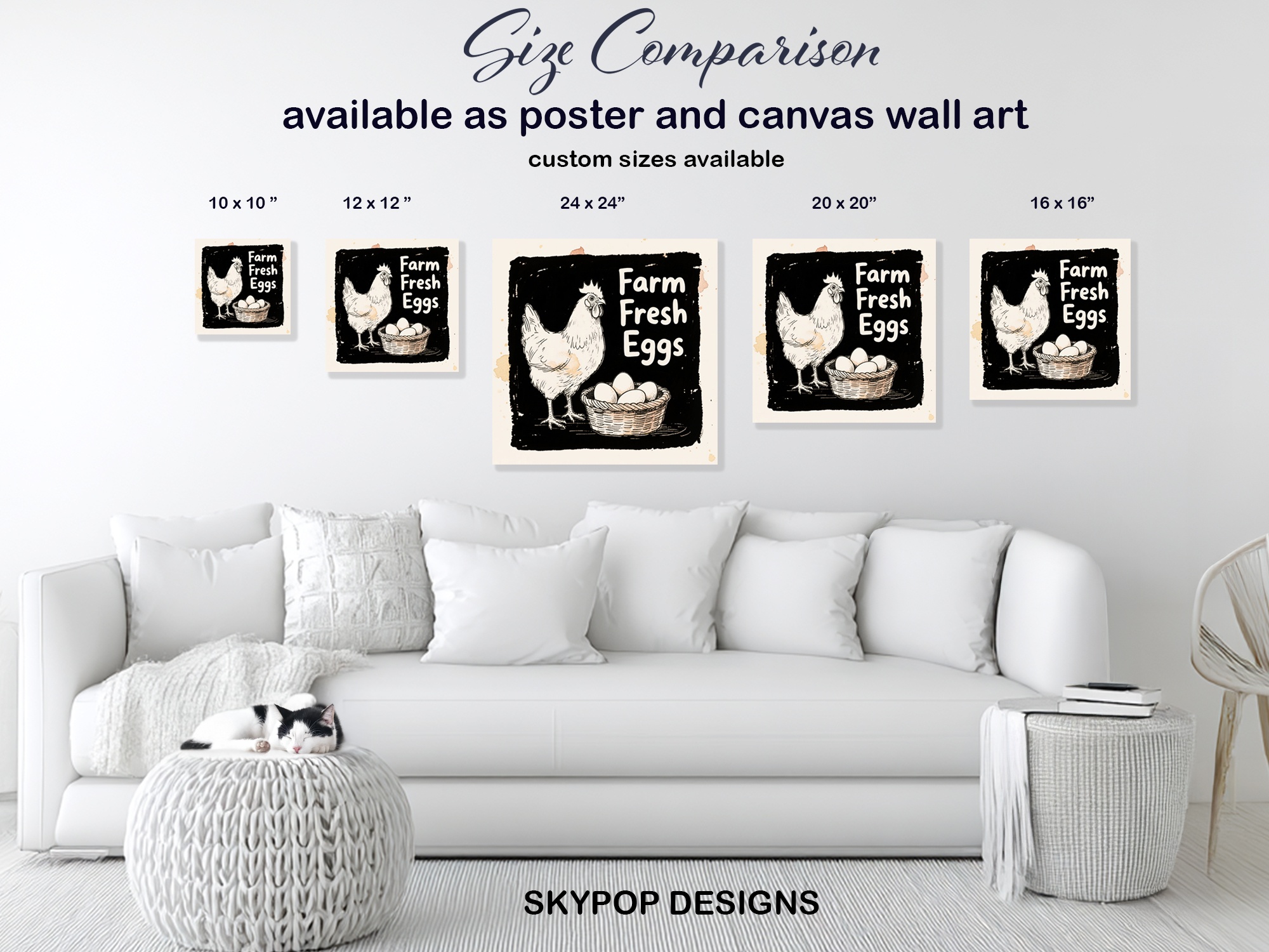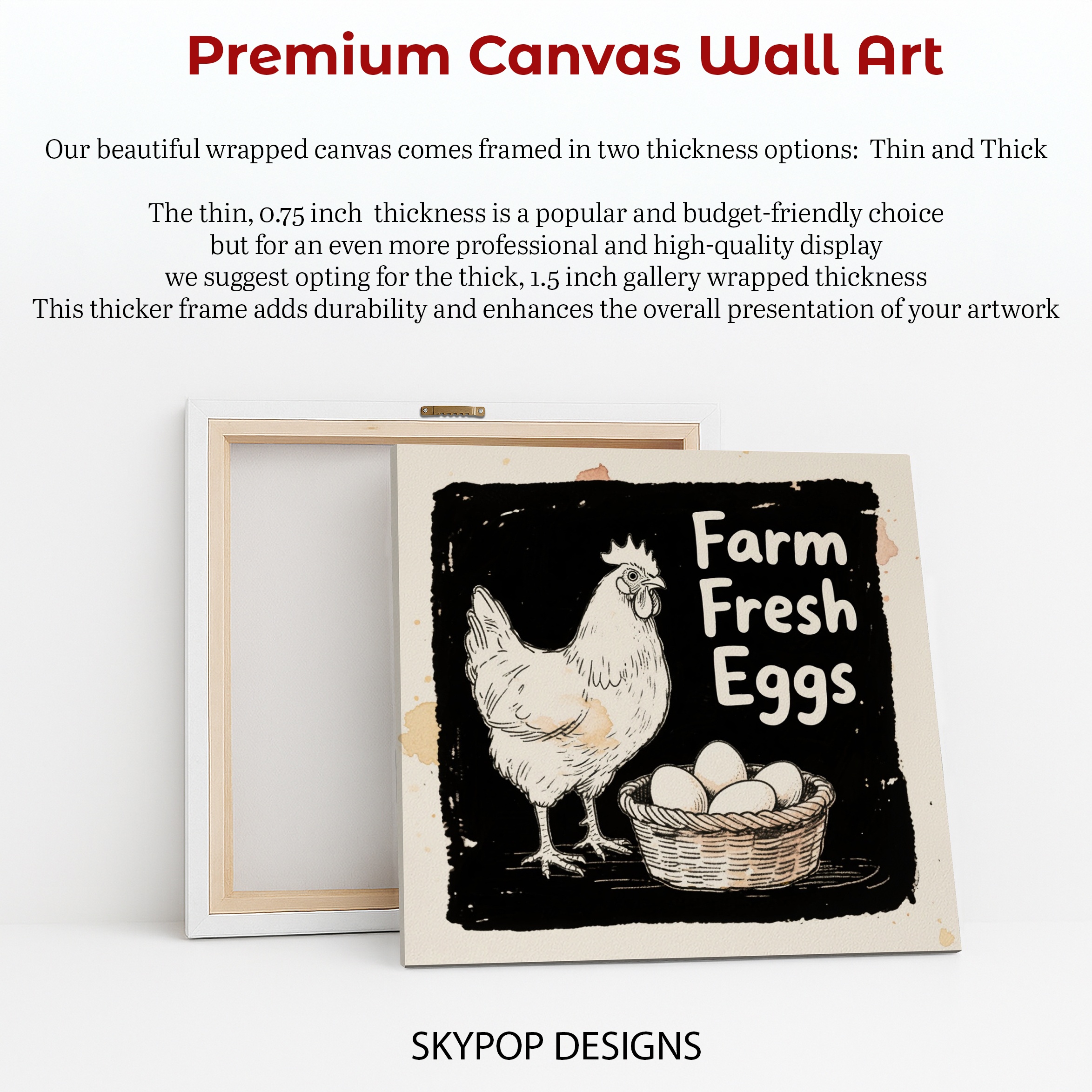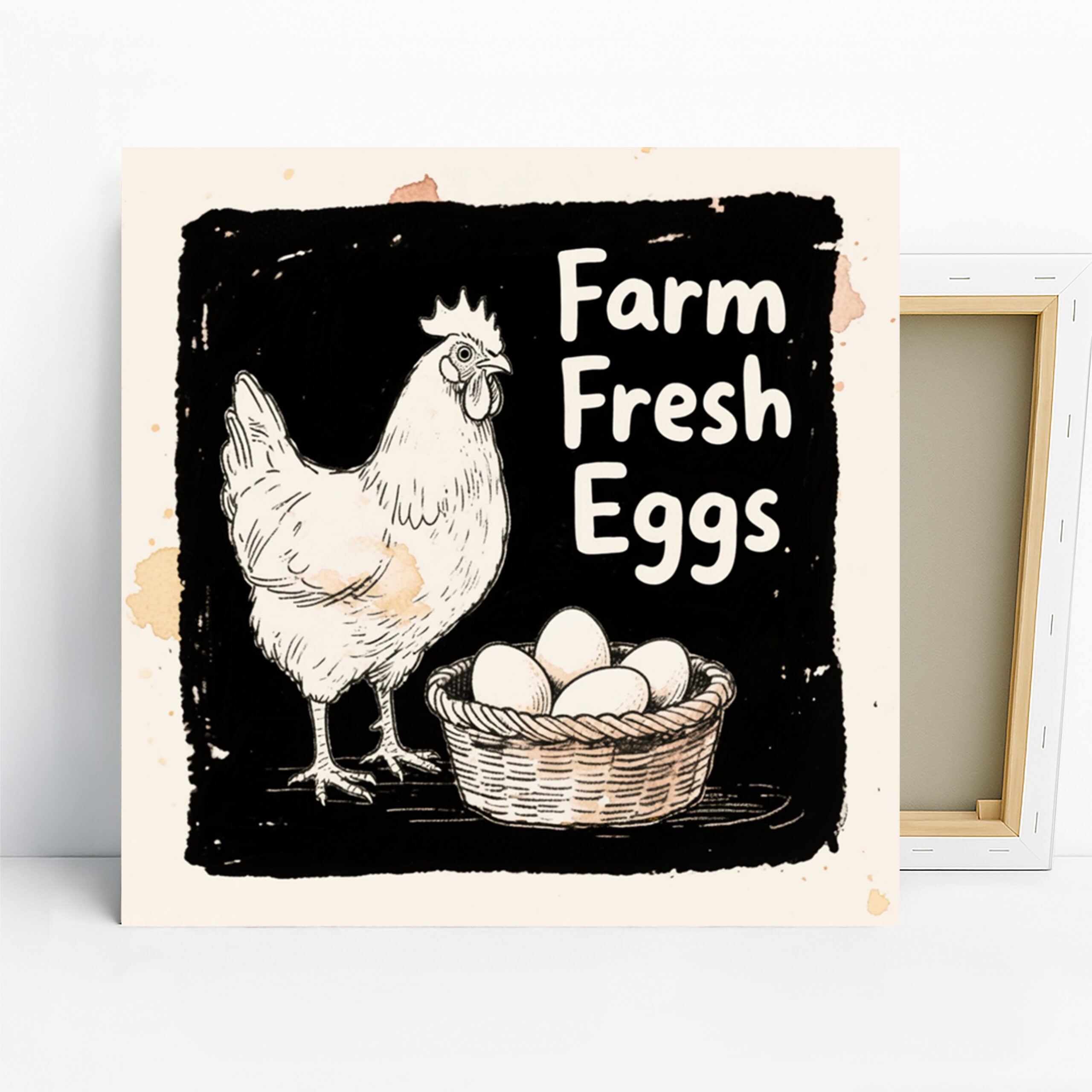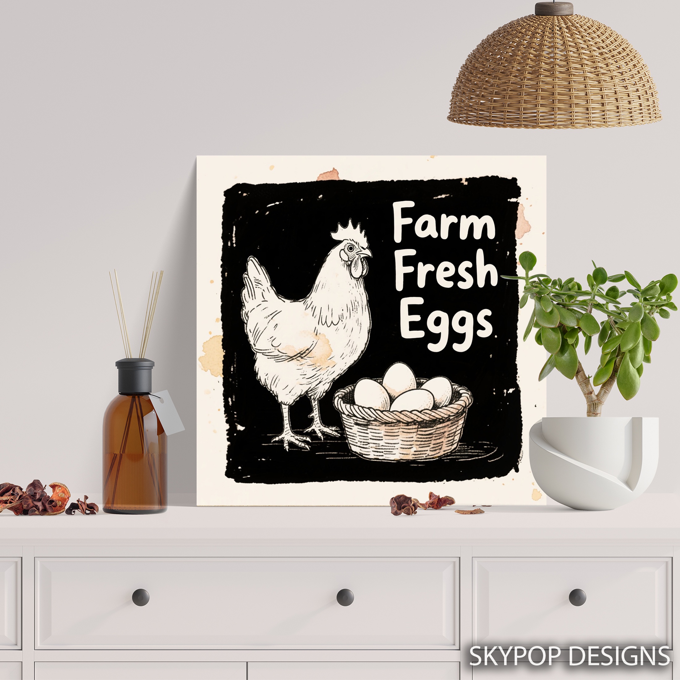 Bring a touch of rustic charm to your home with this delightful farm-themed canvas wall art featuring a classic hen and basket of eggs. This vintage-inspired poster captures the essence of country living, perfect for adding warmth to your kitchen or dining room decor. The striking black and white design with subtle brown accents creates a timeless look that complements farmhouse and rustic interior styles. Ideal for anyone who loves farm-fresh products or dreams of a simpler life, this canvas art celebrates the connection between farm and table. The detailed illustration of the chicken and woven basket adds texture and depth, making it a captivating focal point in any room. This versatile piece works beautifully in kitchens, hallways, or mudrooms, instantly elevating your space with its nostalgic appeal. The “Farm Fresh Eggs” text adds a practical touch, making it a great addition to country-style homes or as a unique housewarming gift. High-quality printing ensures every line and feather is crisp and clear, whether you choose it as a poster or canvas wall art. Transform your home with this charming farm art that celebrates simple living and the beauty of fresh, local produce. Add a dose of country comfort to your walls and create a welcoming atmosphere that guests will love. Upgrade your home decor with this timeless piece of farm-inspired wall art today.
