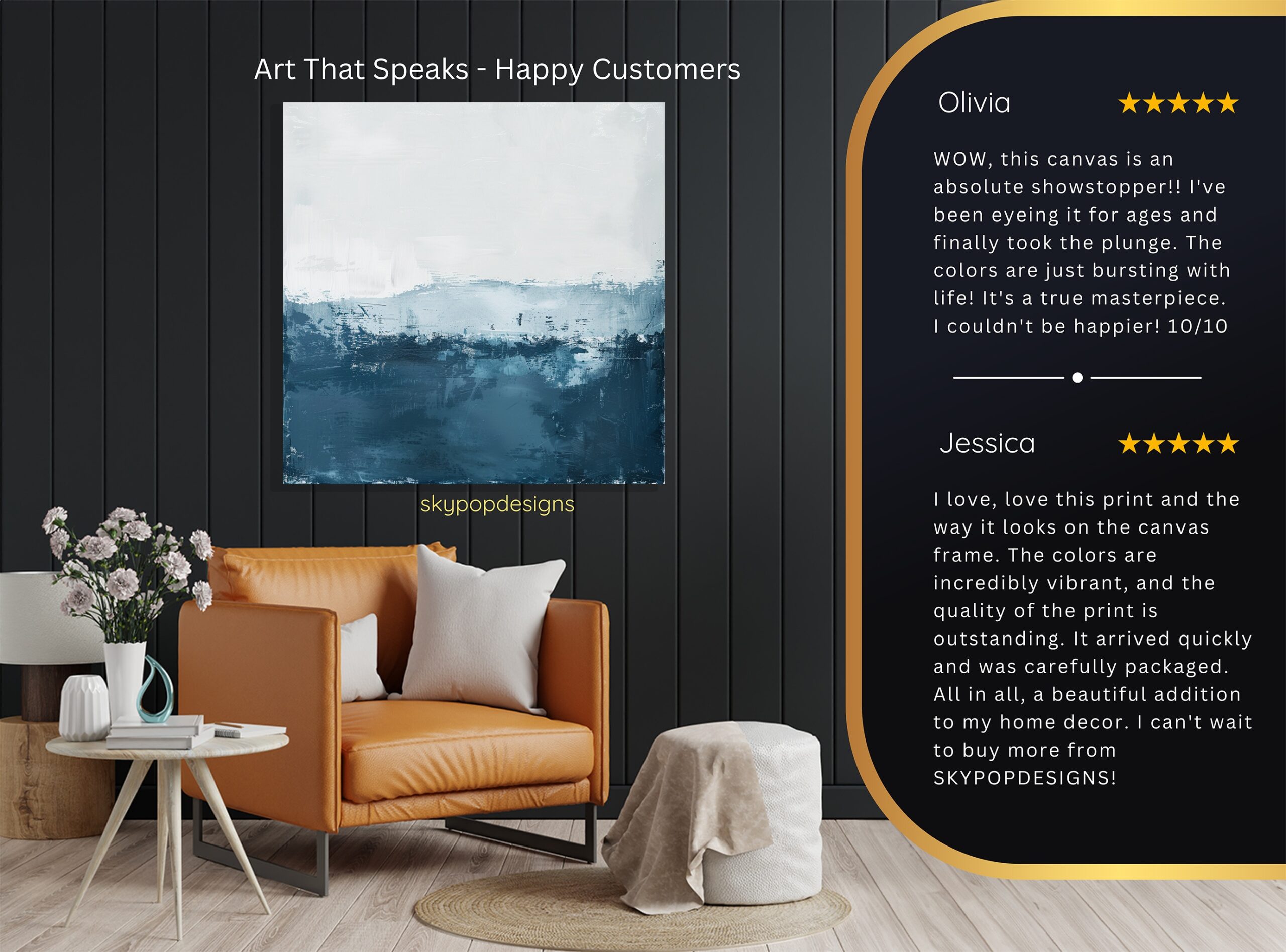 At SKYPOPDESIGNS, we specialize in high-quality canvas and poster prints designed to bring sophistication and style to your space. Please note that our designs are not created with 3D textures or as original oil, acrylic, or watercolor paintings; they are instead HD reproductions of original artwork. This approach allows us to offer these visually stunning pieces at competitive prices, ensuring you receive top-tier, maintenance-free art that’s easy to enjoy.
