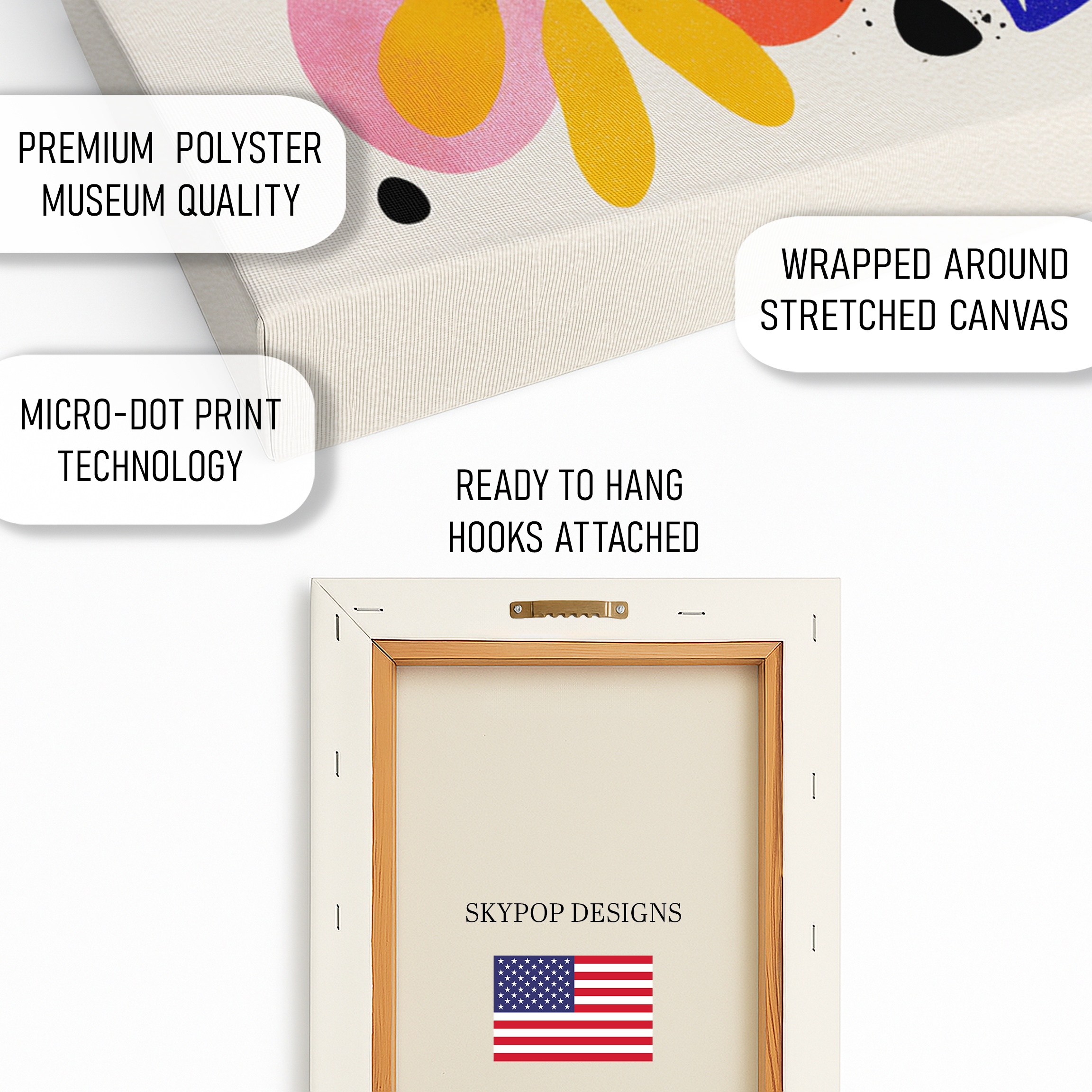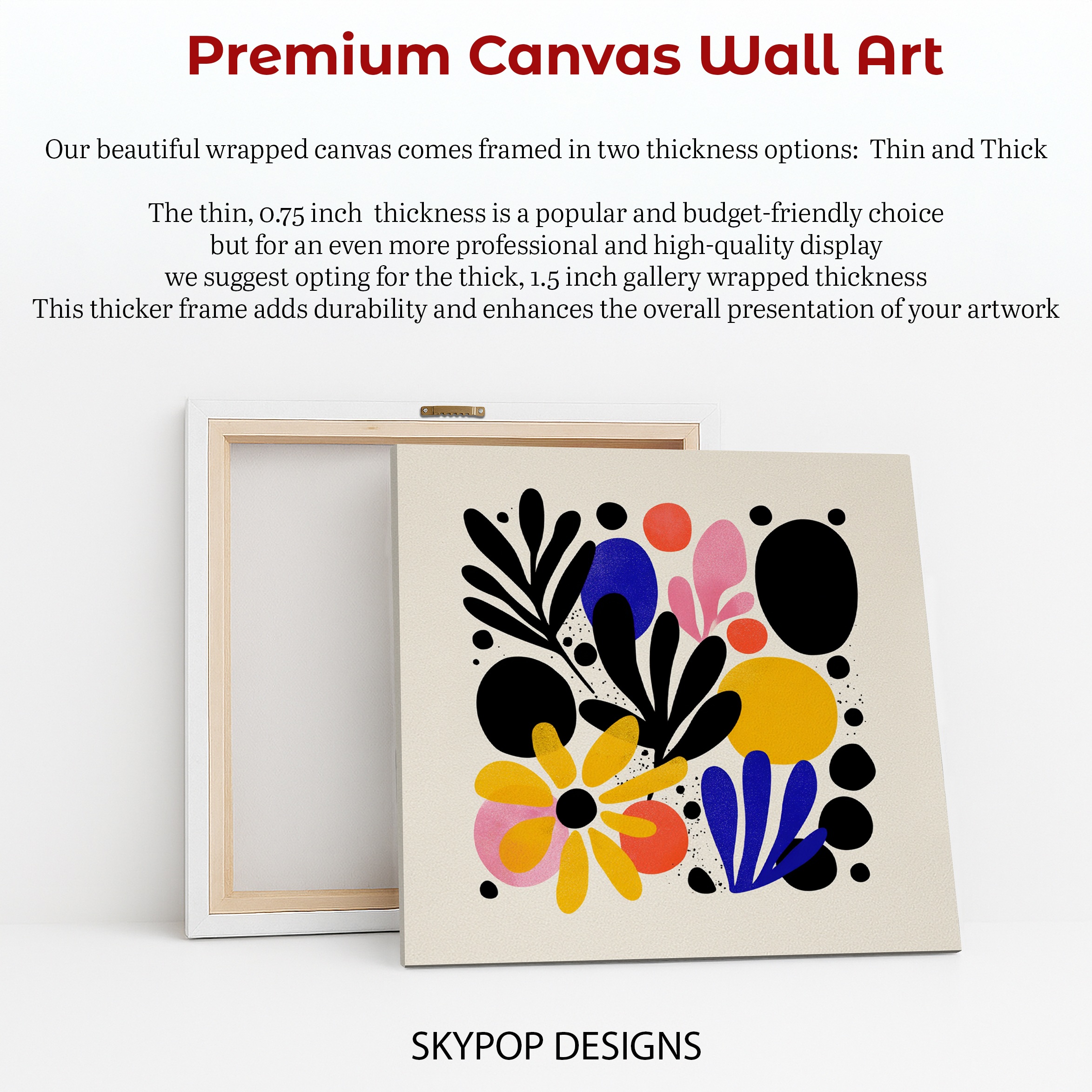Elevate your space with this vibrant abstract canvas wall art, featuring a playful array of colorful shapes and forms. This eye-catching poster or canvas print instantly transforms any room with its bold, contemporary design. Perfect for modern living rooms or minimalist office spaces, the artwork combines striking black silhouettes with pops of vibrant yellow, blue, and pink. The abstract composition creates a sense of movement and energy, making it an ideal focal point for Scandinavian-inspired interiors. This versatile piece works beautifully in bedrooms, nurseries, or creative workspaces, adding a touch of whimsy and artistic flair. The high-quality printing ensures every detail of the textured shapes and subtle speckles is captured, giving depth and interest to the overall design. Whether you’re looking to refresh your home decor or searching for a unique housewarming gift, this abstract wall art offers a perfect blend of sophistication and fun. The mix of organic and geometric forms appeals to art lovers and interior design enthusiasts alike. Hang this statement piece in your living room to spark conversations or in your office to inspire creativity. With its timeless appeal and modern aesthetic, this colorful abstract canvas art is sure to enhance any space. Transform your walls and add a pop of personality to your home today with this captivating contemporary artwork.