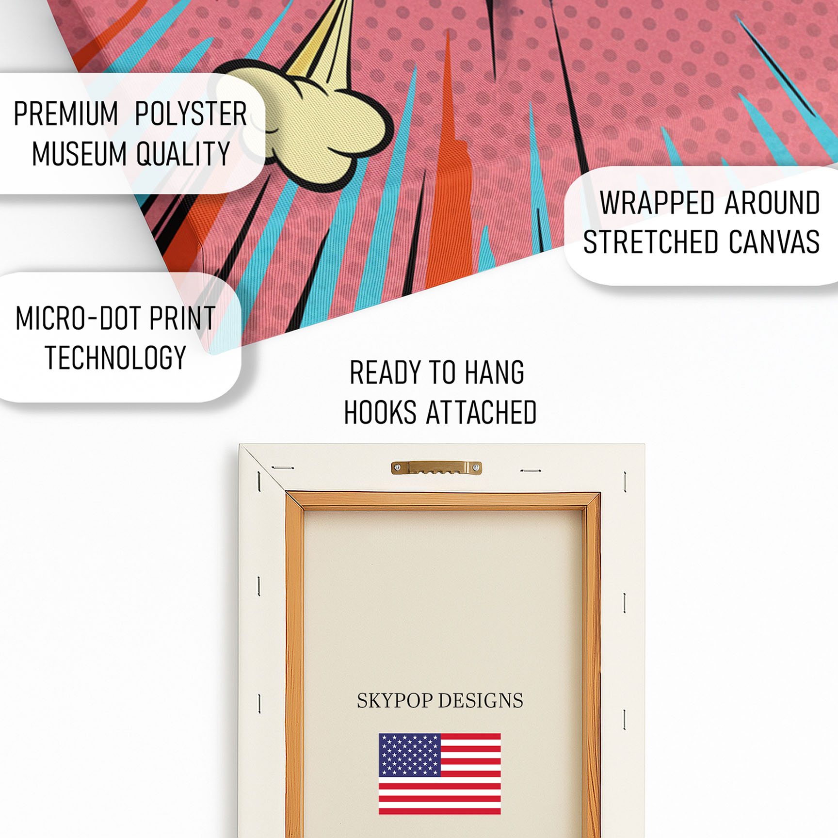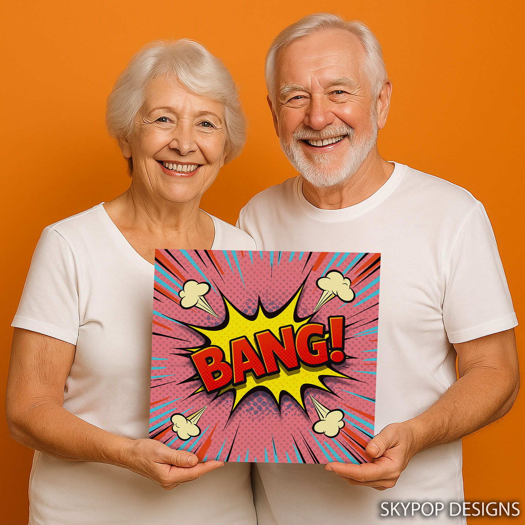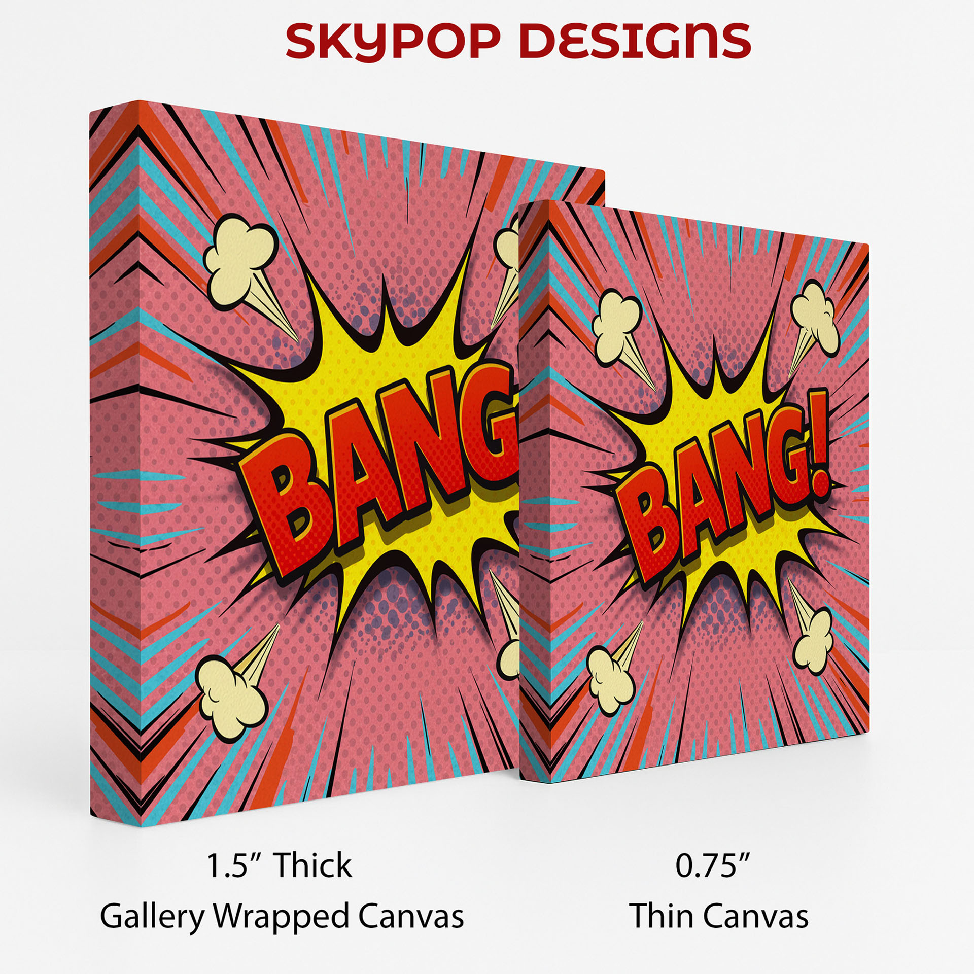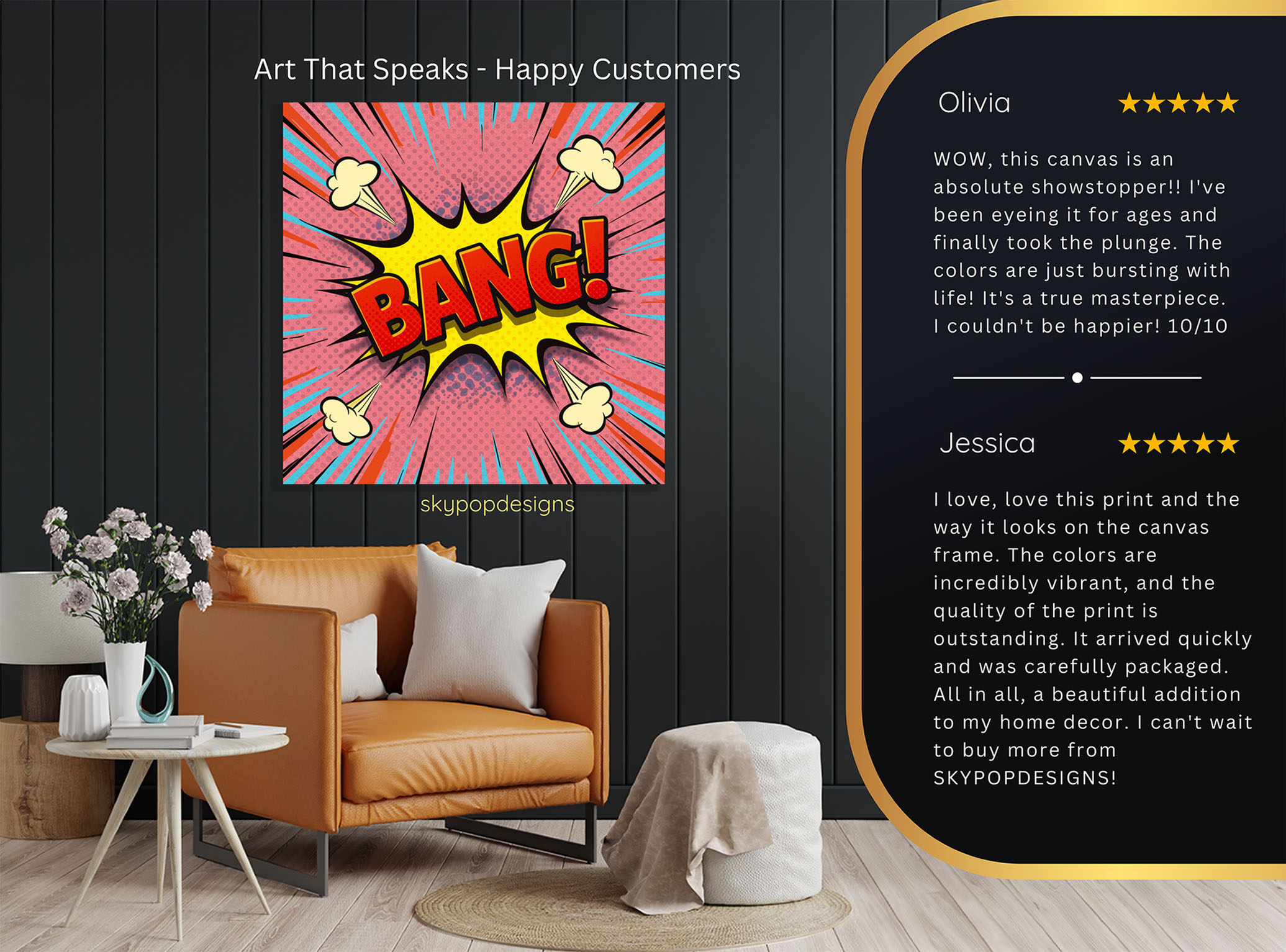 Unleash the energy with this dynamic BANG! comic canvas wall art, a perfect pop art statement piece for any space. This vibrant poster or canvas wall art is ideal for transforming your living room, game room, or even a home office into an exciting hub. The bold red “BANG!” against a striking yellow explosion is a captivating visual that exudes energy and fun. This graphic art design brings a modern, contemporary edge, while its comic book style adds a playful, bohemian touch. The multicolor palette, featuring vibrant reds, yellows, and pinks, creates a visually stimulating effect that is sure to grab attention. High-quality printing ensures the bold lines and halftone dots of this comic art poster are rendered with stunning clarity. It’s a fantastic way to add personality and a splash of excitement to neutral decor or to complement existing colorful schemes. This ‘BANG!’ canvas art is perfect for gifting on birthdays, holidays, or housewarmings to anyone who loves pop culture and bold graphic design. Elevate your wall decor with this energetic piece that celebrates the iconic style of comic books and street art. This striking canvas wall art is a conversation starter, bringing a sense of action and excitement into your home. Brighten your interiors and celebrate your love for graphic design with this unique poster today.