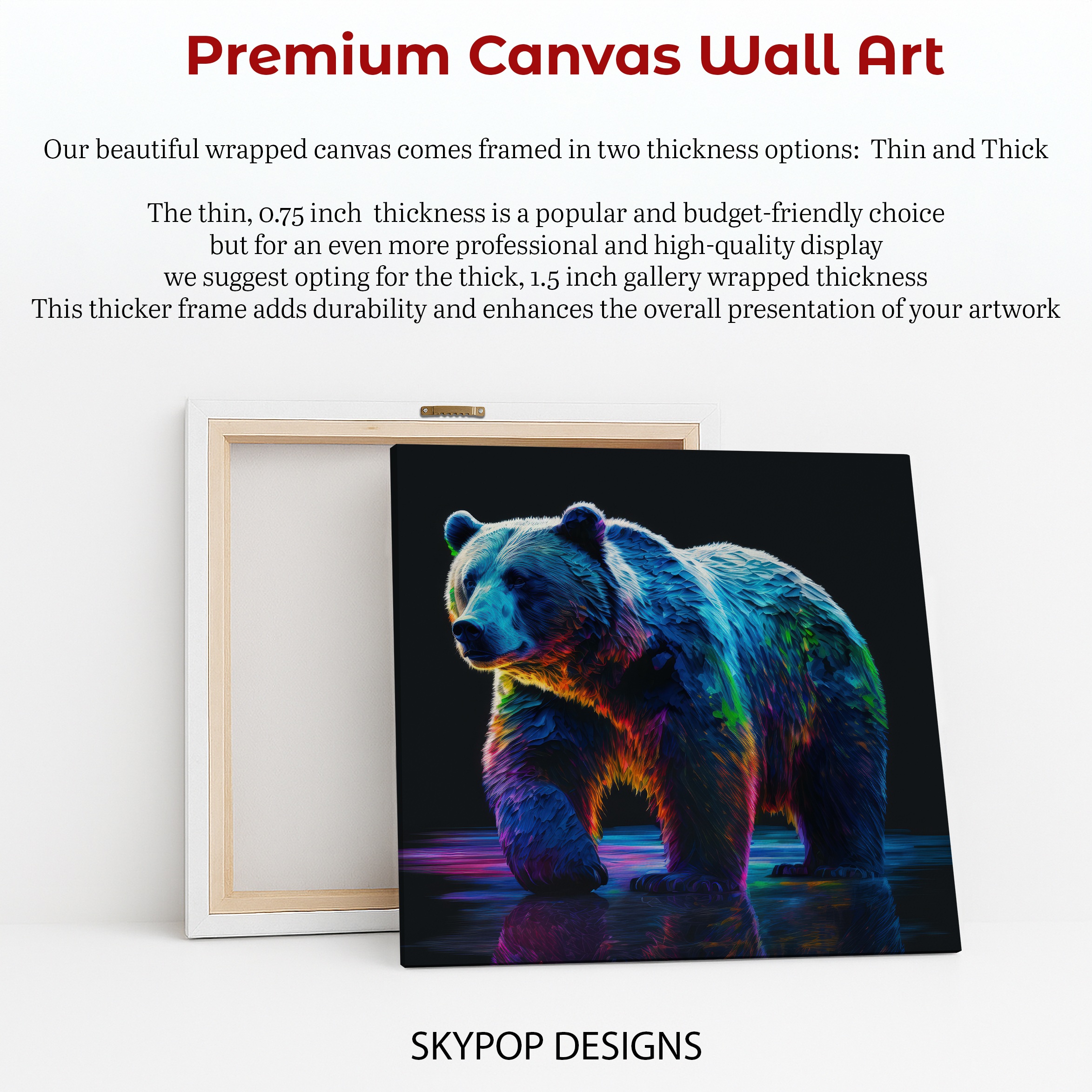 Elevate your space with this stunning bear canvas wall art, a captivating piece that transforms any room into an art gallery. The abstract animal art style, combined with vibrant multicolor hues, creates a striking visual statement, perfect for modern or minimalist decor. This striking poster or canvas wall art features a powerful bear rendered in an explosion of blues, purples, and neon accents, invoking a sense of cosmic wonder and untamed energy. It’s not just wall art; it’s a conversation starter that injects personality and bold expression into your living room, bedroom, or office space. Ideal for those who appreciate abstract art and the raw beauty of nature, this piece brings a touch of the ethereal to everyday life. The dynamic interplay of colors and textures ensures this canvas wall art is a captivating focal point, inspiring awe with its unique artistic vision. Celebrate your love for wildlife and contemporary design with this exceptional artwork. Its size versatility makes it a perfect fit for any wall, transforming your space with its vibrant energy. Add a touch of the extraordinary to your home decor, making this bear artwork the centerpiece of your stylish interior. This canvas wall art is an ideal gift for nature lovers and art enthusiasts alike, suitable for housewarming, birthdays, or holidays. Transform your home with this breathtaking bear poster, a truly unique addition to any art collection.Elevate your environment with this captivating bear canvas art today.