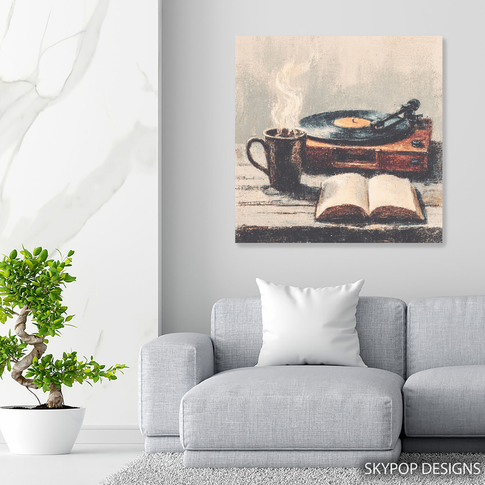 Transform your space with this captivating canvas wall art that combines the warmth of a cozy morning with the nostalgic charm of vintage music. This poster or canvas wall art is perfect for creating a relaxing atmosphere in your living room, bedroom, or library. The rich brown tones, accented by black and white, evoke a sense of comfort and timeless style, making it ideal for bohemian and rustic decor. This still life artwork showcases a steaming mug of coffee, an open book, and a classic record player, inspiring moments of tranquility and reflection. The vibrant yet subtle colors enhance the mood, creating an inviting space for unwinding and enjoying life’s simple pleasures. High-quality printing ensures every textured detail, from the steam rising from the mug to the grooves on the record, is beautifully rendered, making this canvas wall art a focal point. This versatile piece of music art works wonderfully as a statement in a farmhouse-style kitchen or a cozy reading nook. It’s a perfect gift for book lovers and music enthusiasts, ideal for housewarming celebrations or birthdays. Elevate your home decor with this everyday scene captured in a striking contemporary style. This poster or canvas wall art promises to bring a sense of peace and personal comfort to any room. Add a touch of vintage appeal and a cozy ambiance to your walls today with Cozy Morning Vibes Art.