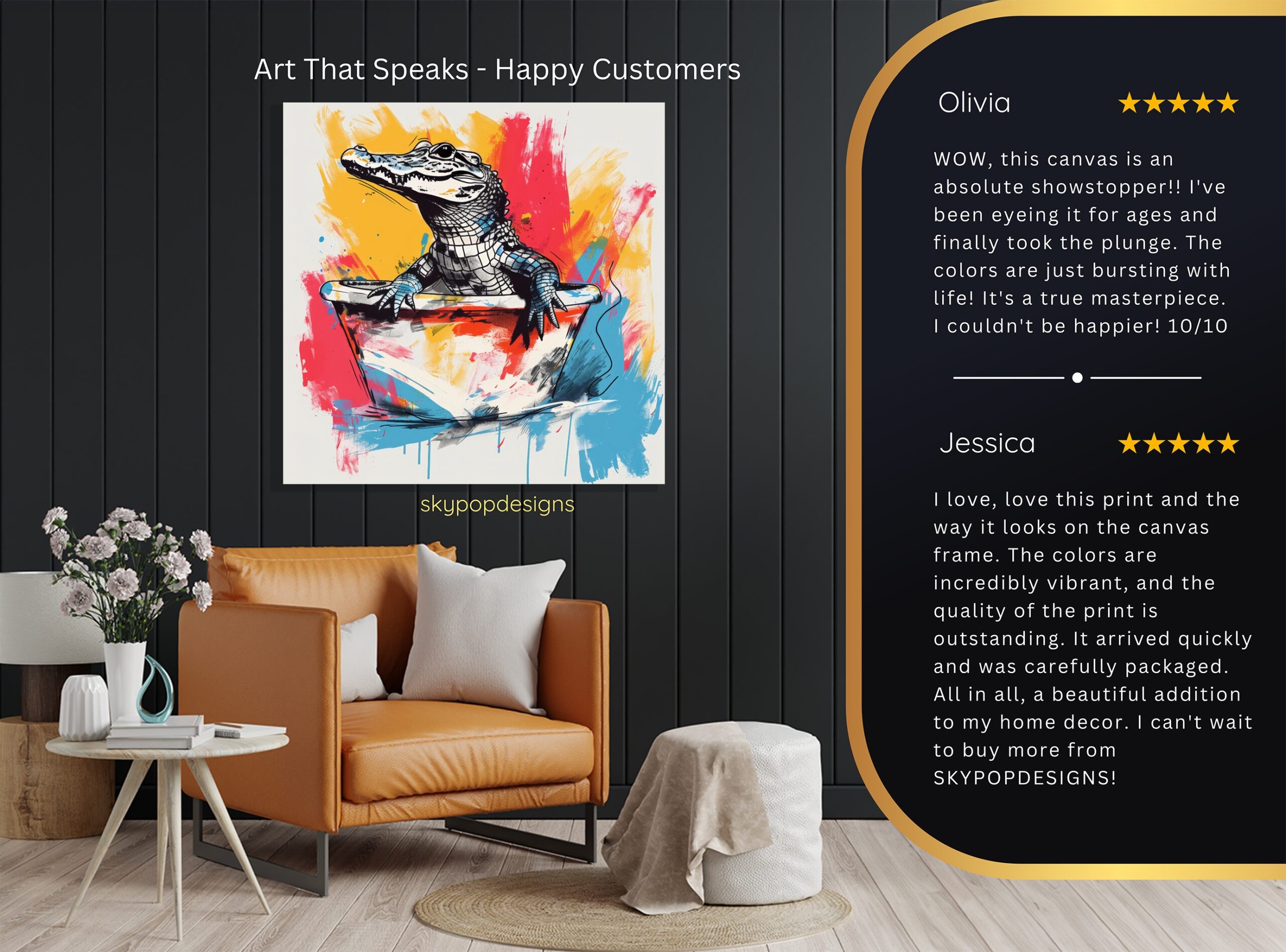 At SKYPOPDESIGNS, we specialize in high-quality canvas and poster prints designed to bring sophistication and style to your space. Please note that our designs are not created with 3D textures or as original oil, acrylic, or watercolor paintings; they are instead HD reproductions of original artwork. This approach allows us to offer these visually stunning pieces at competitive prices, ensuring you receive top-tier, maintenance-free art that’s easy to enjoy.