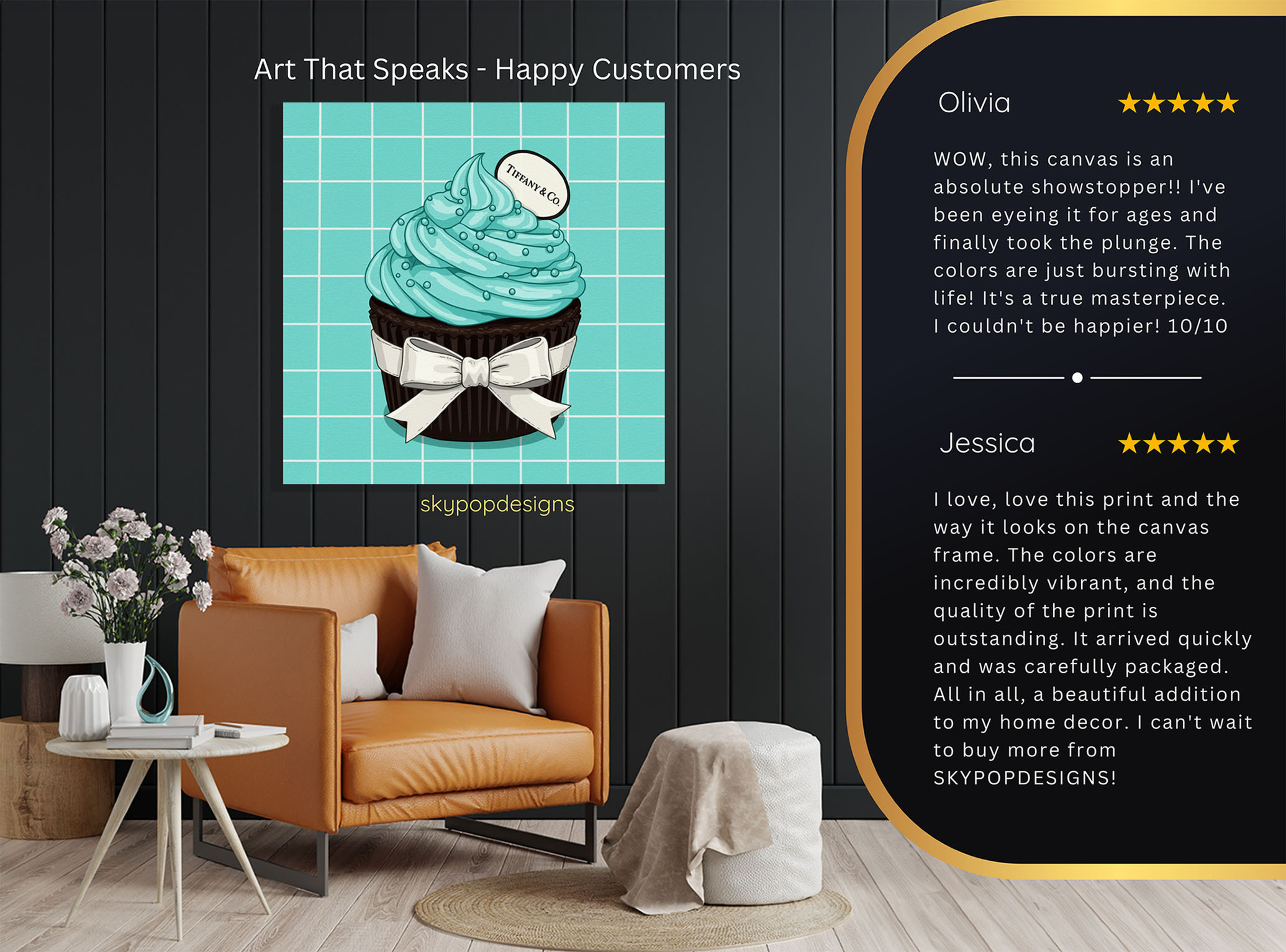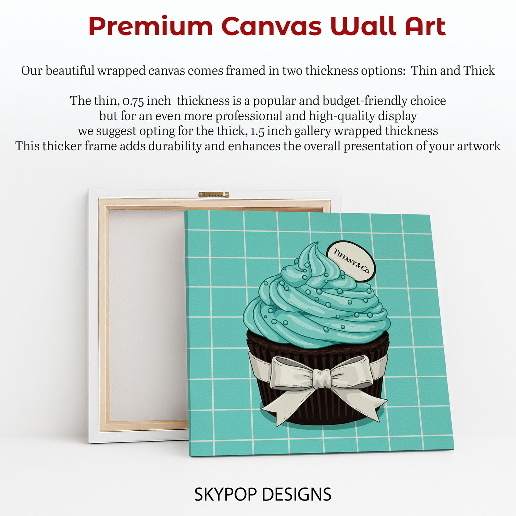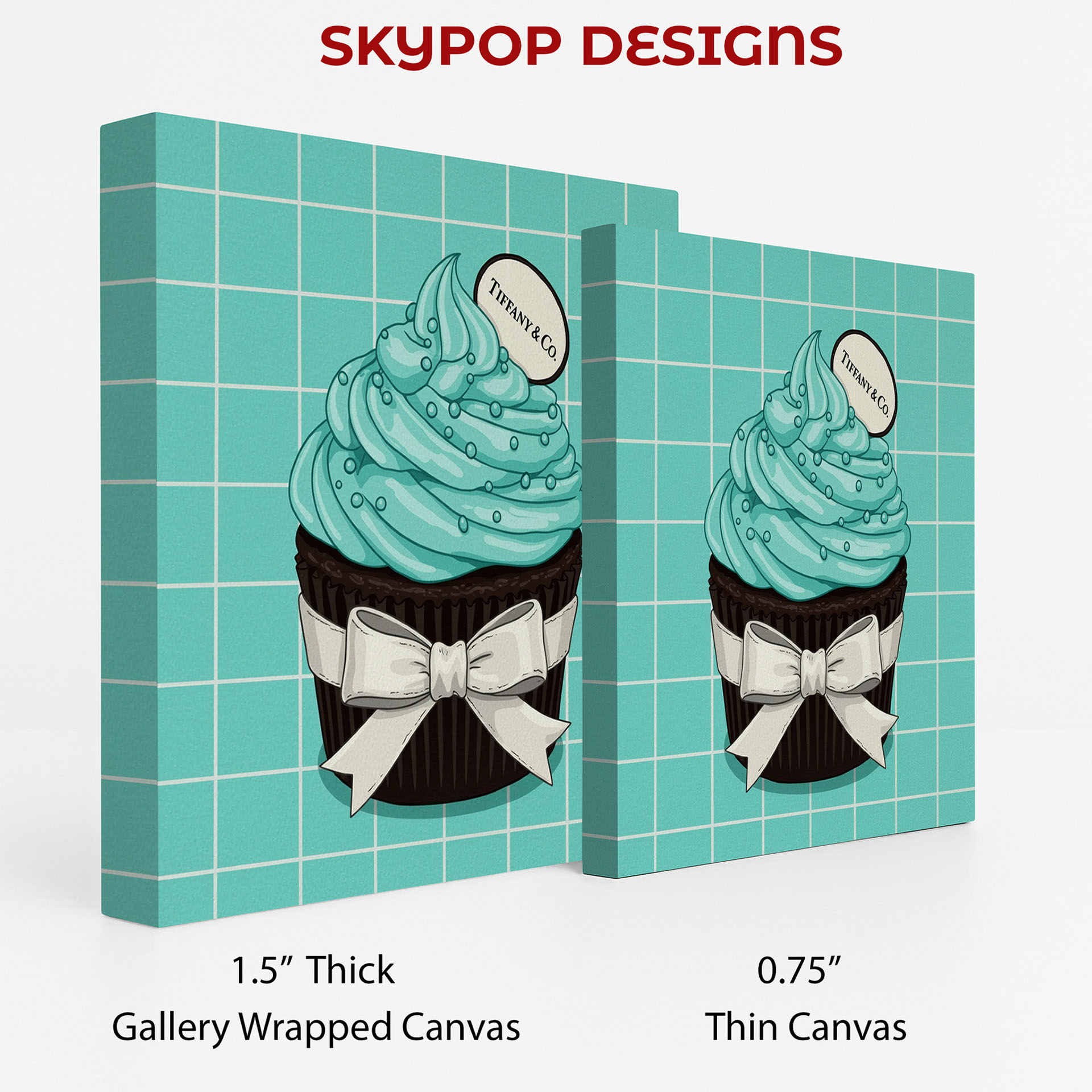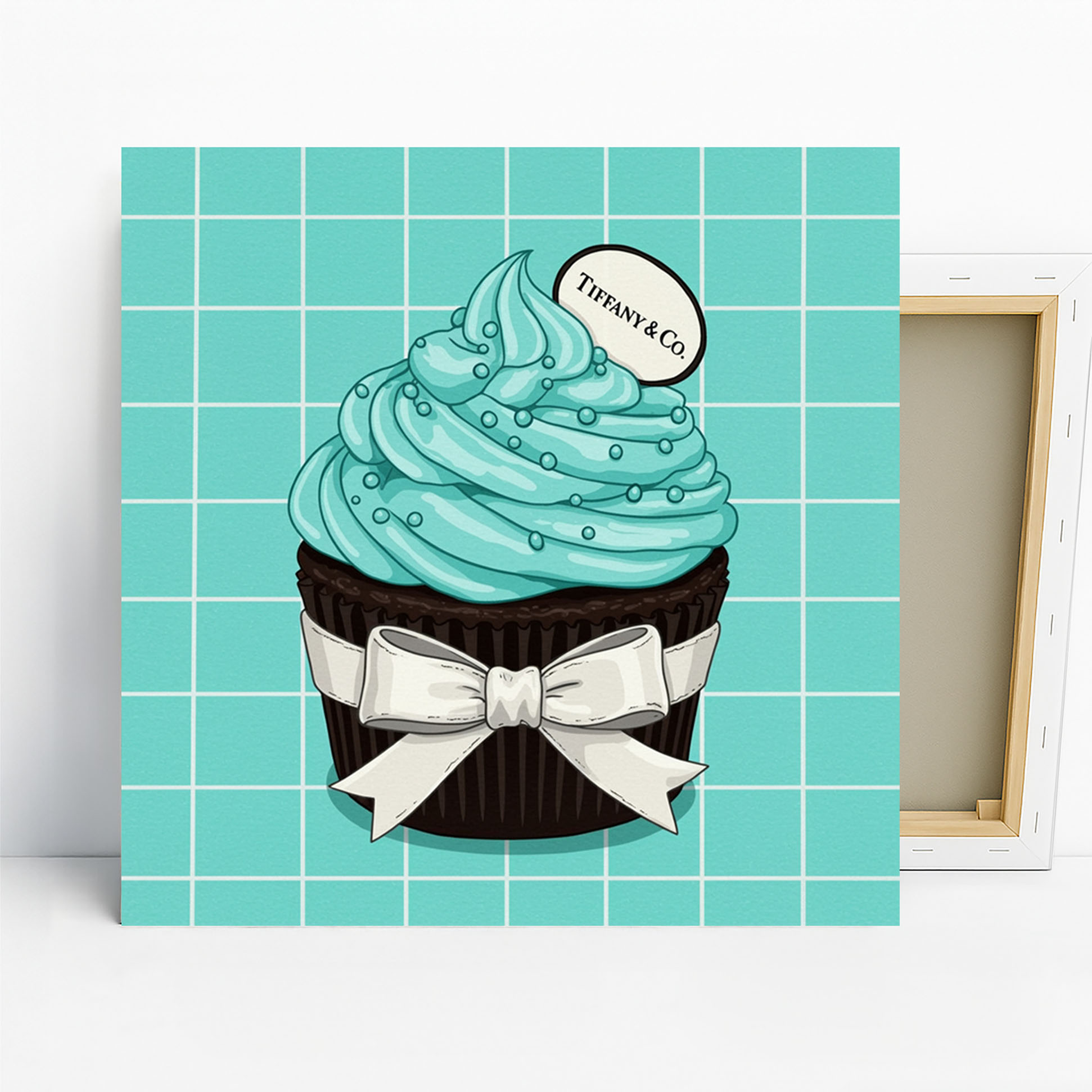 Elevate your space with this delightful Tiffany Cupcake canvas wall art, a perfect pop art representation of luxury and indulgence.