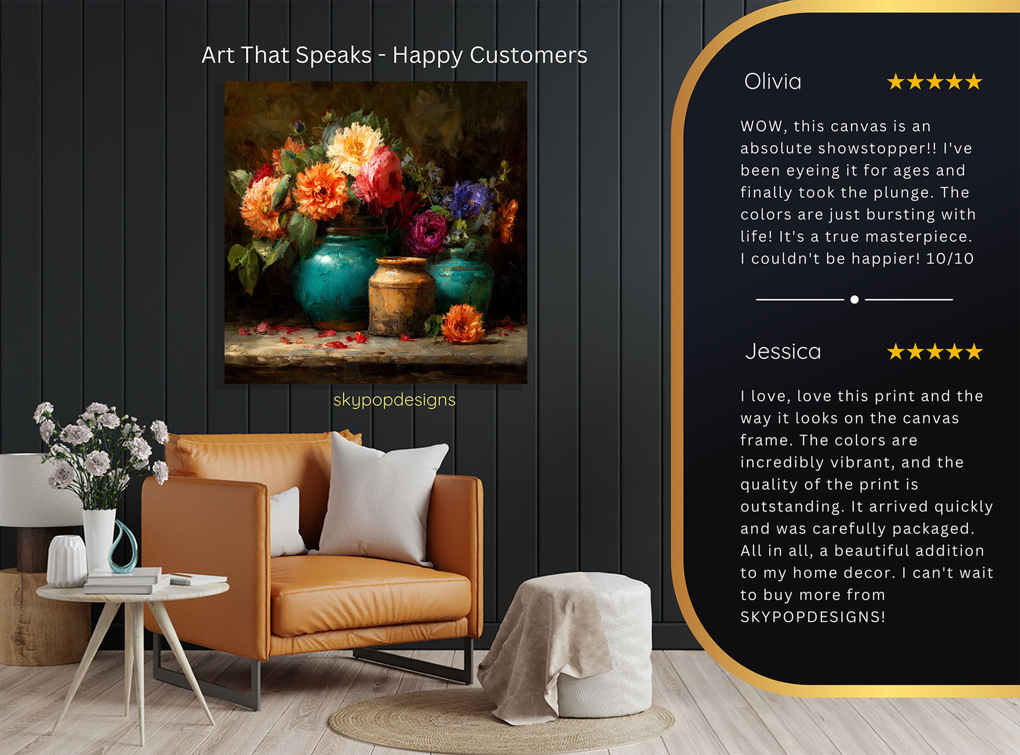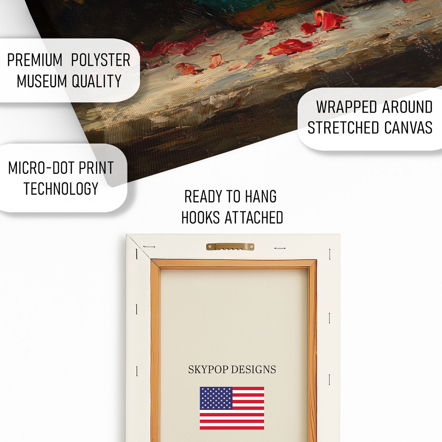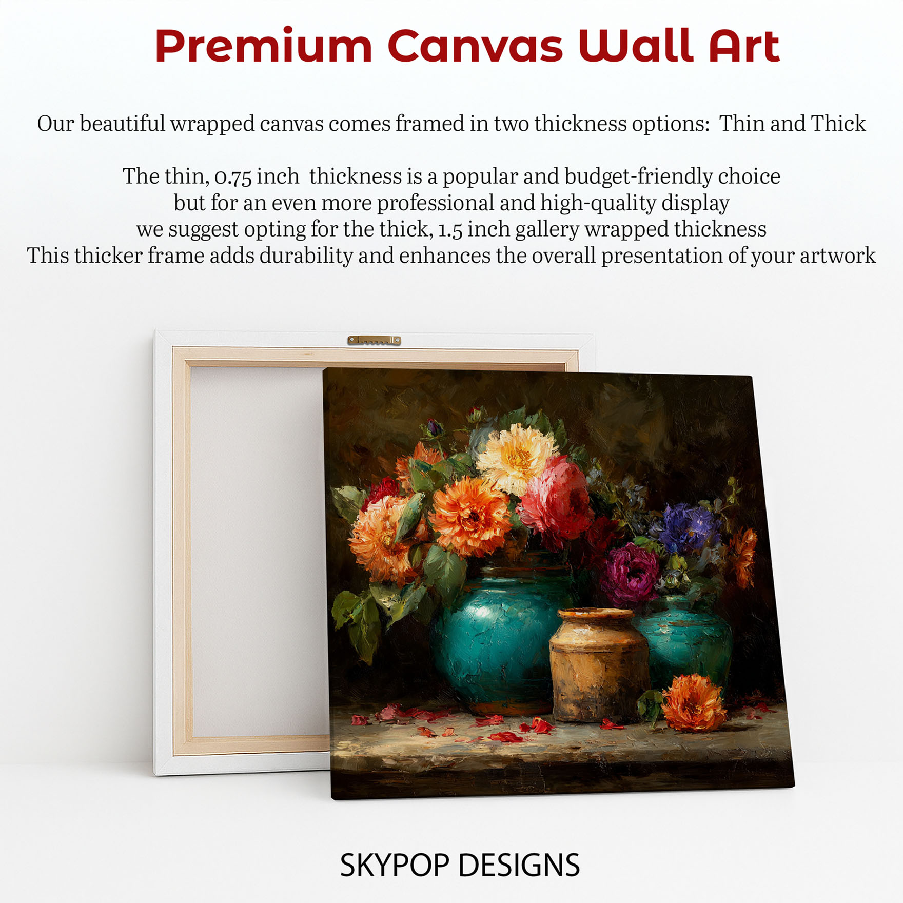 At SKYPOPDESIGNS, we specialize in high-quality canvas and poster prints designed to bring sophistication and style to your space. Please note that our designs are not created with 3D textures or as original oil, acrylic, or watercolor paintings; they are instead HD reproductions of original artwork. This approach allows us to offer these visually stunning pieces at competitive prices, ensuring you receive top-tier, maintenance-free art that’s easy to enjoy.