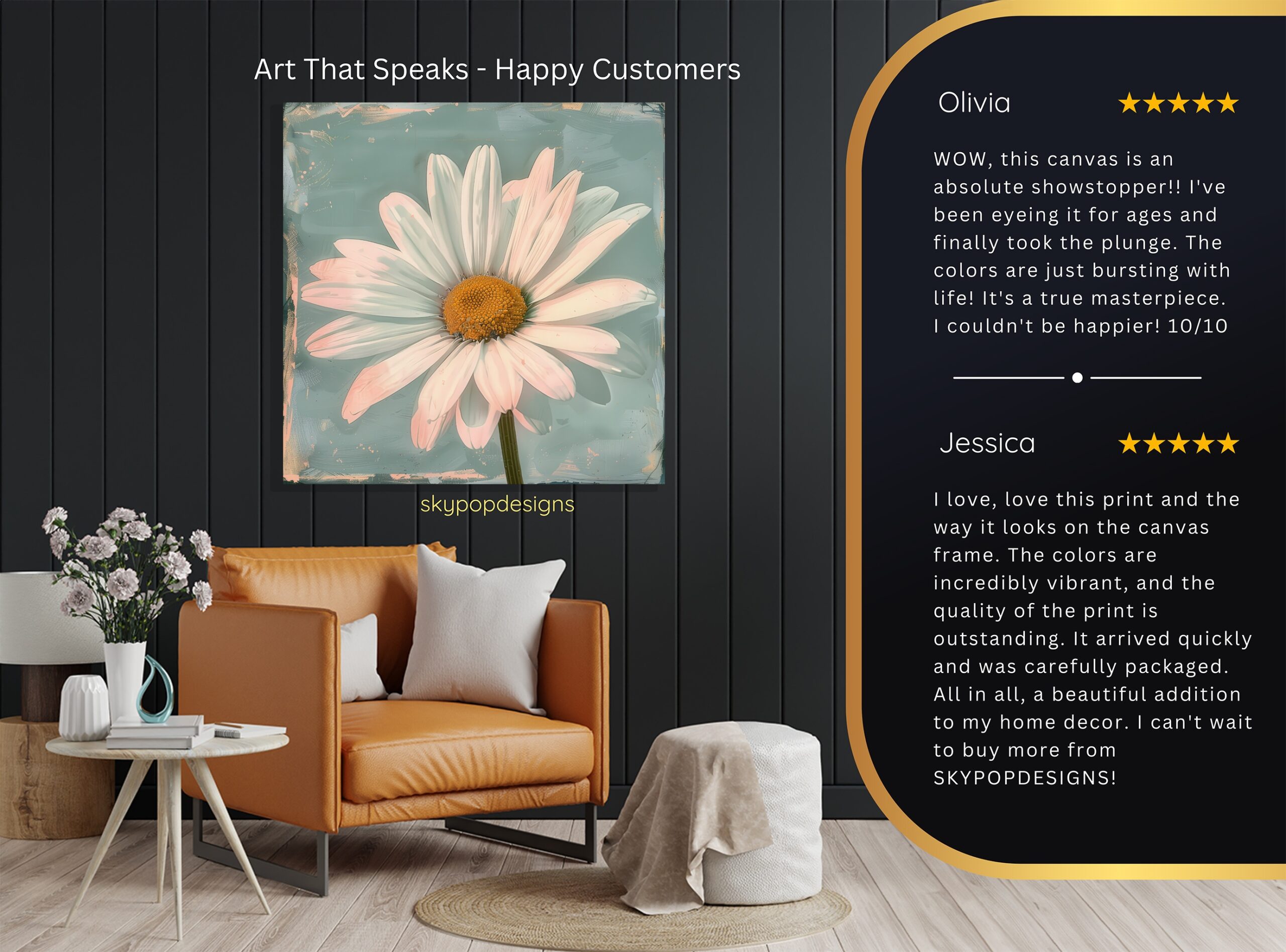At SKYPOPDESIGNS, we specialize in high-quality canvas and poster prints designed to bring sophistication and style to your space. Please note that our designs are not created with 3D textures or as original oil, acrylic, or watercolor paintings; they are instead HD reproductions of original artwork. This approach allows us to offer these visually stunning pieces at competitive prices, ensuring you receive top-tier, maintenance-free art that’s easy to enjoy.