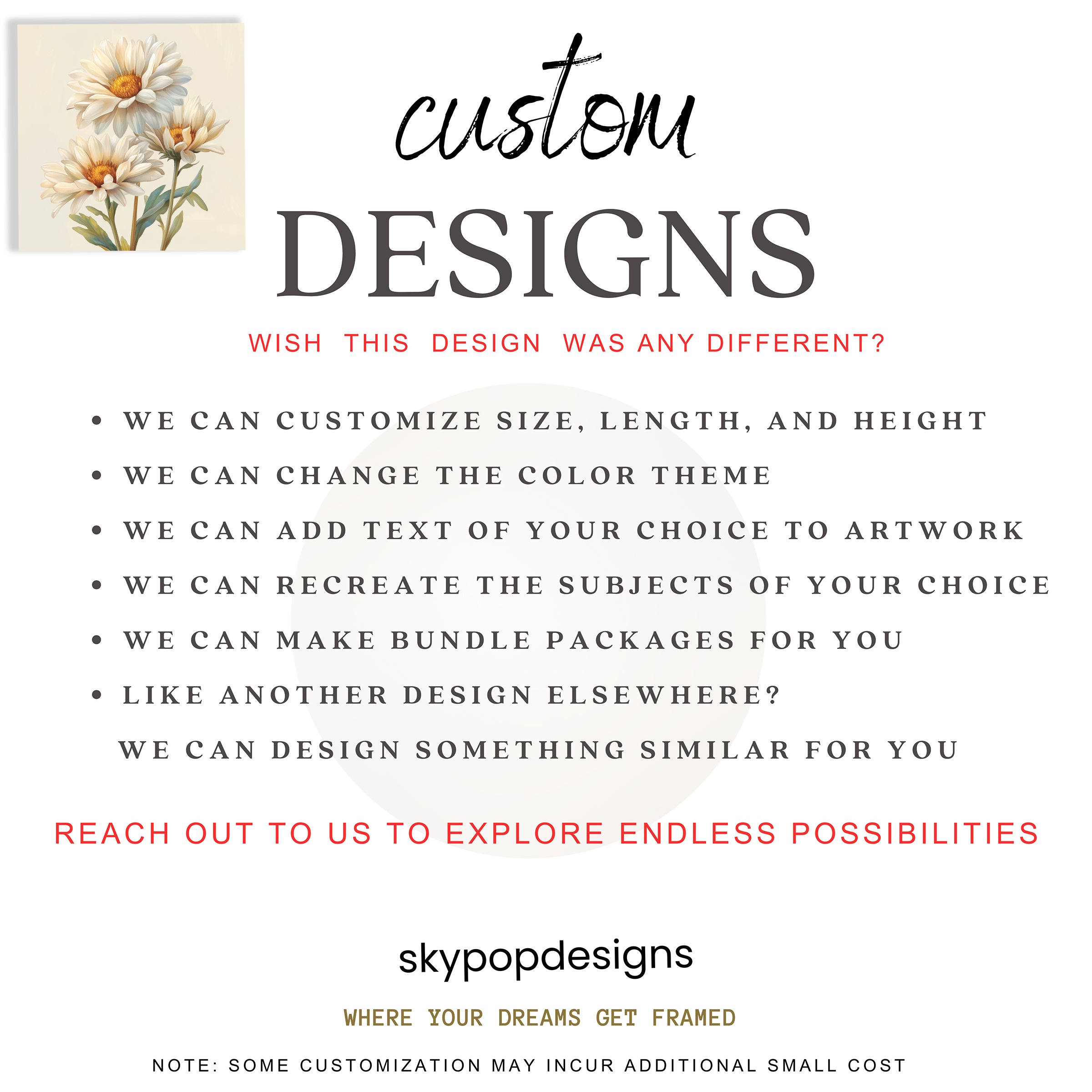 At SKYPOPDESIGNS, we specialize in high-quality canvas and poster prints designed to bring sophistication and style to your space. Please note that our designs are not created with 3D textures or as original oil, acrylic, or watercolor paintings; they are instead HD reproductions of original artwork. This approach allows us to offer these visually stunning pieces at competitive prices, ensuring you receive top-tier, maintenance-free art that’s easy to enjoy.