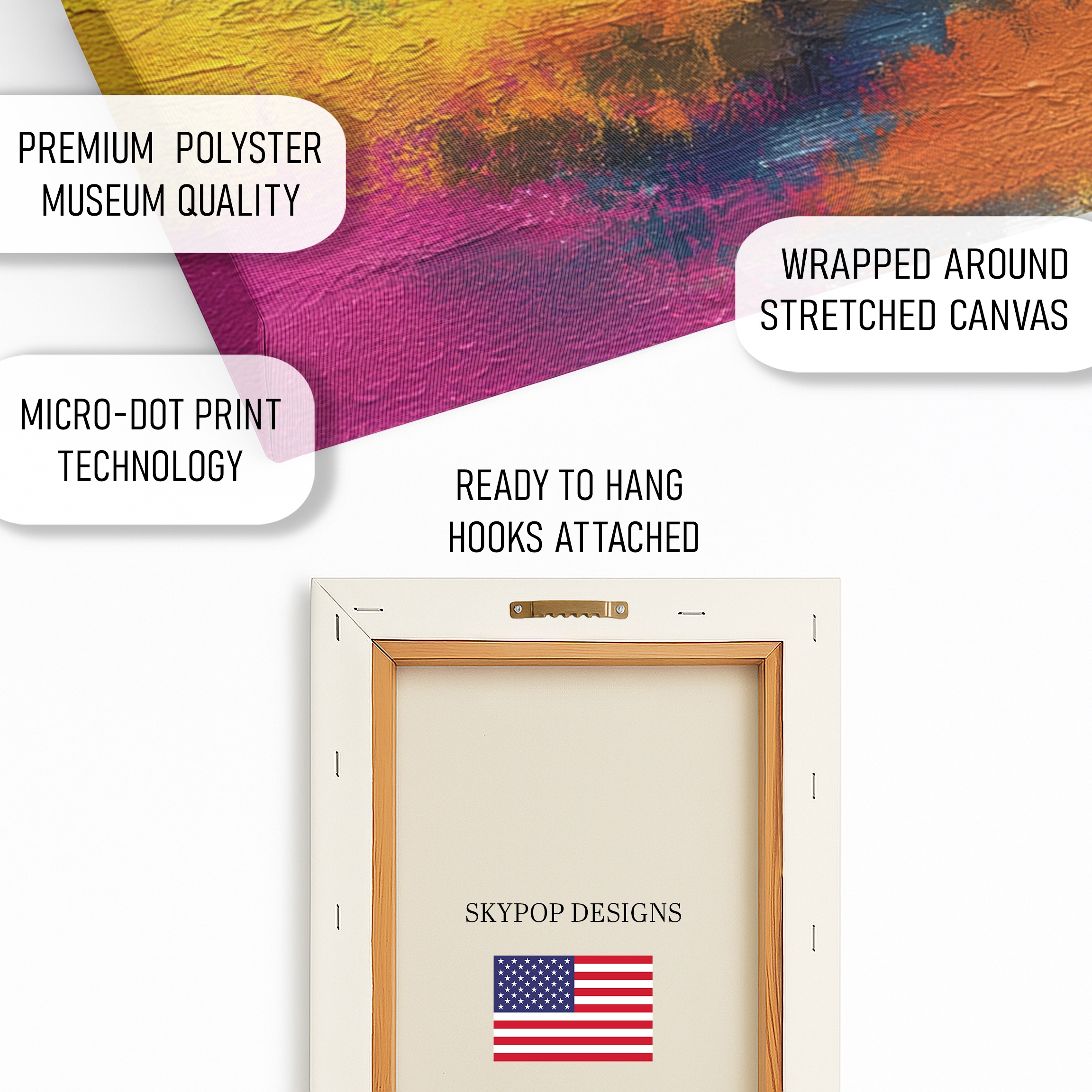 Material Canvas: 290 gsm Giclée canvas durable, ultra-fine texture.