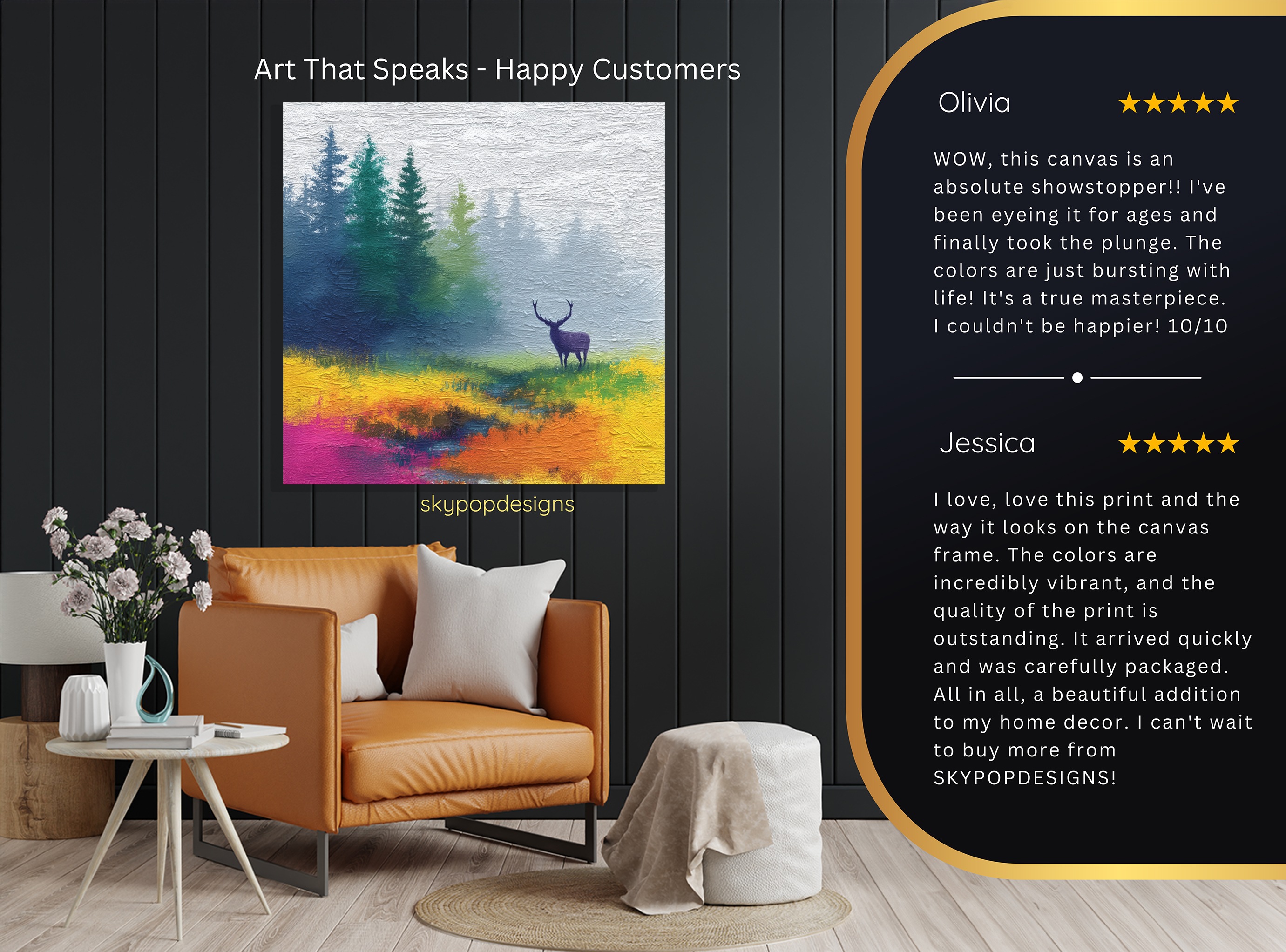 At SKYPOPDESIGNS, we specialize in high-quality canvas and poster prints designed to bring sophistication and style to your space. Please note that our designs are not created with 3D textures or as original oil, acrylic, or watercolor paintings; they are instead HD reproductions of original artwork. This approach allows us to offer these visually stunning pieces at competitive prices, ensuring you receive top-tier, maintenance-free art that’s easy to enjoy.