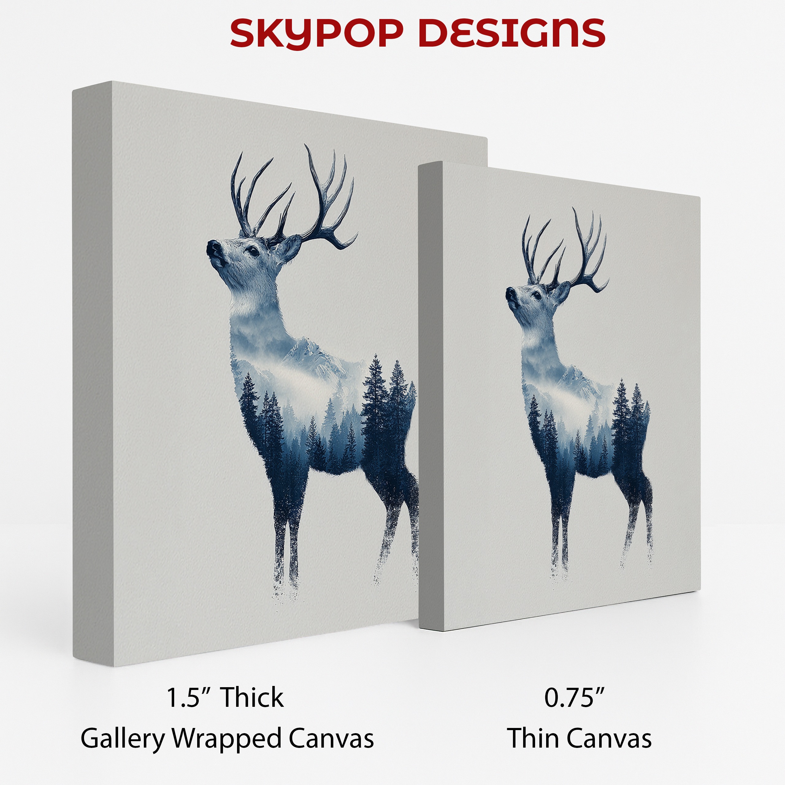 Bring the serenity of the wilderness into your home with this stunning deer forest silhouette canvas wall art. This captivating piece seamlessly blends a majestic deer with a misty mountain landscape, creating a striking visual that instantly transforms any space. Perfect for nature lovers and modern decor enthusiasts alike, this poster or canvas art adds depth and character to living rooms, bedrooms, or offices. The cool blue tones evoke a sense of calm, while the intricate details of the forest scene within the deer’s silhouette create an engaging focal point. Ideal for rustic or contemporary interiors, this artwork celebrates the beauty of the outdoors while maintaining a sleek, minimalist aesthetic. The high-quality printing captures every nuance, from the deer’s impressive antlers to the delicate pine trees, ensuring a long-lasting piece that retains its vibrancy. Whether you’re looking to create a serene atmosphere in your bedroom or add a touch of nature to your dining room, this versatile wall art adapts beautifully to various settings. It’s an excellent choice for a housewarming gift or to refresh your own space with a breath of fresh air. The unique double exposure effect combines two images into one cohesive artwork, sparking conversation and admiration from guests. Elevate your home decor today with this enchanting deer forest silhouette art that brings the majesty of nature indoors.