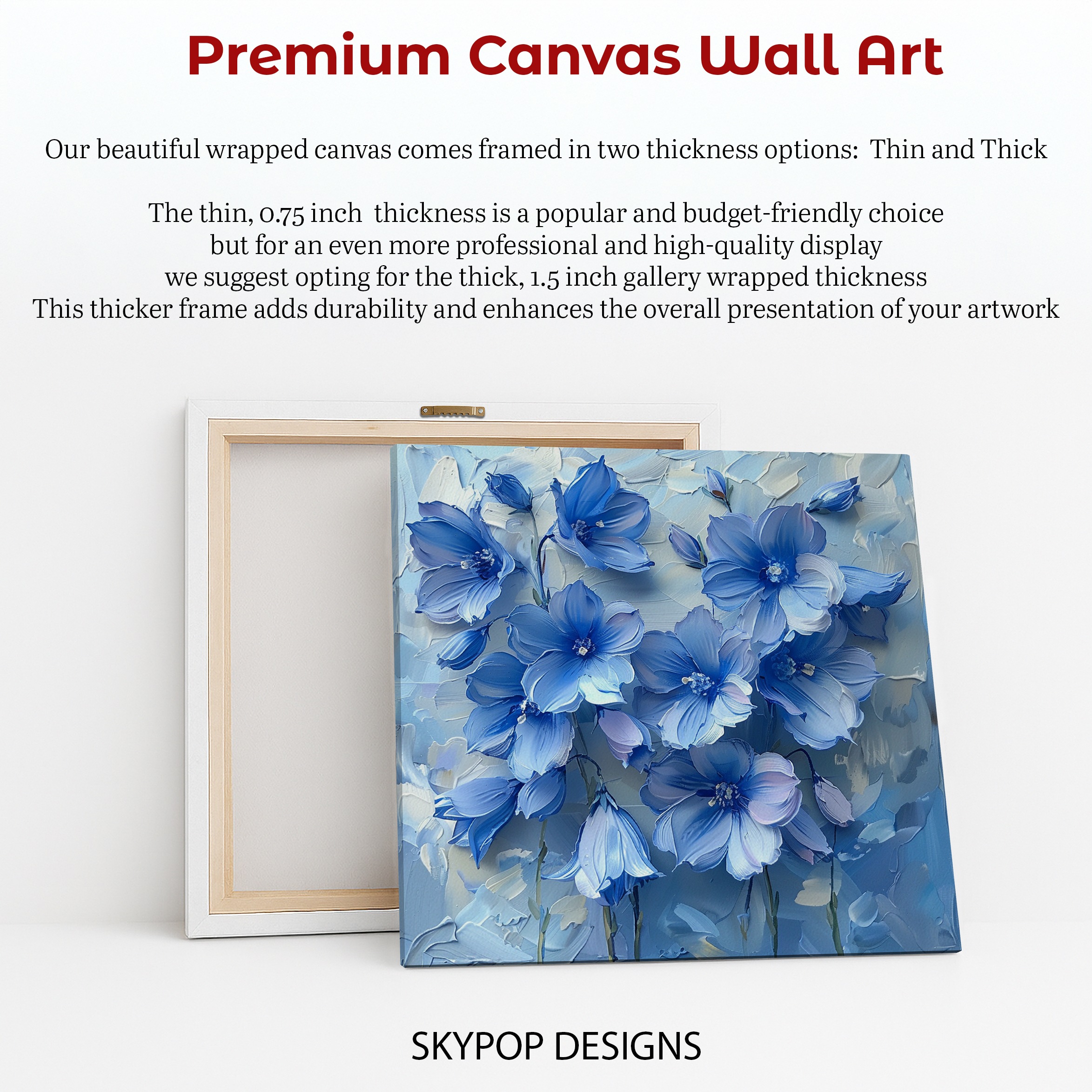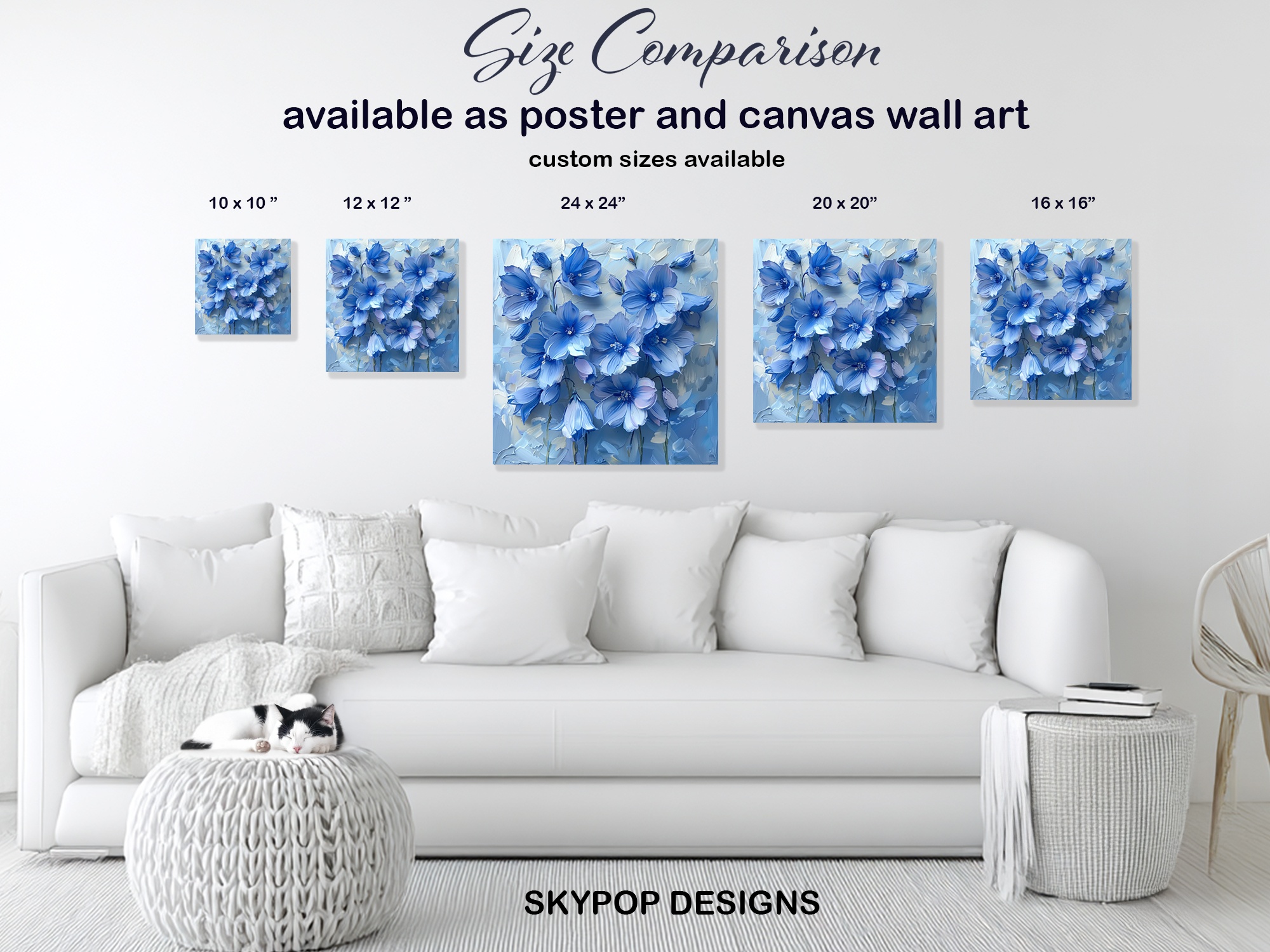 Transform your home with this stunning Delphinium canvas wall art, a captivating piece of floral art that brings the beauty of nature indoors. This poster or canvas wall art is perfect for creating a serene and modern living room aesthetic, or to add a pop of color to your bedroom decor. The vibrant blues and soft whites of the Delphinium flowers evoke a sense of calm and spaciousness, making it ideal for coastal or Scandinavian inspired interiors. This contemporary artwork showcases the delicate details of the Delphinium bloom with a painterly texture that adds depth and sophistication. High-quality printing ensures that every petal and brushstroke is rendered with exceptional clarity, providing a striking visual statement for your entryway or bathroom. This versatile floral canvas art is an excellent choice to refresh your home decor or as a thoughtful housewarming gift, birthday present, or holiday surprise. The cool blue tones also lend themselves well to creating a tranquil atmosphere, perfect for relaxation. Elevate your wall art collection with this breathtaking Delphinium poster, a piece that seamlessly blends natural beauty with modern design. Discover the calming influence and artistic elegance this Delphinium wall art brings to any space. Enhance your decor today with this beautiful floral wall art.