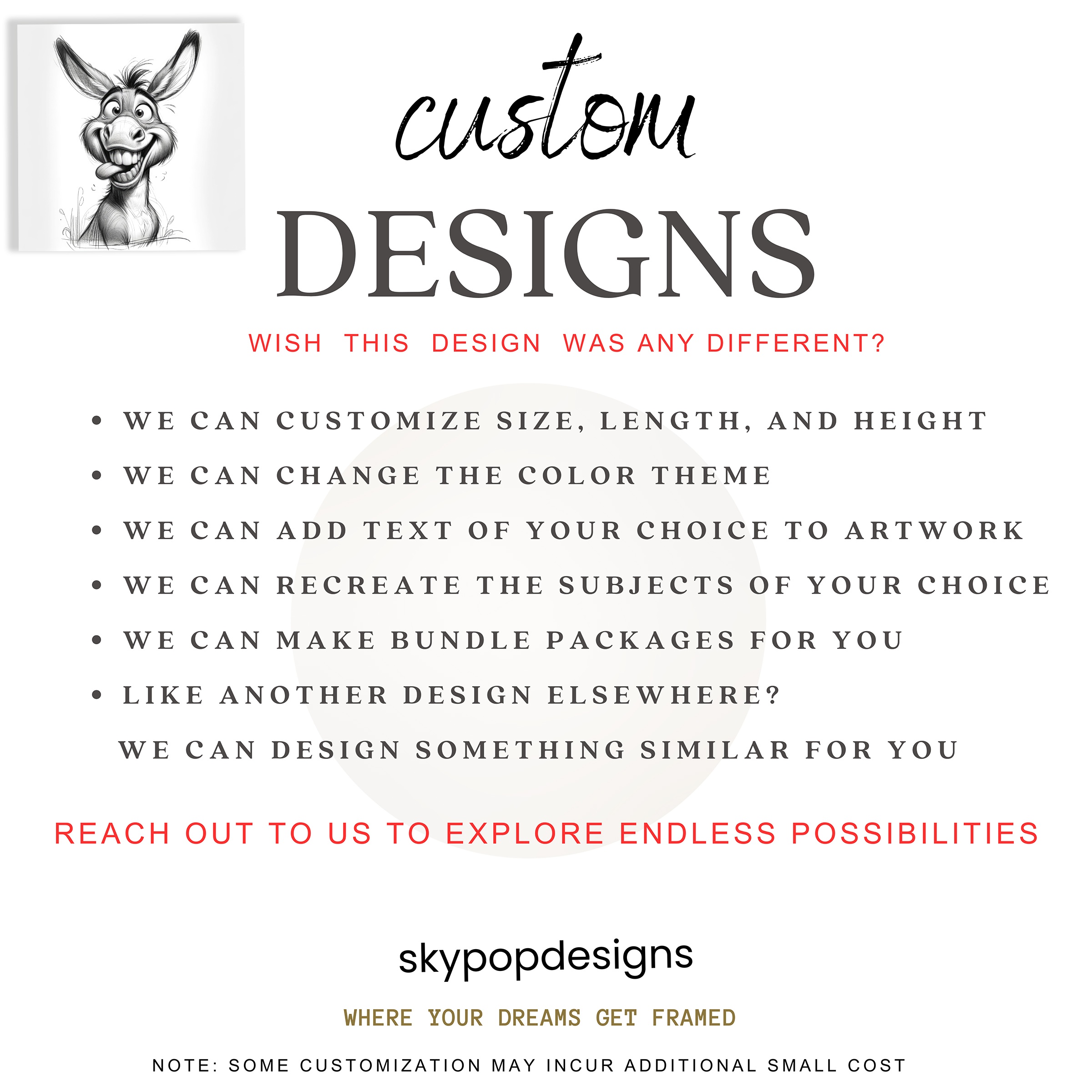 Looking for a custom design, or do you love a particular design but need it in a different size or orientation? Perhaps you’ve found a design elsewhere and wish for us to create something similar for you? Drop us a message! We’re dedicated to meeting your needs and will work closely with you to ensure your vision comes to life.