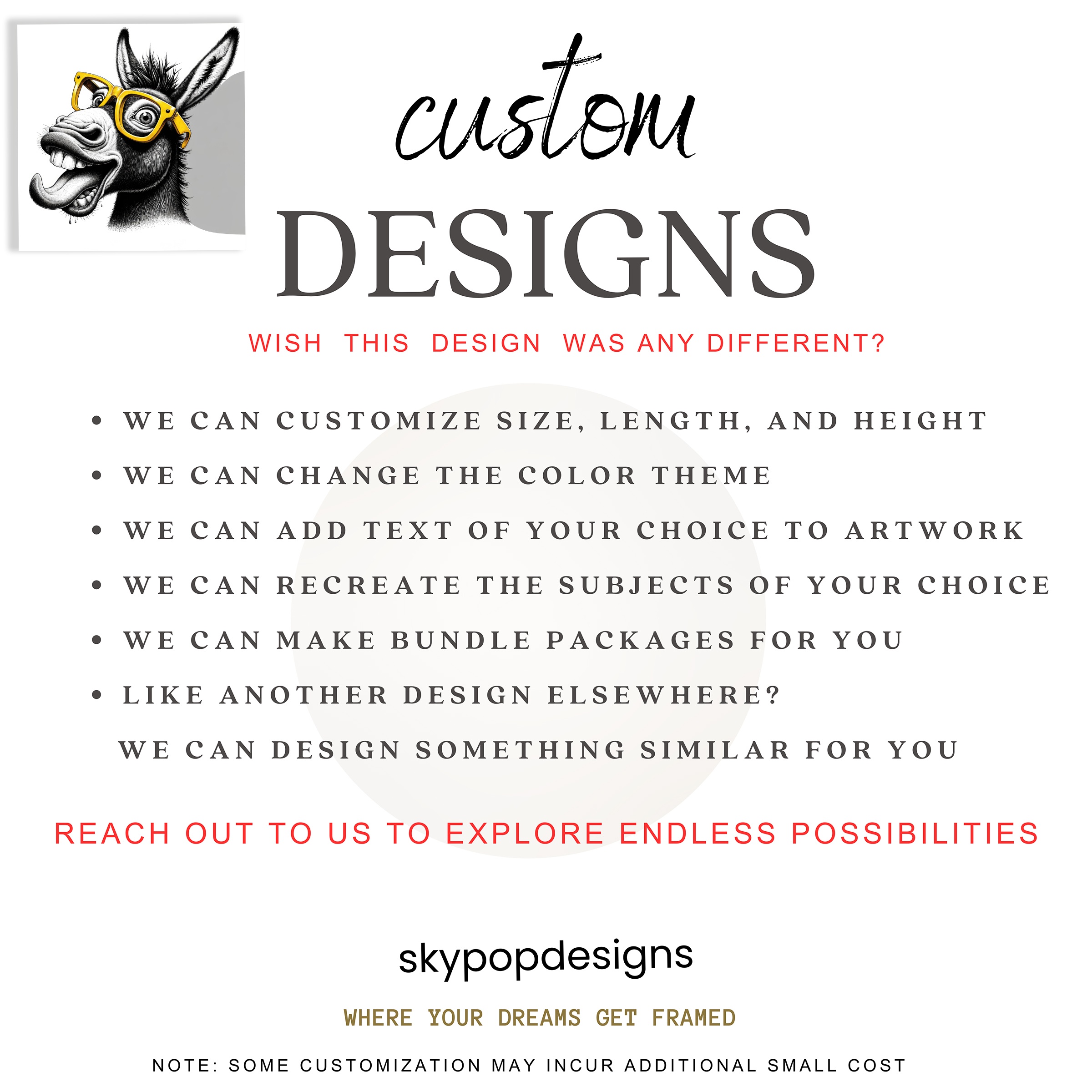 Looking for a custom design, or do you love a particular design but need it in a different size or orientation? Perhaps you’ve found a design elsewhere and wish for us to create something similar for you? Drop us a message! We’re dedicated to meeting your needs and will work closely with you to ensure your vision comes to life.