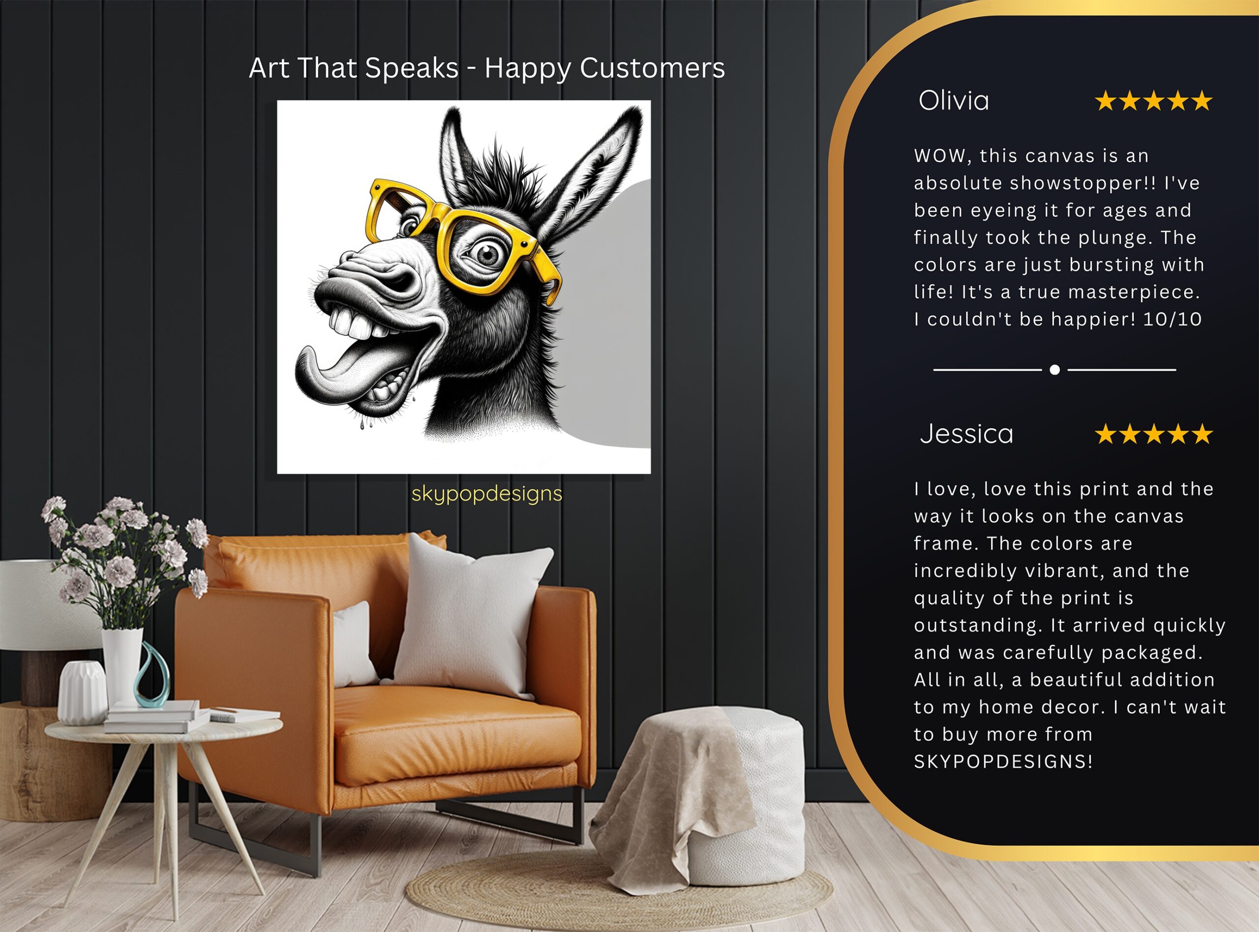 Keywords: Pop Art Donkey, Whimsical Art, Graffiti Art, Bohemian Decor, Modern Art, Contemporary Art, Living Room Art, Game Room Decor, Office Wall Art, Children’s Room Decor, Black and White Art, Yellow Accents, Multicolor Art, Funny Donkey, Goofy Donkey Art, Animal Wall Art, Canvas Print, Poster Art, Humorous Art, Quirky Decor, Unique Wall Art, Gift for Him, Gift for Her, Birthday Gift, Housewarming Gift, Joyful Art, Playful Art, Conversation Starter, Bold Graphic Art, Animal Canvas