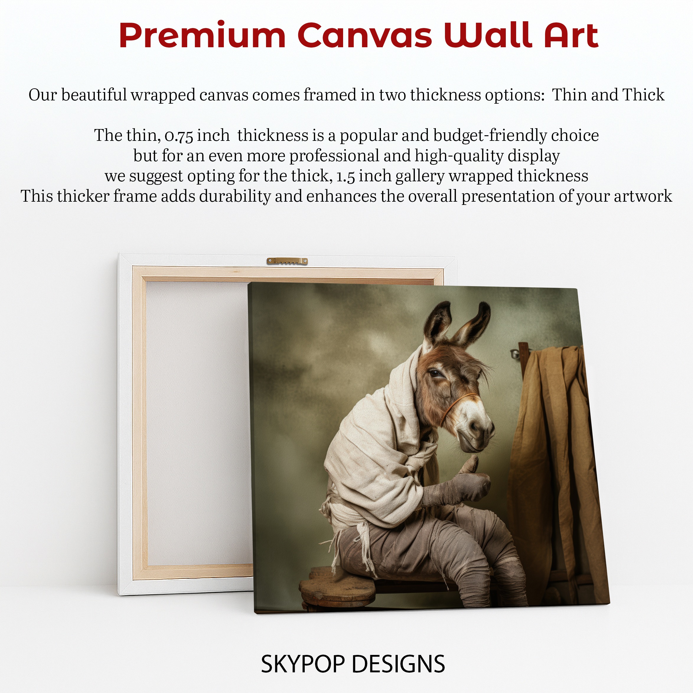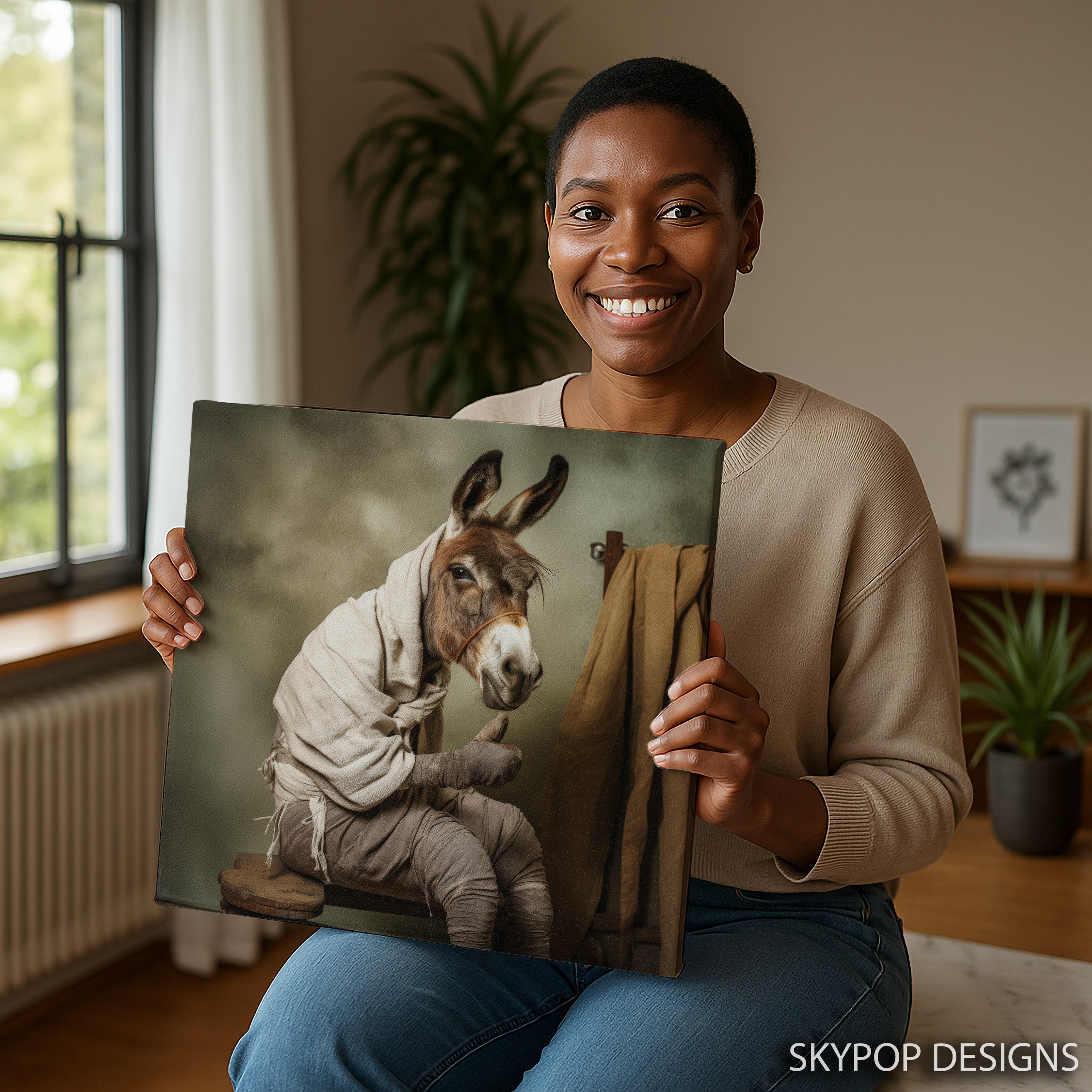 Transform your living space with this unique and eye-catching donkey canvas wall art, showcasing a charming donkey giving a confident thumbs up. This captivating poster art blends contemporary style with whimsical animal elements, making it a perfect conversation starter for any room. The striking imagery and earthy color palette will elevate your decor, adding a touch of personality and warmth. Ideal for creating a cozy bohemian vibe or enhancing a modern, rustic aesthetic, this canvas print is a versatile addition to your home. Available as a poster or canvas wall art, it perfectly suits living rooms, game rooms, offices, or guest rooms. The detailed rendering of the donkey’s expression and the textured background create a visually engaging piece that inspires smiles. This unique animal art is a fantastic gift for animal lovers, art collectors, or anyone looking to add a touch of humor and character to their walls. Crafted with high-quality materials, this canvas wall art ensures vibrant colors and sharp details that will last for years. It’s the perfect statement piece to express your individual style and bring joy to your everyday surroundings. Whether you’re seeking a focal point for a gallery wall or a standalone piece, this donkey artwork delivers. Elevate your home decor with this delightful and inspiring canvas print today.