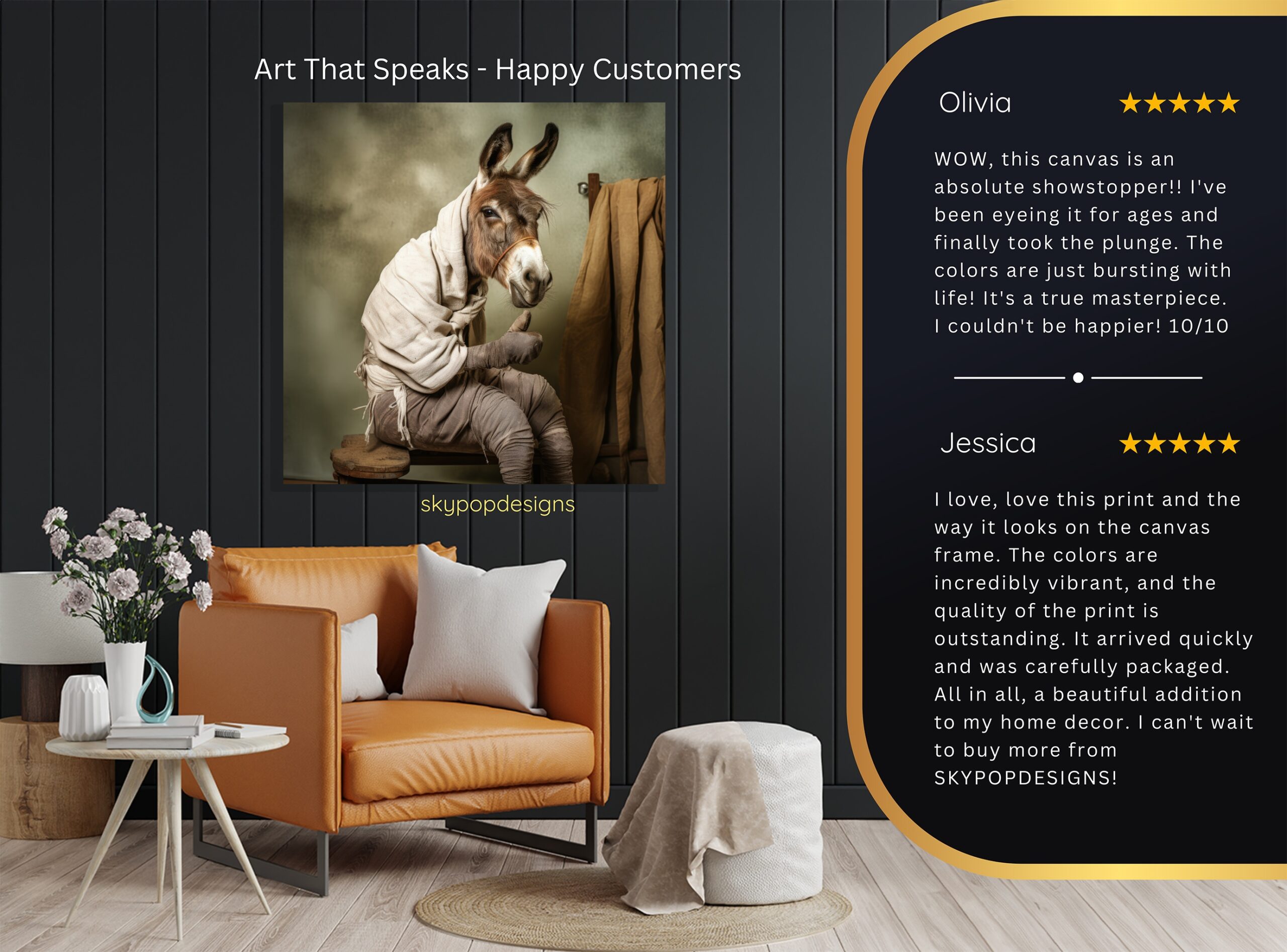 Keywords: Donkey Art, Thumbs Up Donkey, Canvas Wall Art, Animal Art, Whimsical Art, Contemporary Art, Figurative Art, Bohemian Decor, Modern Decor, Rustic Decor, Living Room Art, Game Room Decor, Office Wall Art, Guest Room Decor, Brown Art, Beige Art, Multicolor Art, Grey Art, Animal Lover Gift, Art Collector Gift, Wall Decor, Home Decor, Statement Piece, Humorous Art, Unique Wall Art, Canvas Print, Poster Art, High-Quality Art, Expressive Art, Joyful Decor