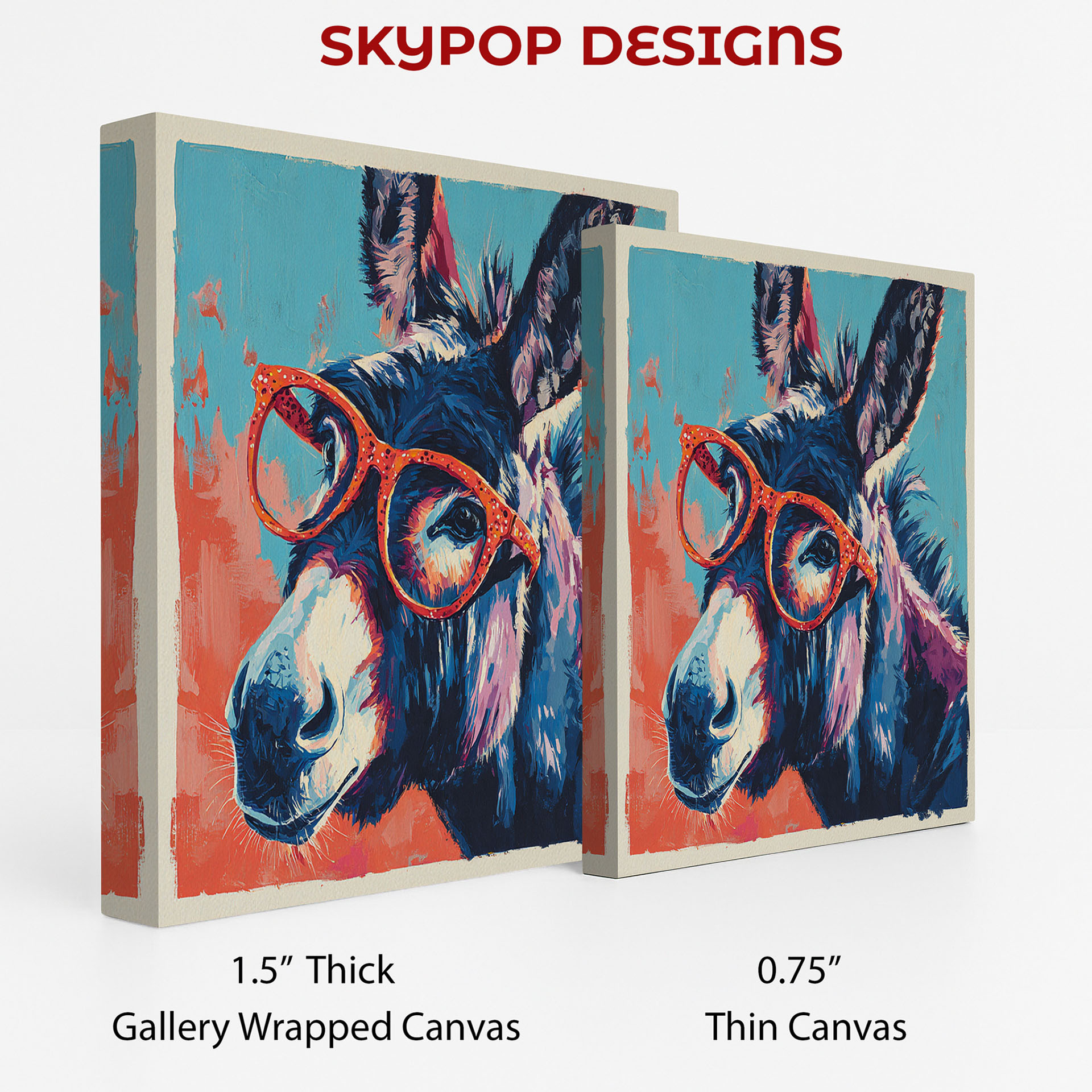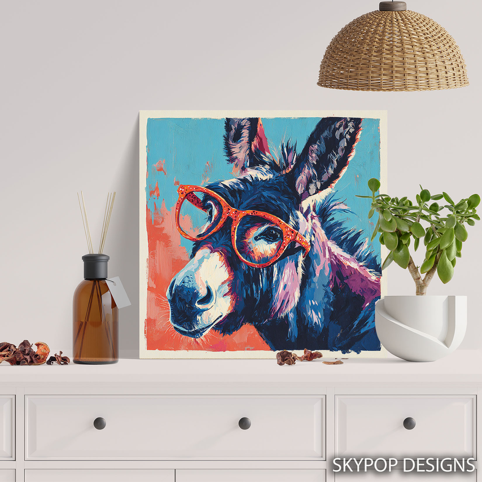 Transform your walls with this vibrant and quirky donkey canvas wall art, a perfect pop art statement piece for any modern or bohemian space. This captivating poster or canvas wall art showcases a donkey sporting stylish orange-rimmed glasses, bringing a unique personality and splash of color to your home decor. The bold blue and multicolor palette, accented with bright oranges, creates an energetic and eye-catching focal point, suitable for living rooms, bedrooms, children’s rooms, or offices. This animal art piece is ideal for adding a touch of whimsy and fun to contemporary interiors, making it a great conversation starter. The striking contrast of the donkey’s textured fur against the bright glasses and background ensures this canvas wall art will stand out. High-quality printing captures the expressive brushstrokes and vibrant details of this modern wall decor. This versatile artwork is perfect for those wanting to elevate their home with unique and playful animal prints. It’s an ideal gift for birthdays, housewarmings, or anyone who loves quirky and stylish wall art. Enhance your space with this charming donkey canvas art that combines modern design with a touch of lighthearted appeal. Discover the joy this striking donkey poster or canvas art brings to everyday living. Elevate your decor and celebrate individuality with this fun and fashionable animal artwork.