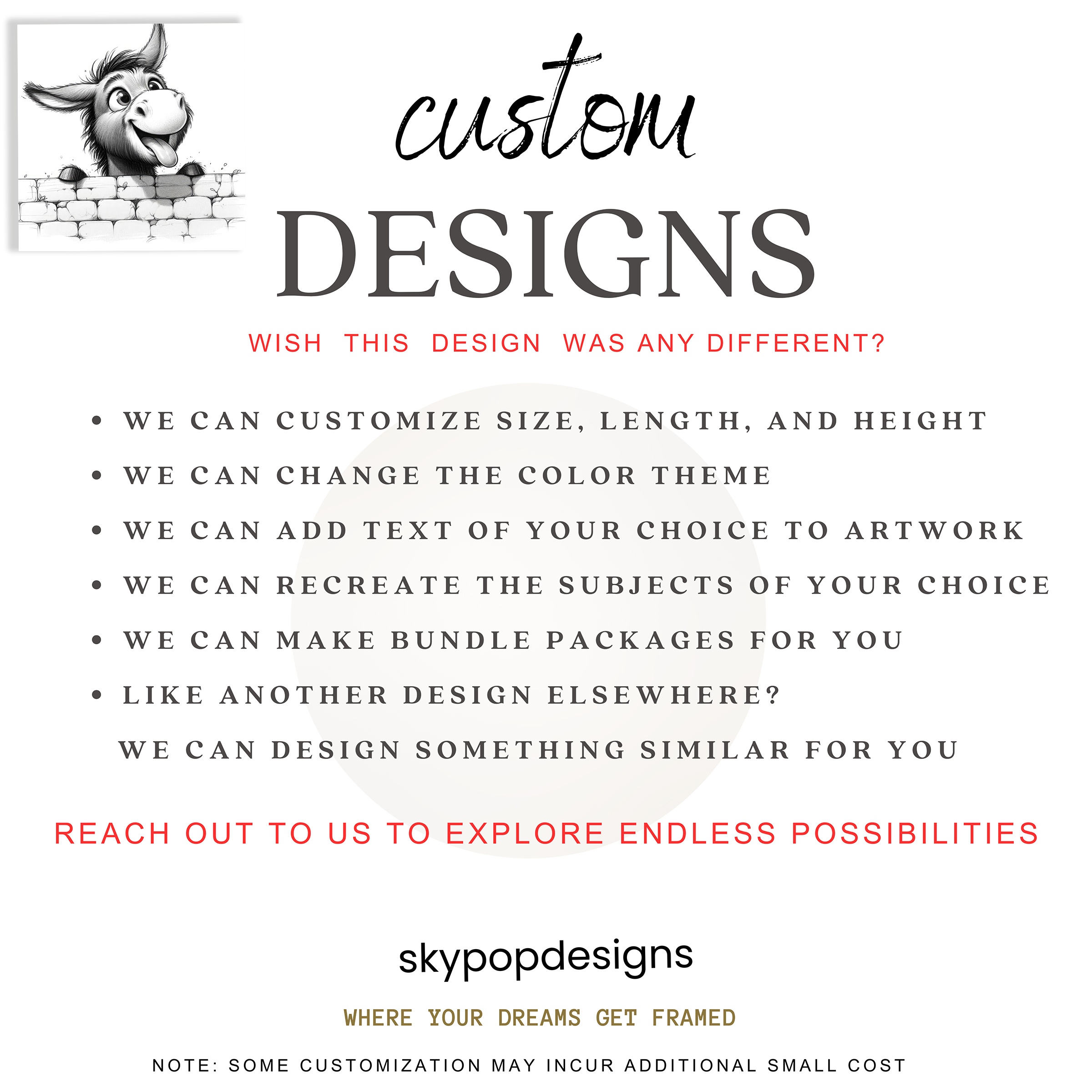 Looking for a custom design, or do you love a particular design but need it in a different size or orientation? Perhaps you’ve found a design elsewhere and wish for us to create something similar for you? Drop us a message! We’re dedicated to meeting your needs and will work closely with you to ensure your vision comes to life.