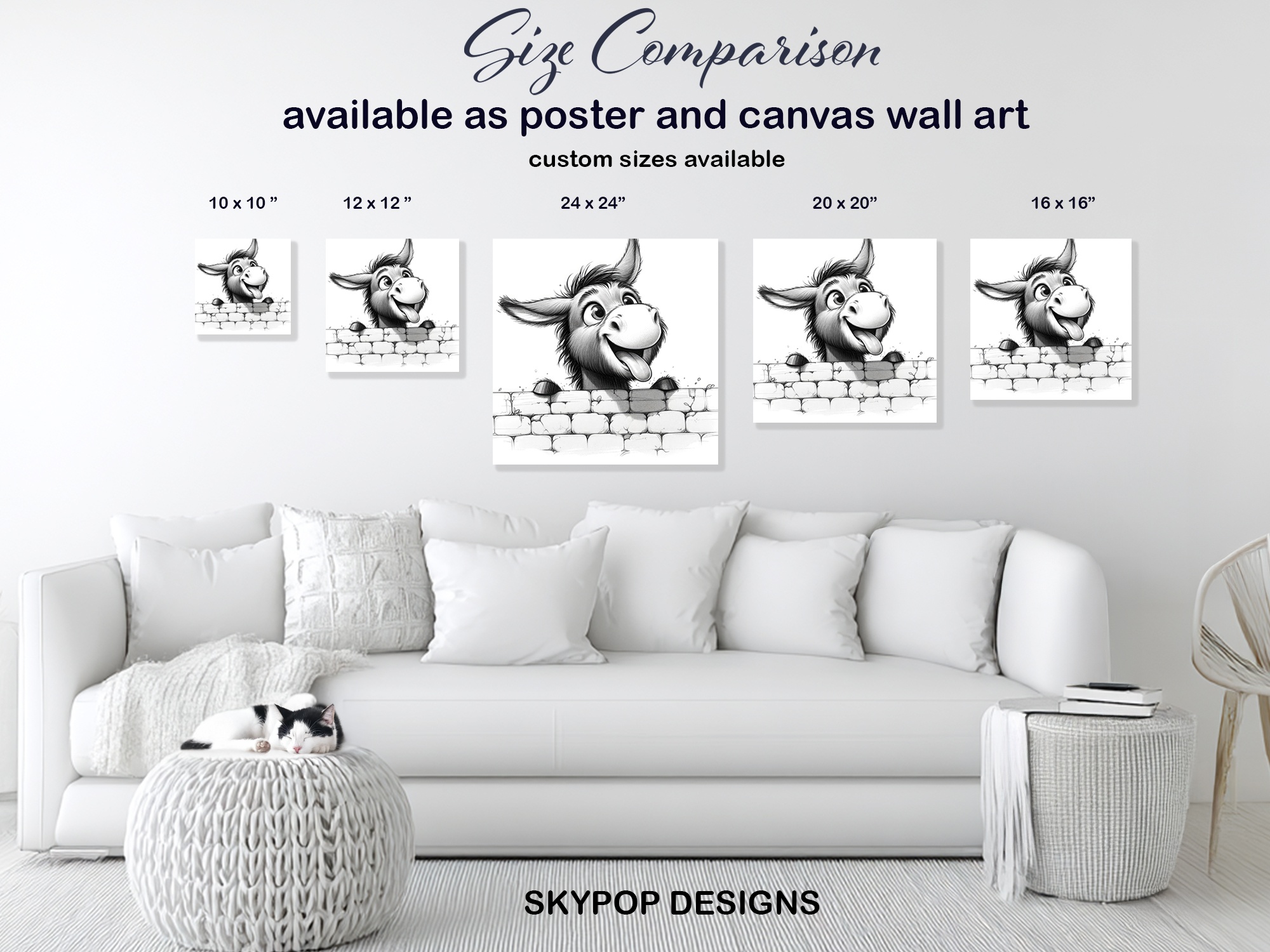 Keywords: Donkey Art, Whimsical Wall Art, Animal Poster, Farmhouse Decor, Rustic Wall Art, Bohemian Decor, Childrens Room Art, Living Room Art, Kitchen Decor, Entryway Decor, Black and White Art, Grey Art, Brown Art, Cheeky Donkey Art, Donkey Peeking Art, Canvas Wall Art, Animal Lover Gift, Housewarming Gift, Playful Wall Art, Charming Donkey, Sketch Art, Unique Wall Decor, Modern Farmhouse, Boho Chic, Rustic Charm, Wall Decor Poster, Home Decor Art, Animal Art Print, Donkey Painting, Joyful Wall Art