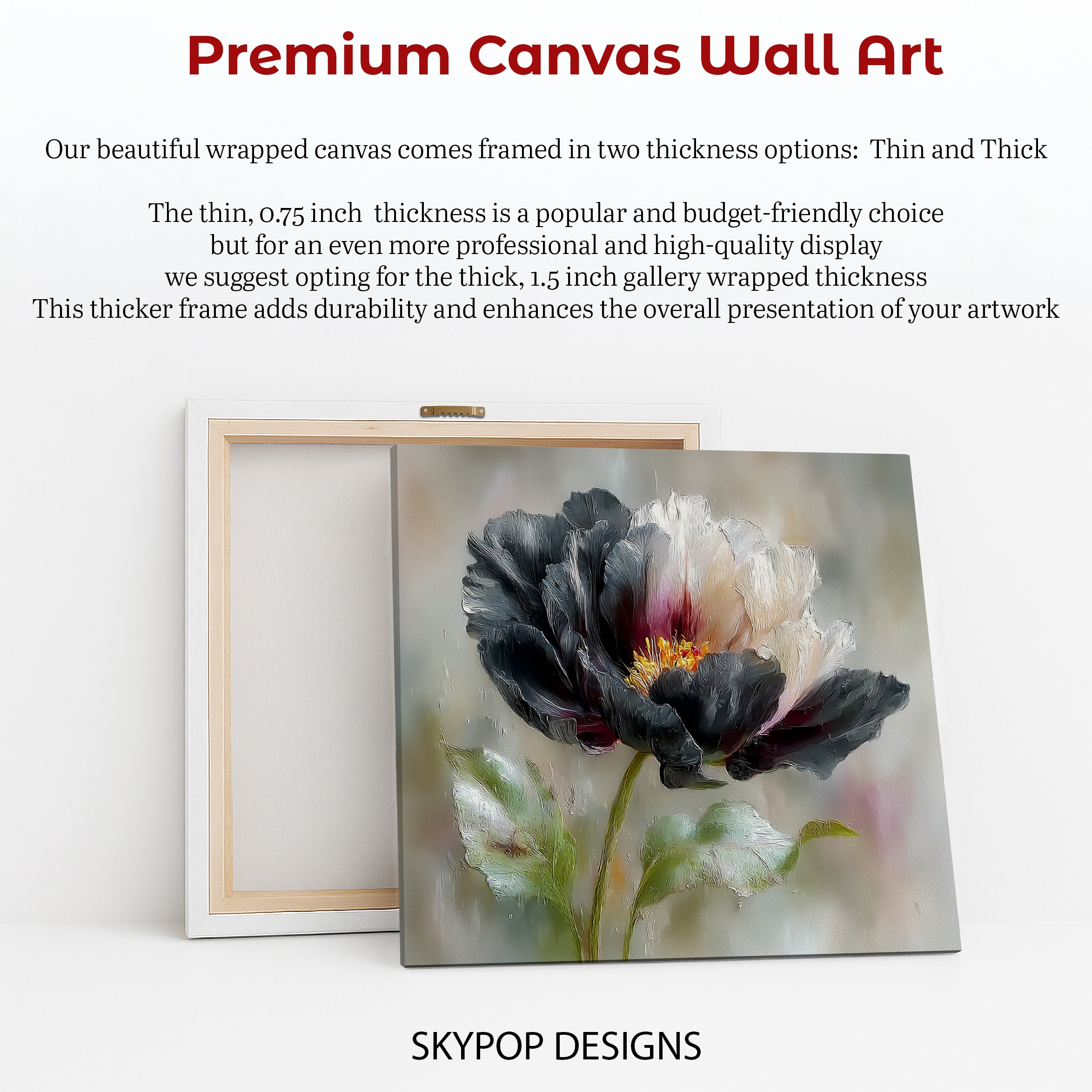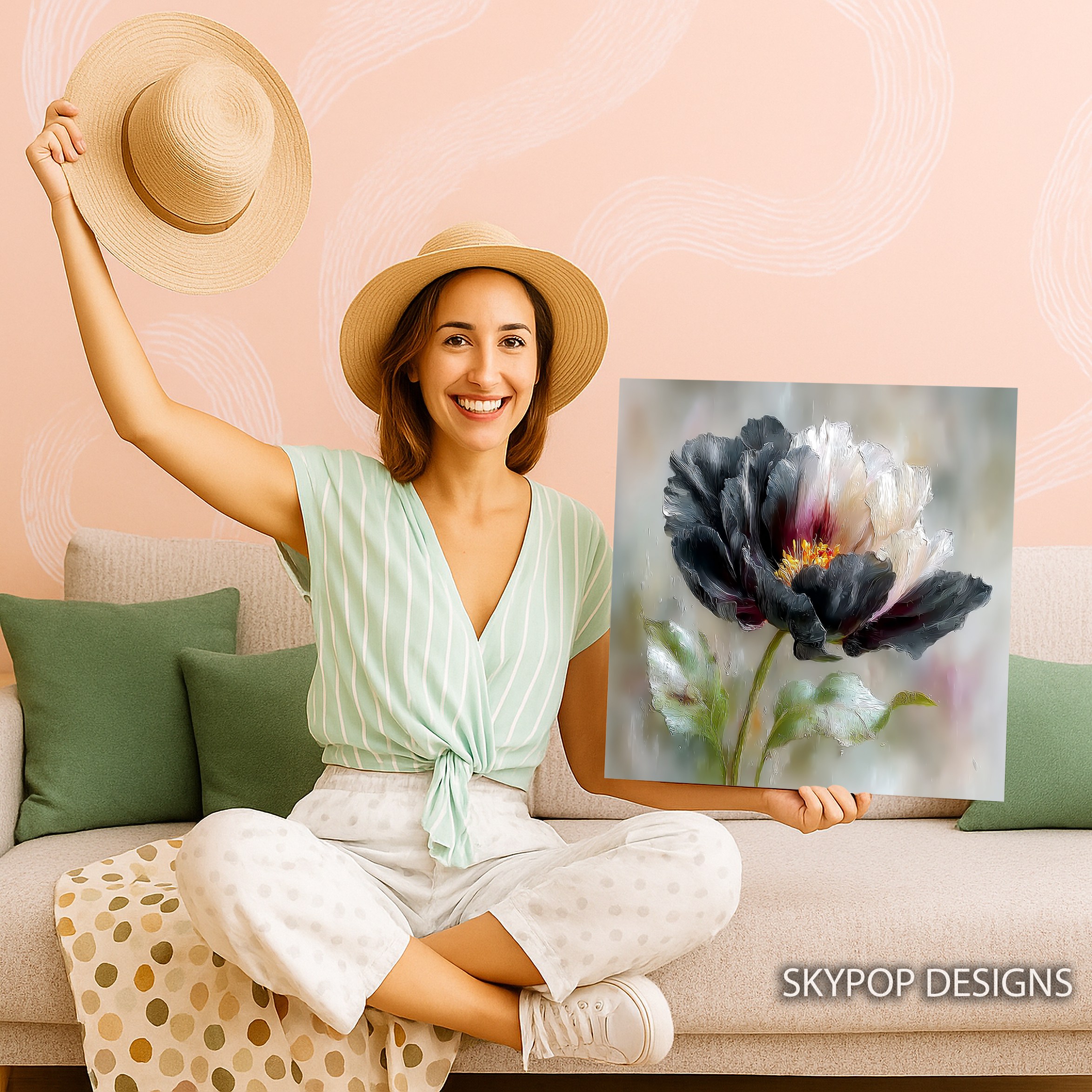 Transform your space with this striking poppy canvas wall art, featuring a bold and contemporary take on floral beauty. This captivating poster or canvas print showcases a single, dramatic poppy bloom with intricate details that draw the eye. The contrasting black and white petals create a powerful visual impact, while the vibrant yellow center adds a pop of color that brings the flower to life. Perfect for modern living room wall decor or as a statement piece in a minimalist bedroom, this artwork effortlessly combines elegance with drama. The large-scale flower design makes it an ideal focal point for any room, instantly elevating your decor with its sophisticated allure. The high-quality printing captures every delicate texture and brushstroke, giving the piece a sense of depth and dimension that mimics an original painting. Whether you’re looking to refresh your home office or add a touch of glamour to your dining room, this versatile canvas art adapts beautifully to various interior styles. The striking black and white color scheme with subtle red accents creates a mood of timeless elegance, while the contemporary style keeps the look fresh and on-trend. This poppy wall art is not just decor; it’s a conversation starter that brings nature’s beauty indoors in a bold, artistic way. Enhance your space today with this eye-catching floral artwork that’s sure to impress guests and inspire your daily life.