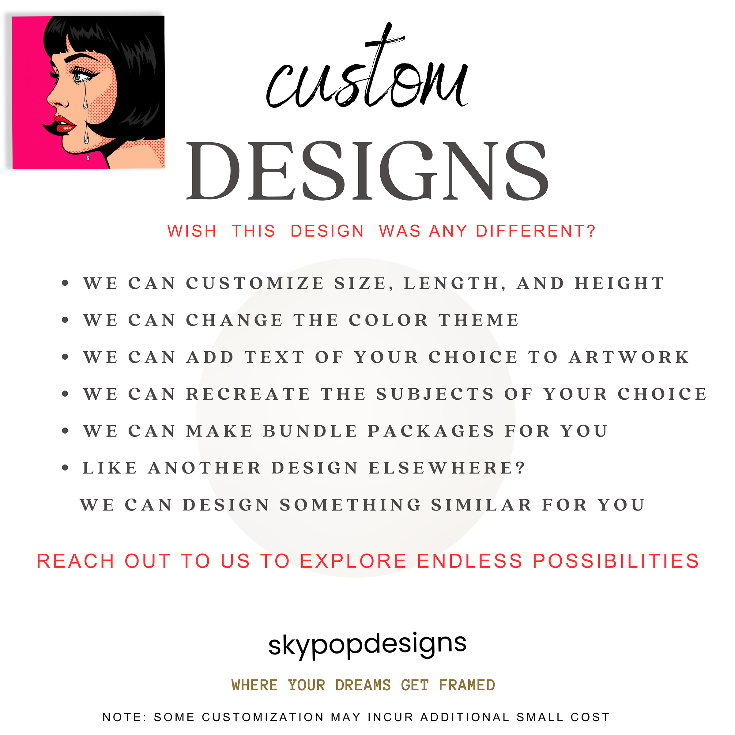 Welcome to SKYPOPDESIGNS, where we blend art, precision, and affordability. Our collection showcases stunning, high-quality images meticulously printed on canvas or posters, ensuring a flawless and consistent finish that captures the essence of various art styles.