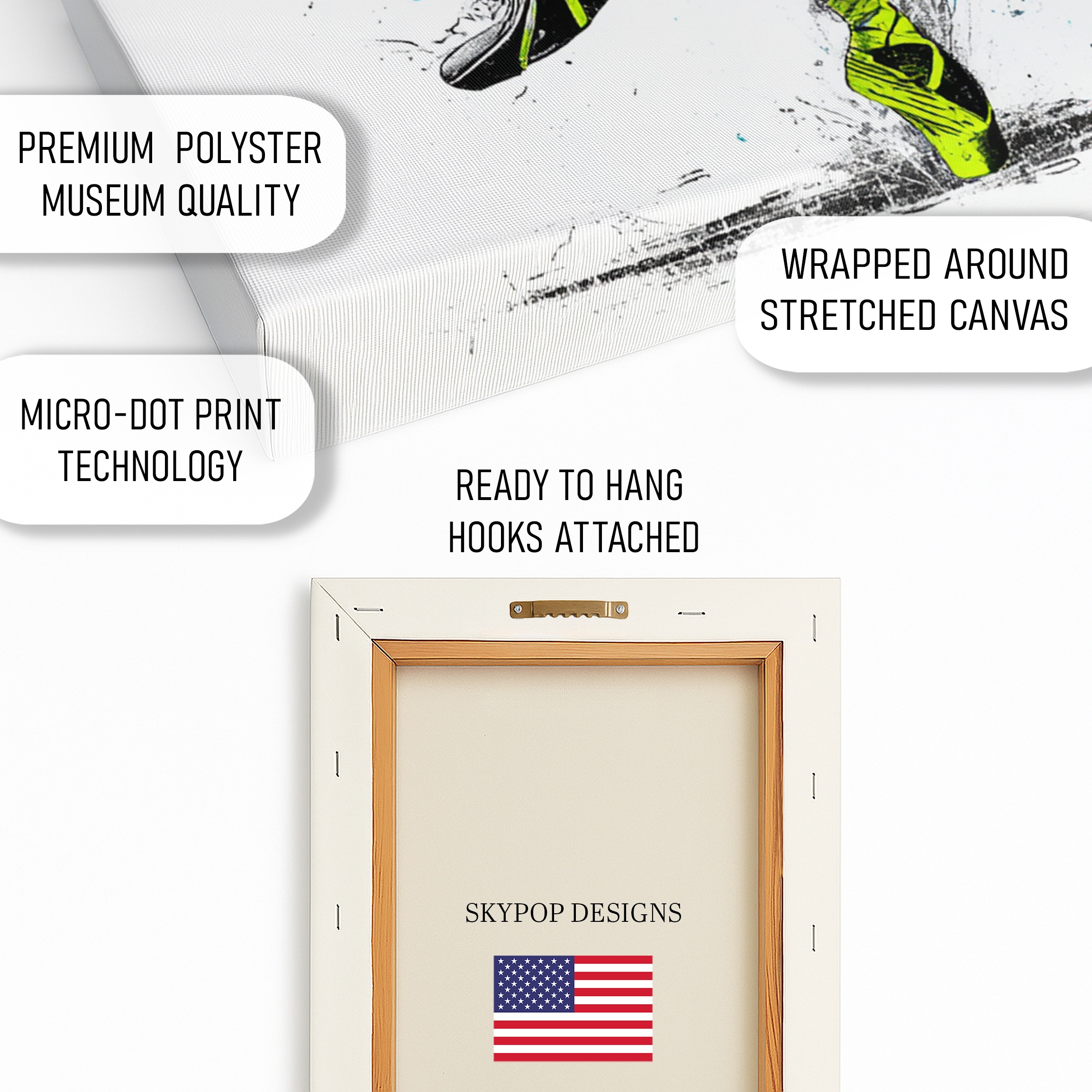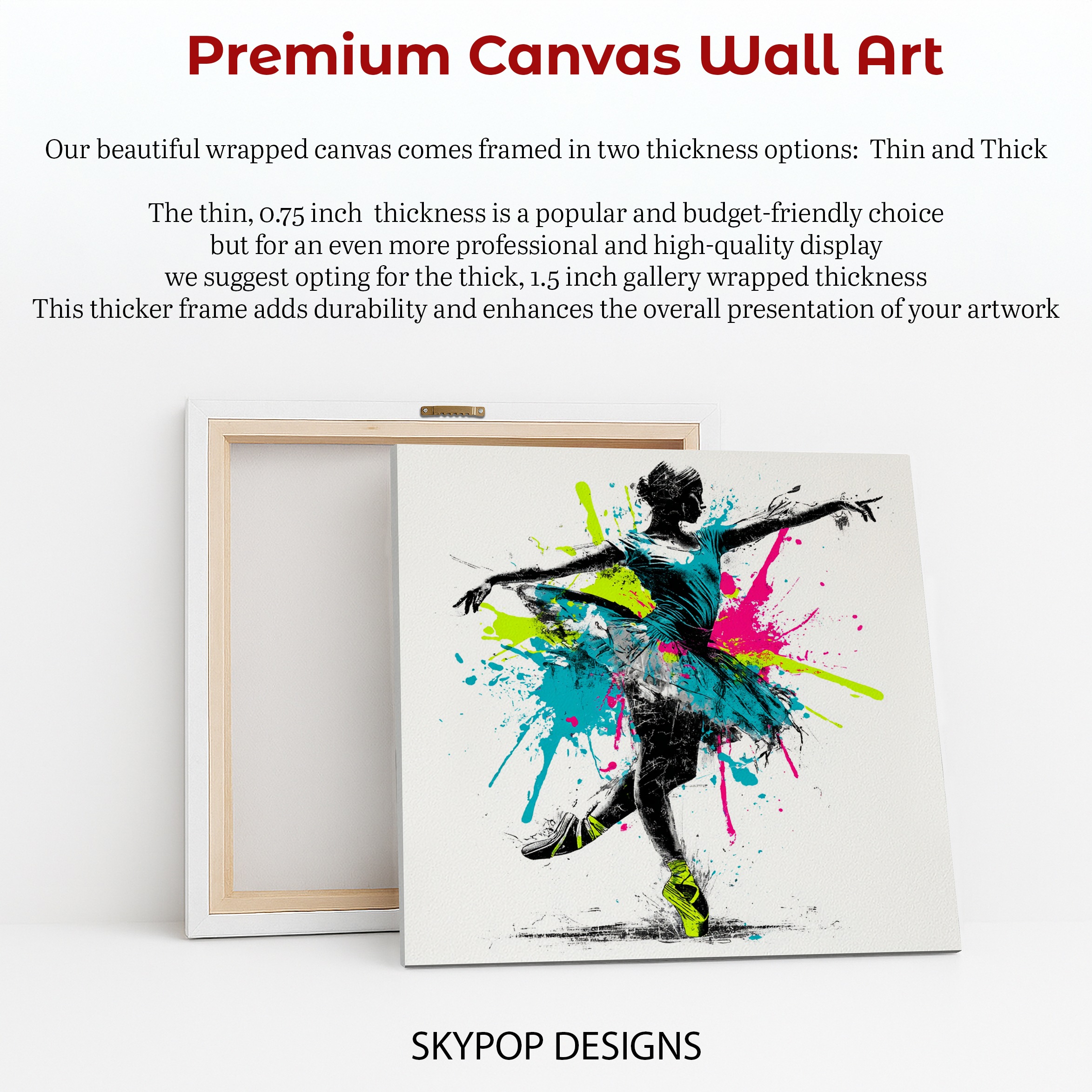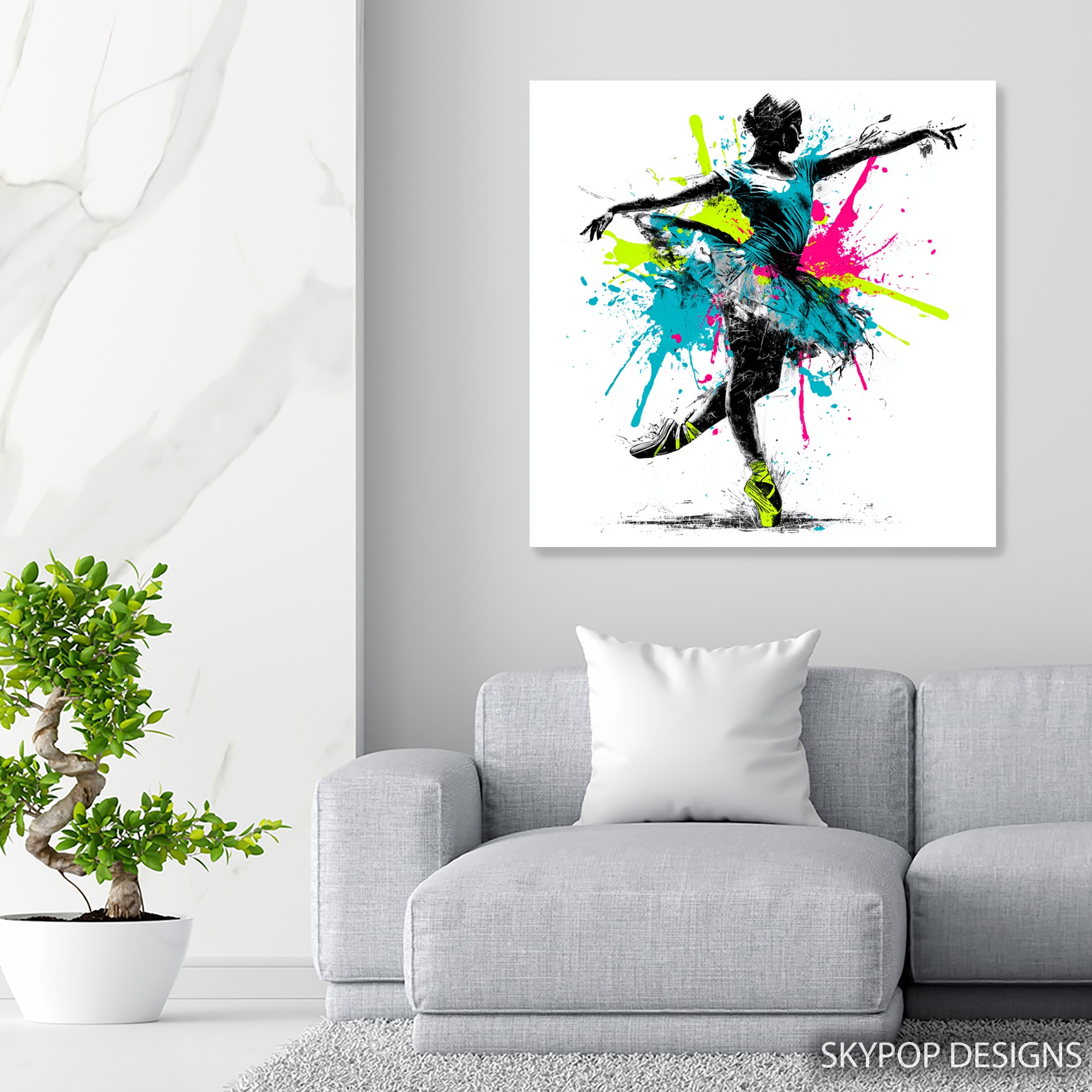 Elevate your space with this electrifying dancer canvas wall art that bursts with energy and color. This striking poster captures the fluid motion of a ballet dancer in mid-leap, surrounded by vibrant splashes of neon paint. Perfect for modern living rooms or home gyms, this dynamic piece adds instant vitality to any wall. The bold combination of turquoise, hot pink, and lime green against a stark white background creates a visually stunning contrast that demands attention. Ideal for contemporary decor enthusiasts, this canvas art seamlessly blends street art aesthetics with the grace of classical dance. The explosive paint splatters convey a sense of movement and freedom, inspiring creativity and passion in your daily life. Whether displayed in a minimalist bedroom or a busy office, this versatile artwork adapts to various interior styles while maintaining its powerful presence. High-quality printing ensures every detail of the dancer’s silhouette and paint splatter is captured with precision. This eye-catching piece serves as a focal point in urban-inspired spaces and makes for a thoughtful gift for dance lovers or fitness enthusiasts. Transform your room with this unique blend of sports art and street style that celebrates the beauty of human movement. Make a statement and infuse your walls with dynamic energy today.
