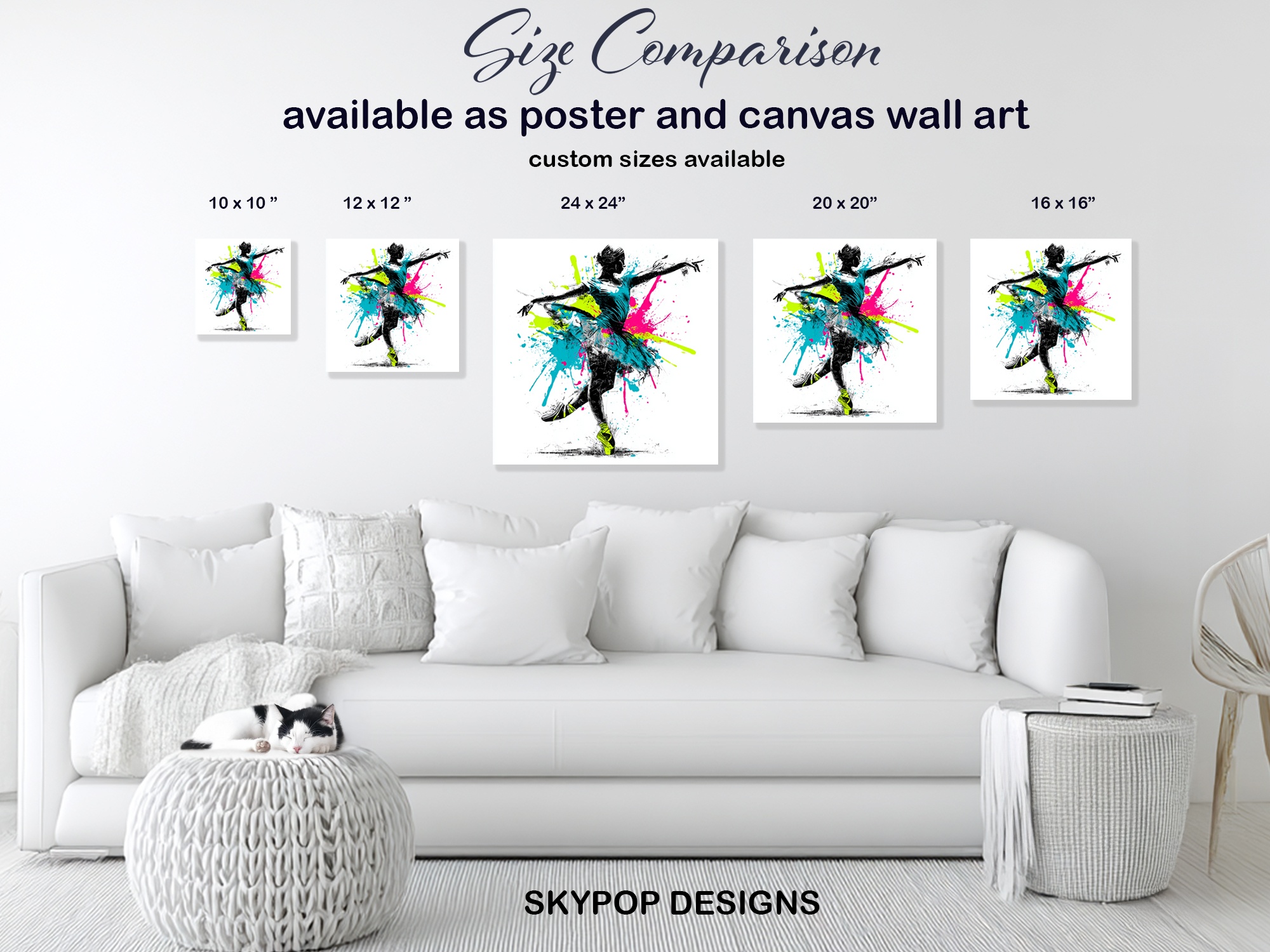 Dynamic Dancer Splash Art, Canvas or Poster, Contemporary Urban Decor, Living Room Home Gym Bedroom Office Wall Art, Blue Pink Green Black
