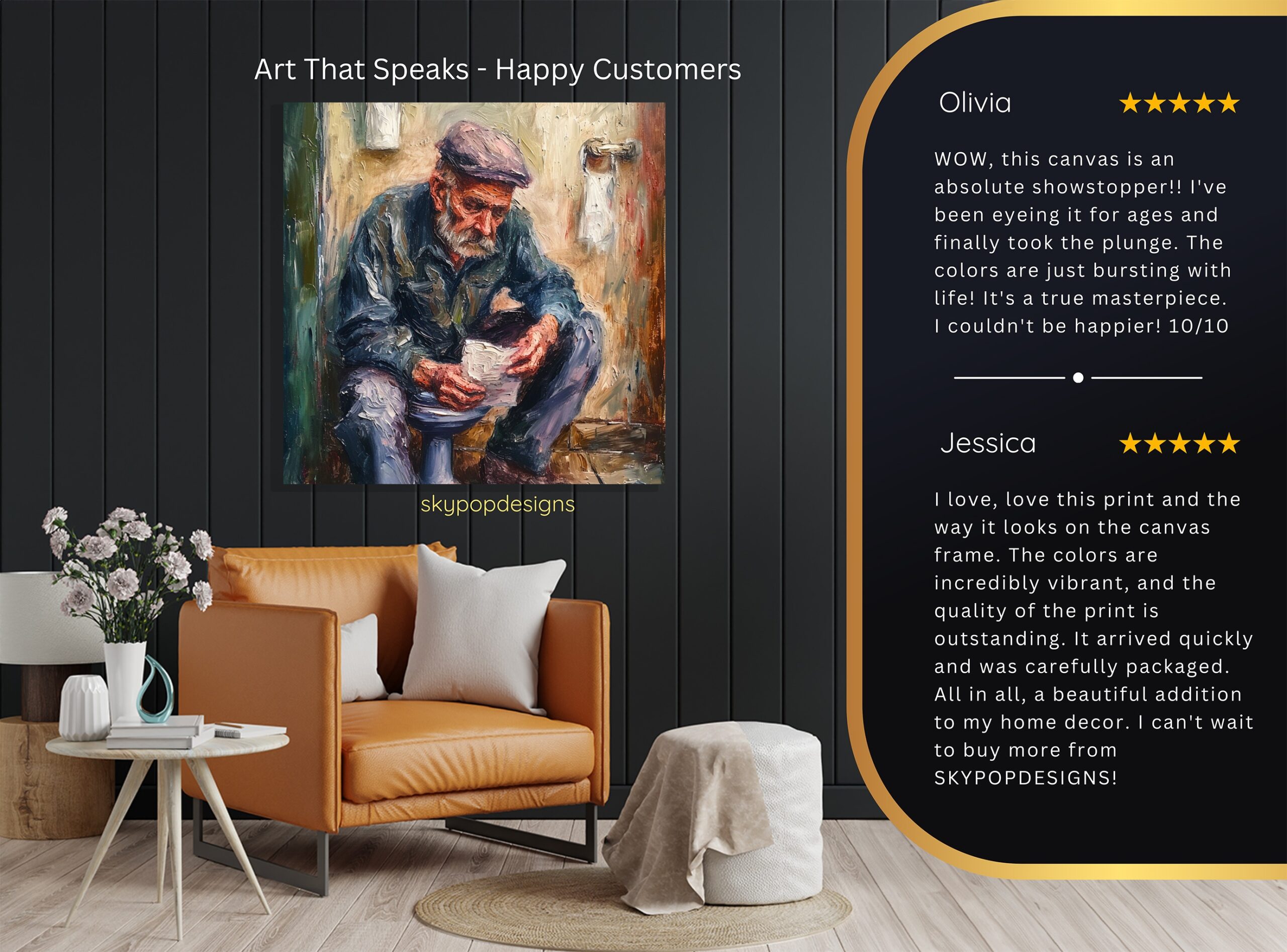 At SKYPOPDESIGNS, we specialize in high-quality canvas and poster prints designed to bring sophistication and style to your space. Please note that our designs are not created with 3D textures or as original oil, acrylic, or watercolor paintings; they are instead HD reproductions of original artwork. This approach allows us to offer these visually stunning pieces at competitive prices, ensuring you receive top-tier, maintenance-free art that’s easy to enjoy.