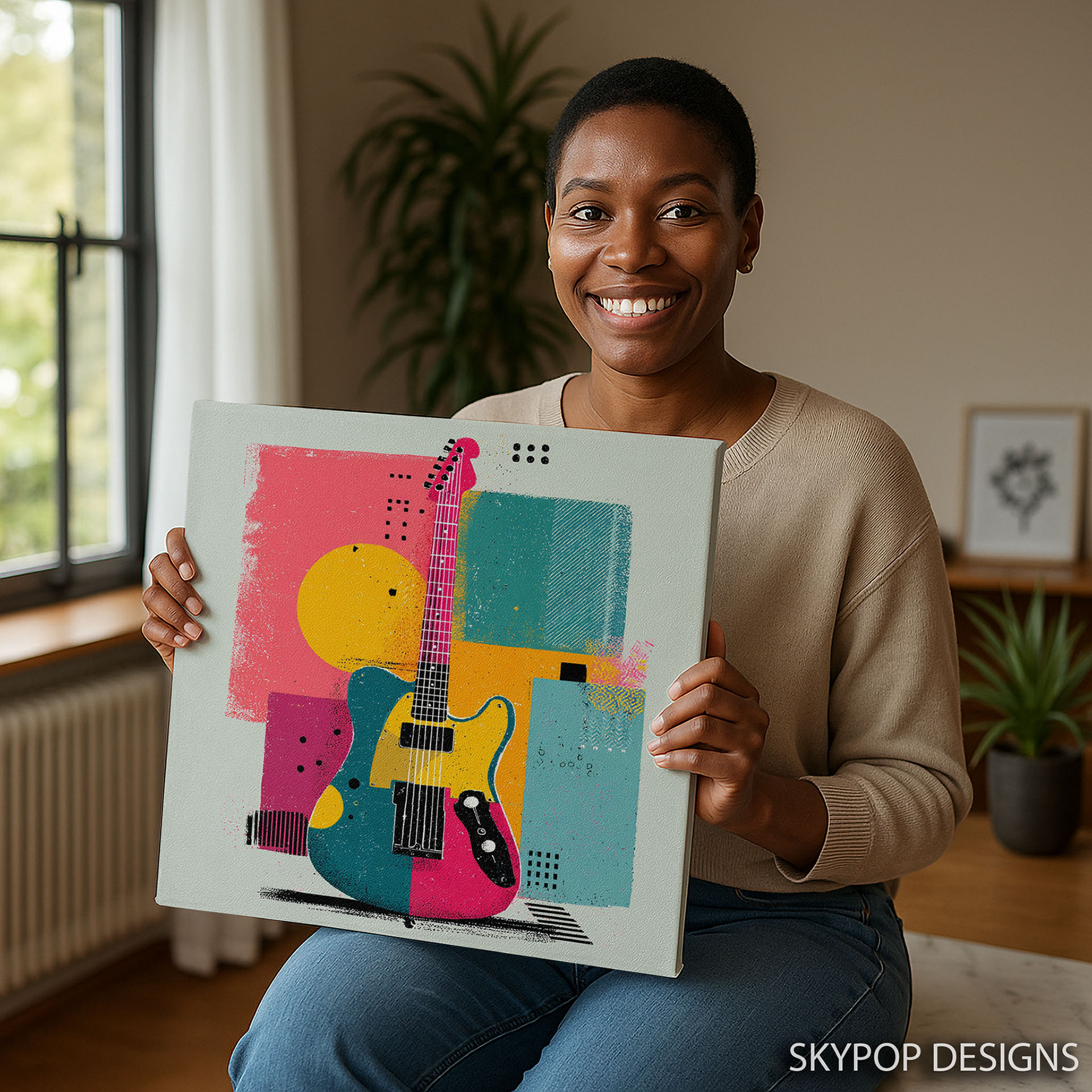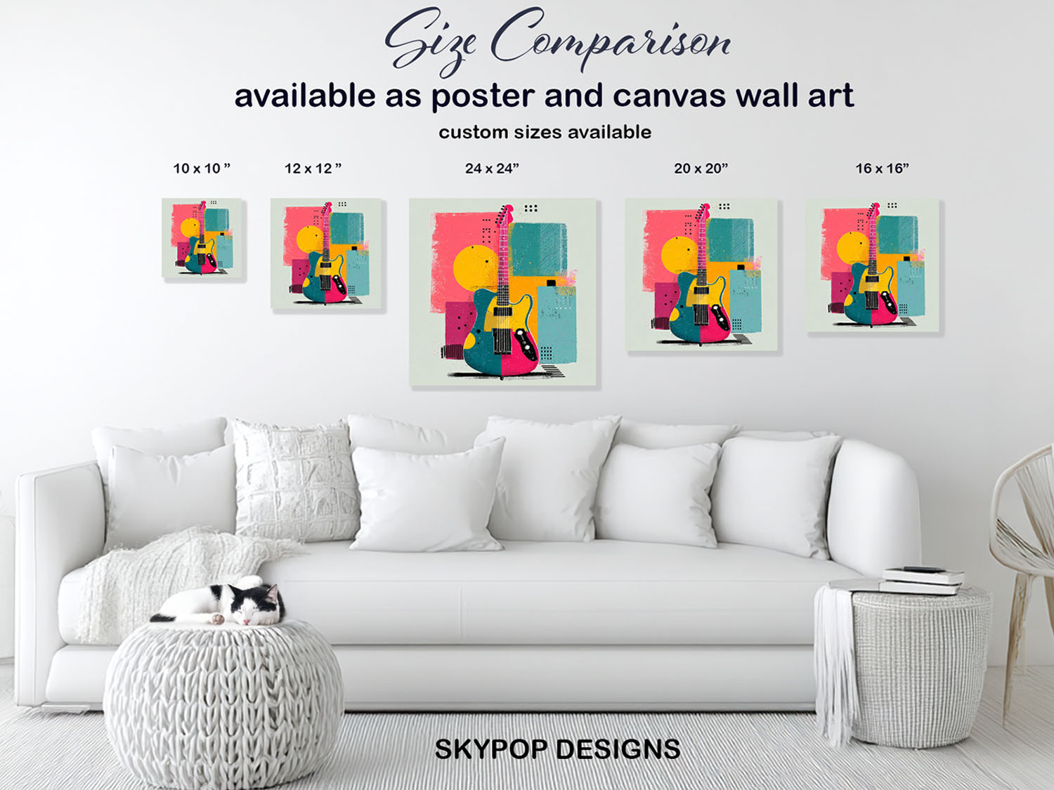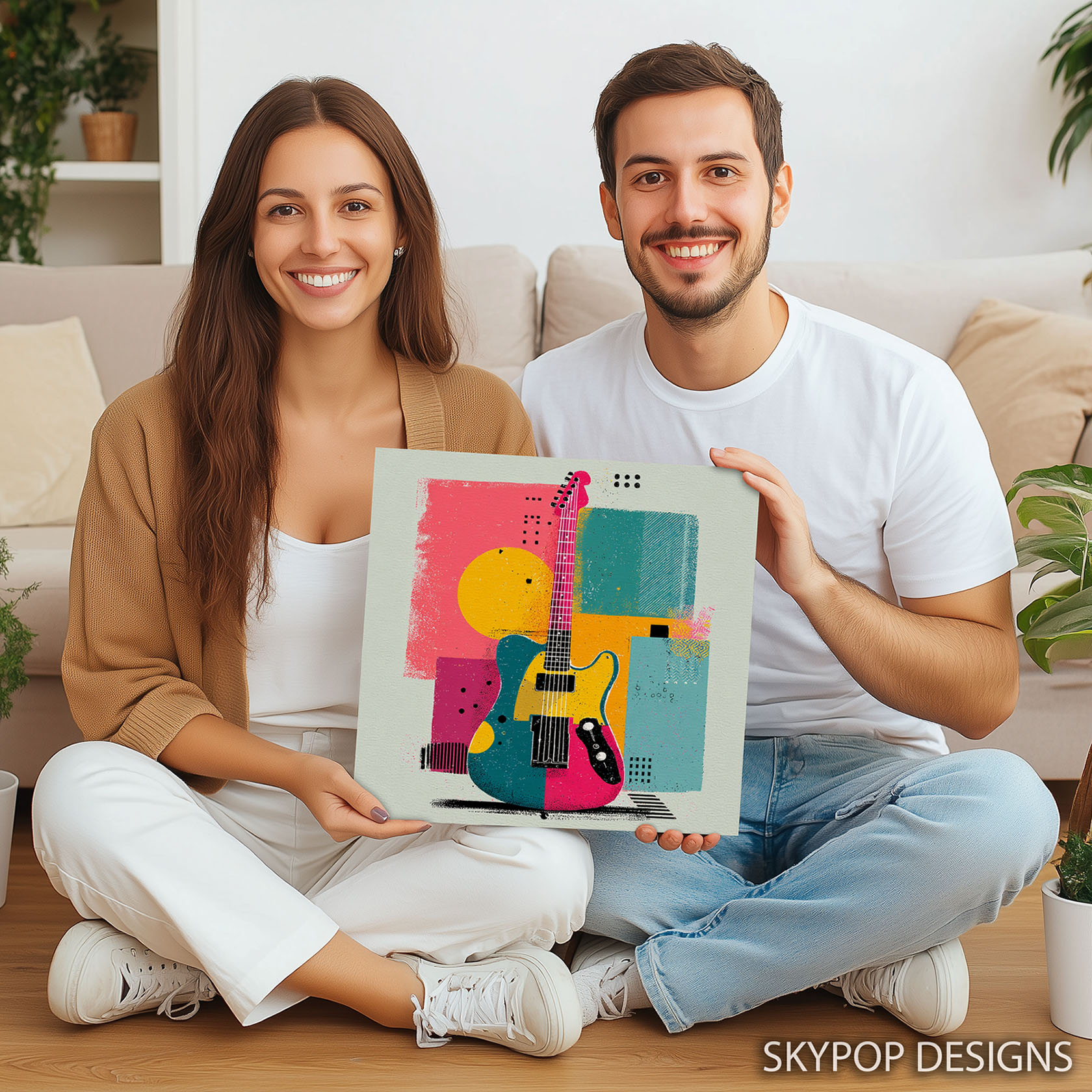 Ignite your passion for music with this vibrant electric guitar canvas wall art, a captivating piece that bursts with energy and color. This striking poster or canvas wall art is ideal for transforming any living room, game room, or office into a dynamic creative hub. The bold fusion of yellow, teal, and pink creates a visually stunning statement, perfect for modern and bohemian decor styles. This electrifying artwork celebrates the iconic electric guitar, a symbol of rock and roll and musical expression. High-quality printing ensures the intricate details and textured elements of this music art are showcased beautifully, making it a true focal point. Whether you’re a seasoned musician or an avid music lover, this canvas wall art will inspire your space and spark conversations. Its versatile design complements mid-century modern aesthetics while adding a splash of contemporary flair. Gift this unique poster or canvas wall art to friends and family for birthdays, holidays, or housewarmings, bringing joy and vibrant energy to their homes. Elevate your home decor with this eye-catching piece that embodies the spirit of innovation and artistic freedom in music. Make a statement in any music room or creative workspace with this pop art masterpiece that truly rocks. Bring the electrifying sound and visual excitement of music into your everyday life with this stunning electric guitar canvas art.