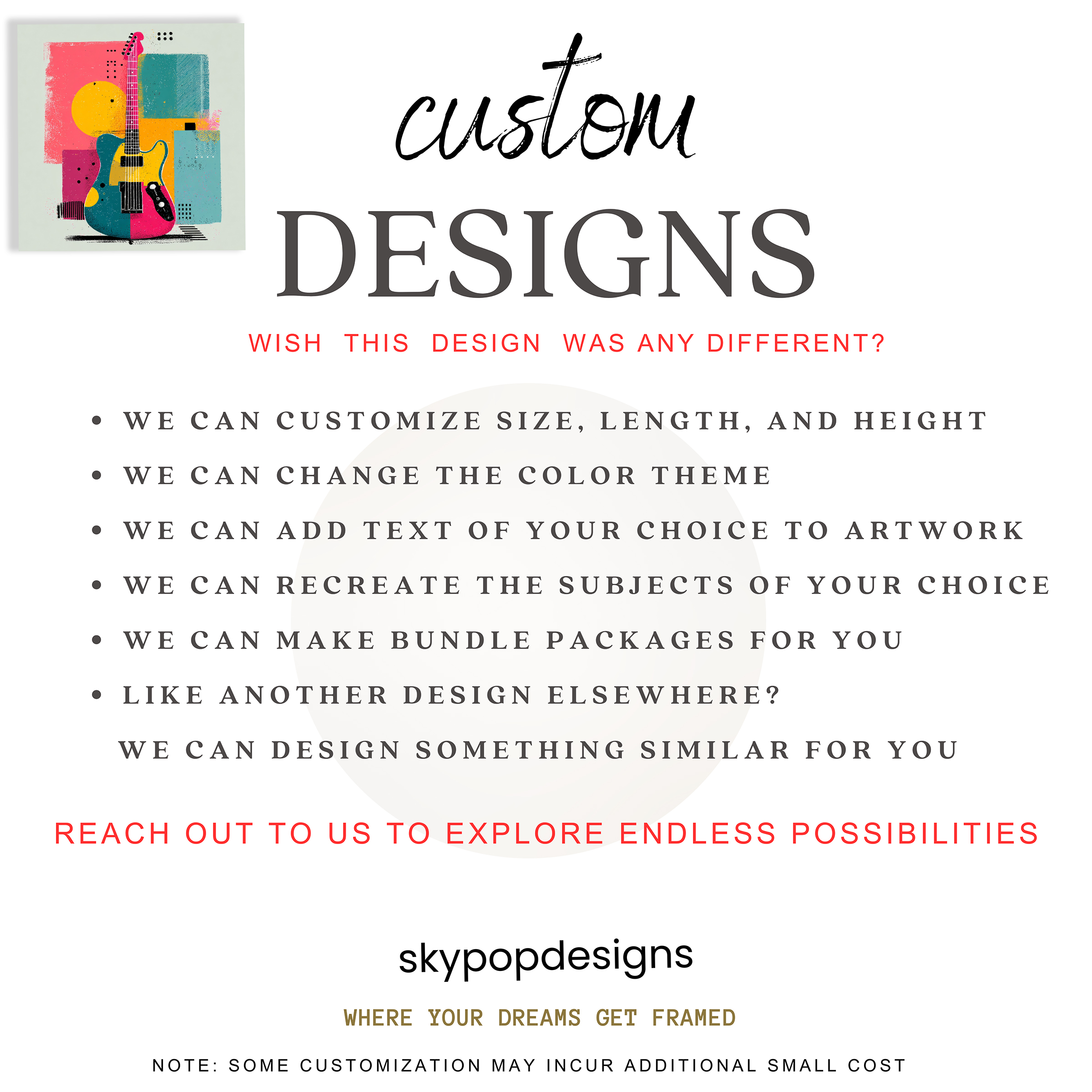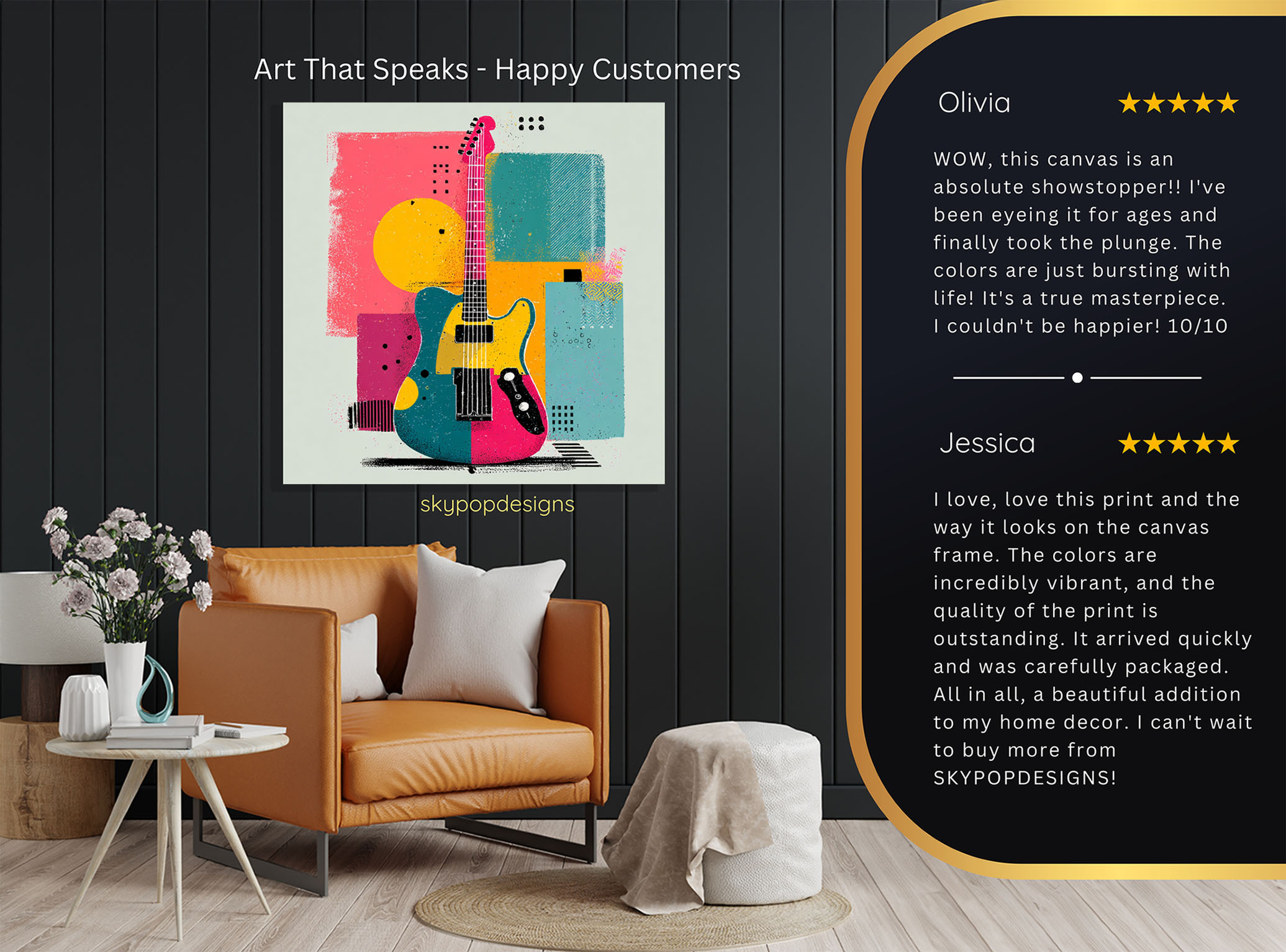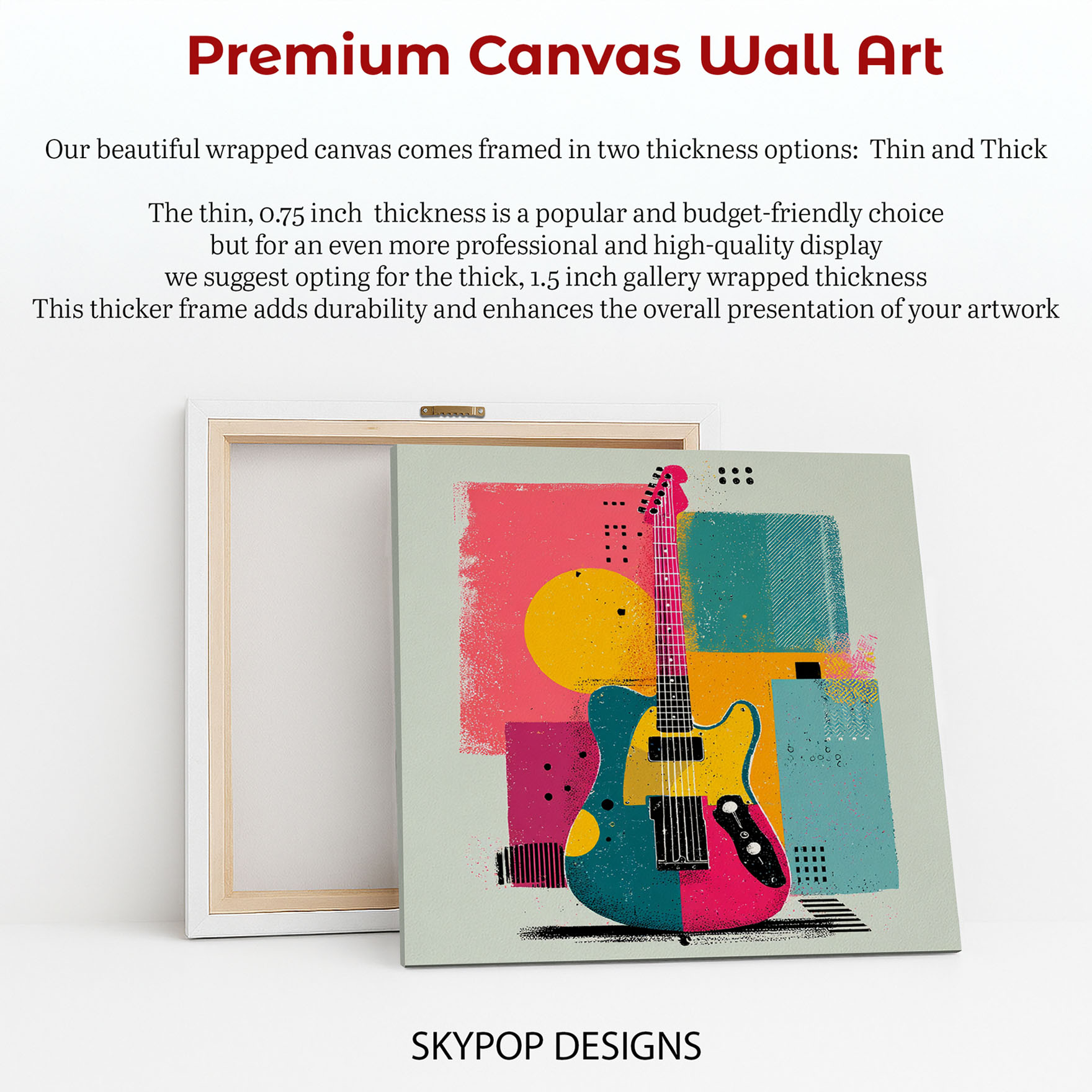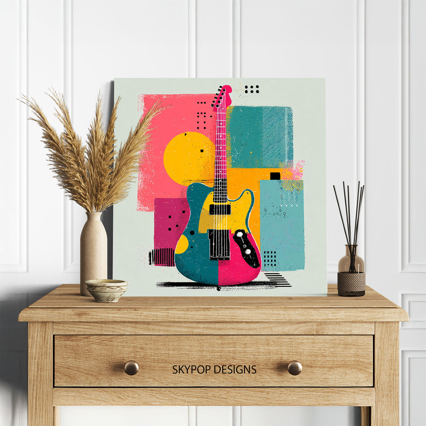 Ignite your passion for music with this vibrant electric guitar canvas wall art, a captivating piece that bursts with energy and color. This striking poster or canvas wall art is ideal for transforming any living room, game room, or office into a dynamic creative hub. The bold fusion of yellow, teal, and pink creates a visually stunning statement, perfect for modern and bohemian decor styles. This electrifying artwork celebrates the iconic electric guitar, a symbol of rock and roll and musical expression. High-quality printing ensures the intricate details and textured elements of this music art are showcased beautifully, making it a true focal point. Whether you’re a seasoned musician or an avid music lover, this canvas wall art will inspire your space and spark conversations. Its versatile design complements mid-century modern aesthetics while adding a splash of contemporary flair. Gift this unique poster or canvas wall art to friends and family for birthdays, holidays, or housewarmings, bringing joy and vibrant energy to their homes. Elevate your home decor with this eye-catching piece that embodies the spirit of innovation and artistic freedom in music. Make a statement in any music room or creative workspace with this pop art masterpiece that truly rocks. Bring the electrifying sound and visual excitement of music into your everyday life with this stunning electric guitar canvas art.