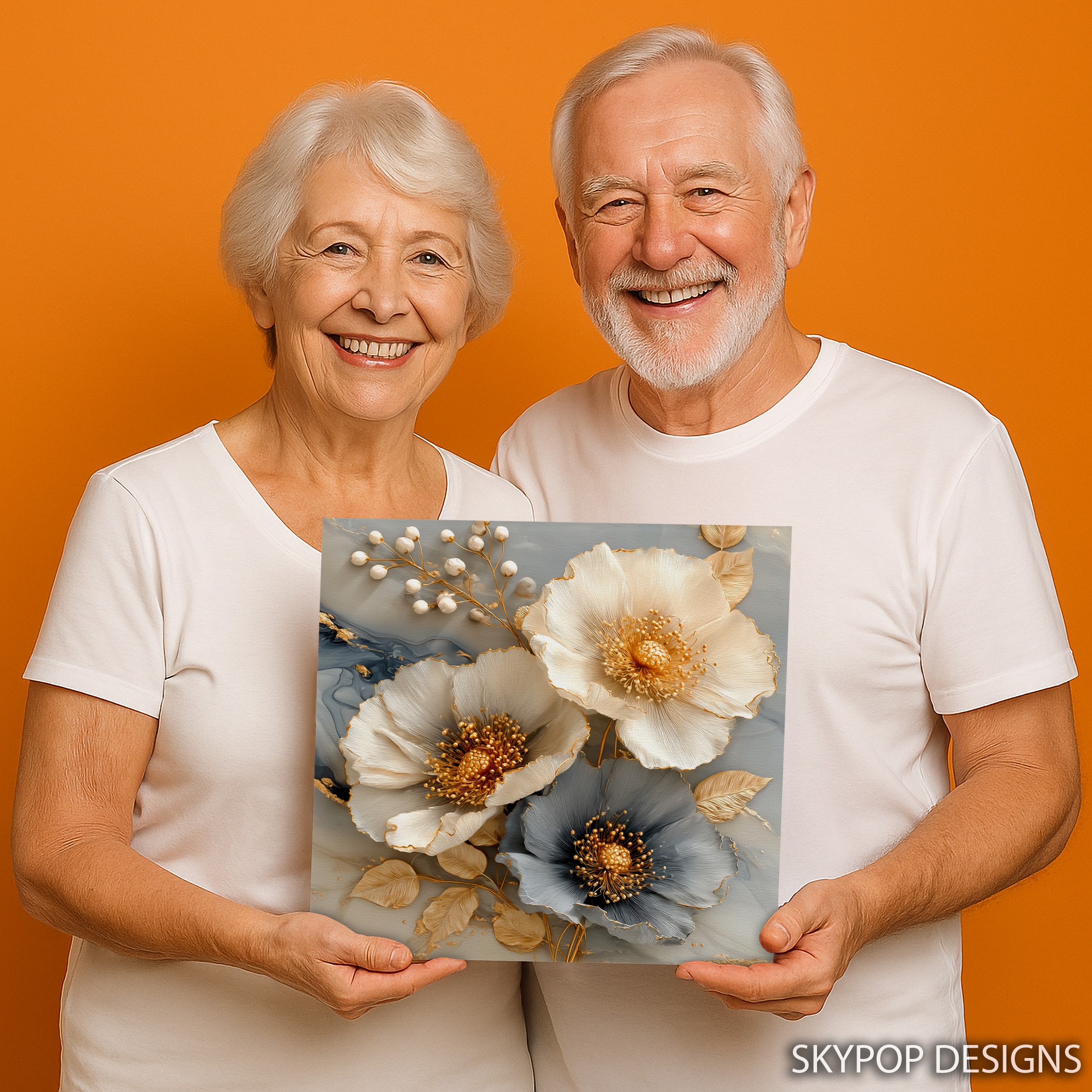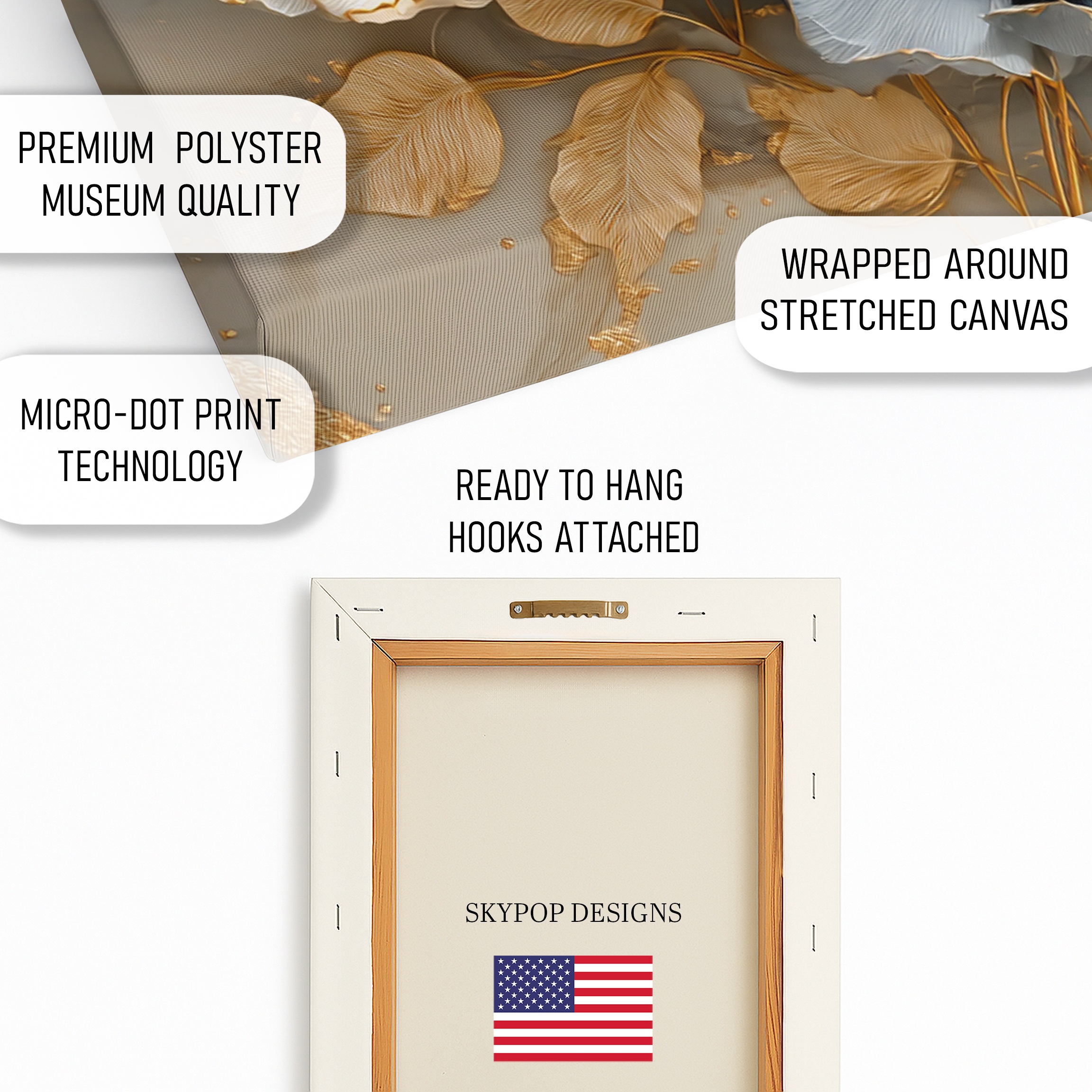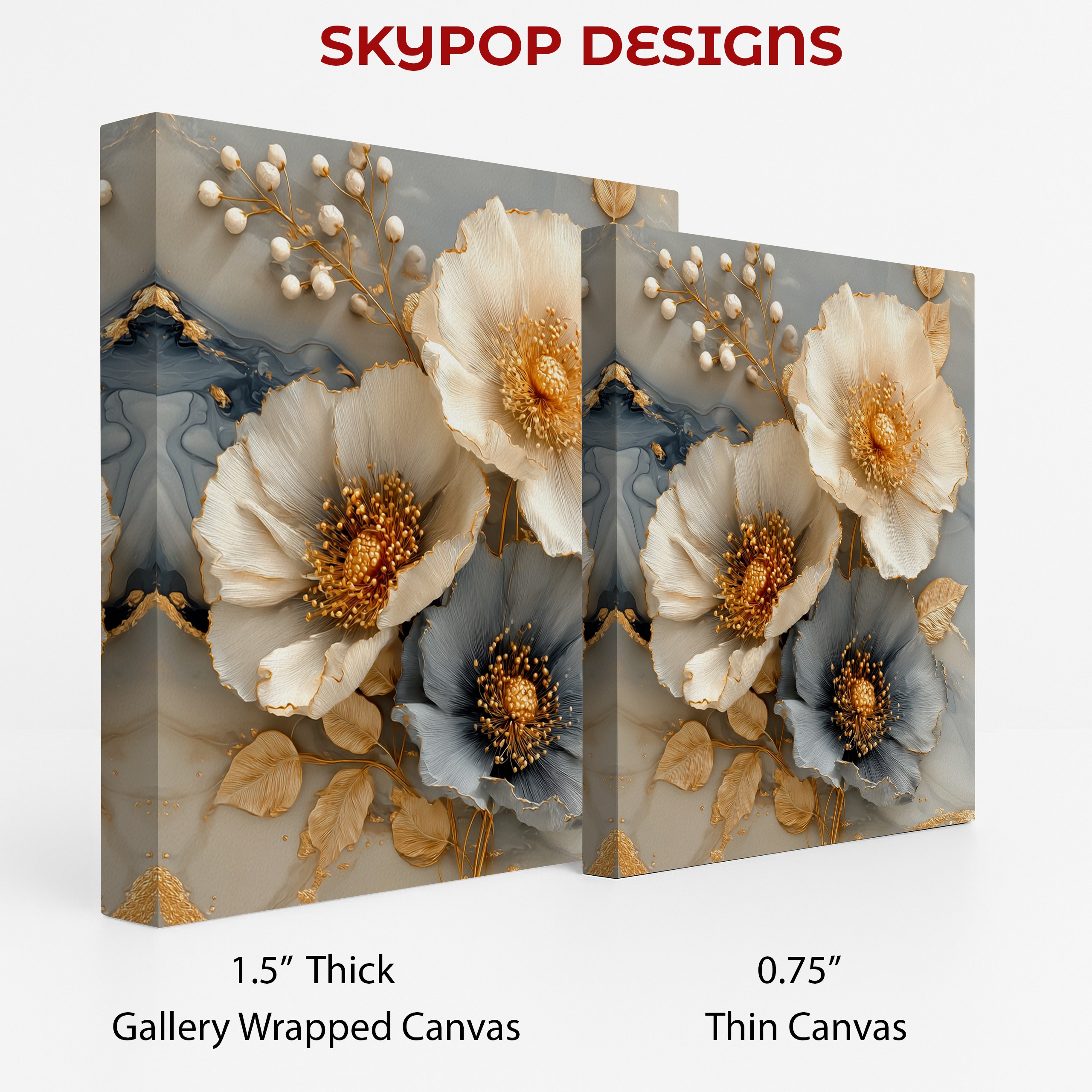 Elevate your space with this stunning floral canvas wall art, featuring exquisite white and gold blooms against a soothing grey background. This captivating piece transforms any room with its modern elegance and timeless appeal. Perfect for contemporary living rooms or chic bedrooms, this poster seamlessly blends nature-inspired beauty with sleek, minimalist design. The delicate petals and intricate details of each flower are rendered in striking clarity, creating a focal point that draws the eye and sparks conversation. Ideal for those seeking to add a touch of glamour to their home decor, this canvas wall art brings a sense of sophistication and serenity to any space. The soft color palette of whites, golds, and greys creates a calming atmosphere, while the subtle blue accents add depth and interest. Whether displayed in a dining room to enhance dinner parties or in a home office to inspire creativity, this versatile piece adapts beautifully to various interior styles. The high-quality printing ensures every brushstroke and texture is captured, making this artwork a lasting investment in your home’s aesthetic. Transform your walls today with this breathtaking floral canvas, and experience the joy of bringing nature’s elegance into your everyday life.