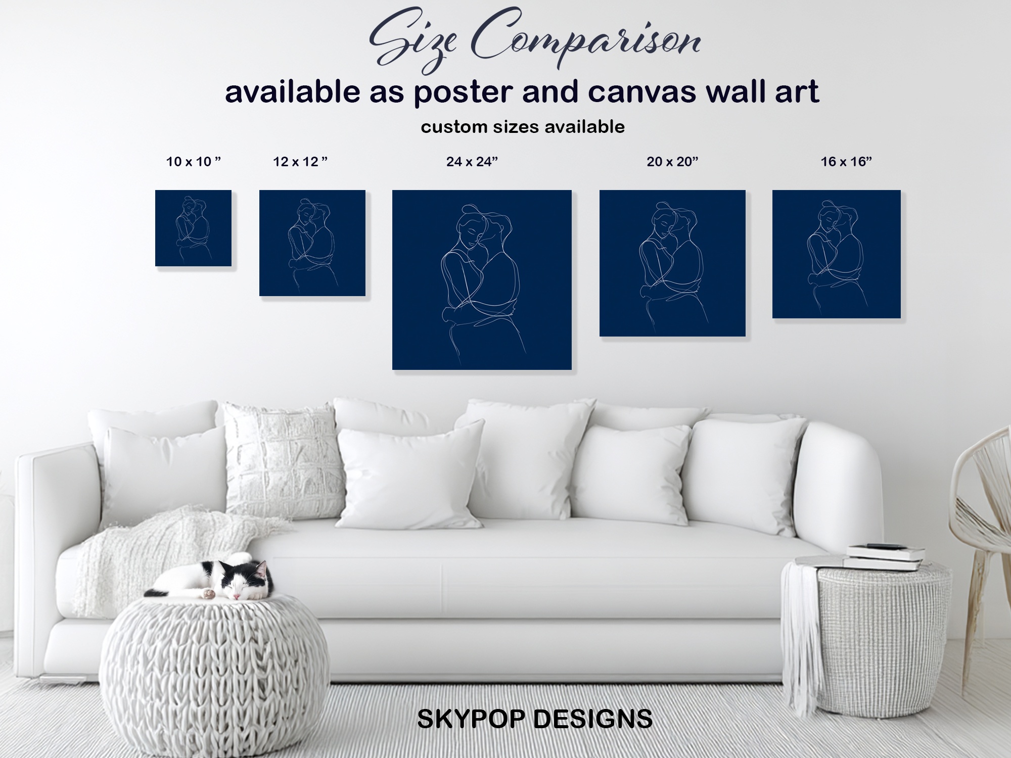Elegant Line Drawing Art, Canvas or Poster, Minimalism Modern Decor, Bedroom Living Room Office Bathroom Wall Art, Blue and White