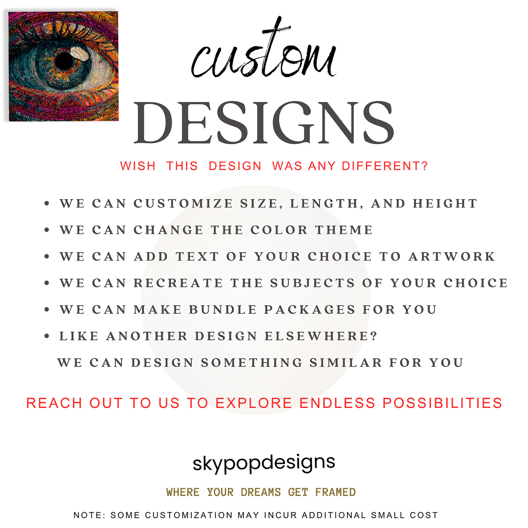 At SKYPOPDESIGNS, we specialize in high-quality canvas and poster prints designed to bring sophistication and style to your space. Please note that our designs are not created with 3D textures or as original oil, acrylic, or watercolor paintings; they are instead HD reproductions of original artwork. This approach allows us to offer these visually stunning pieces at competitive prices, ensuring you receive top-tier, maintenance-free art that’s easy to enjoy.