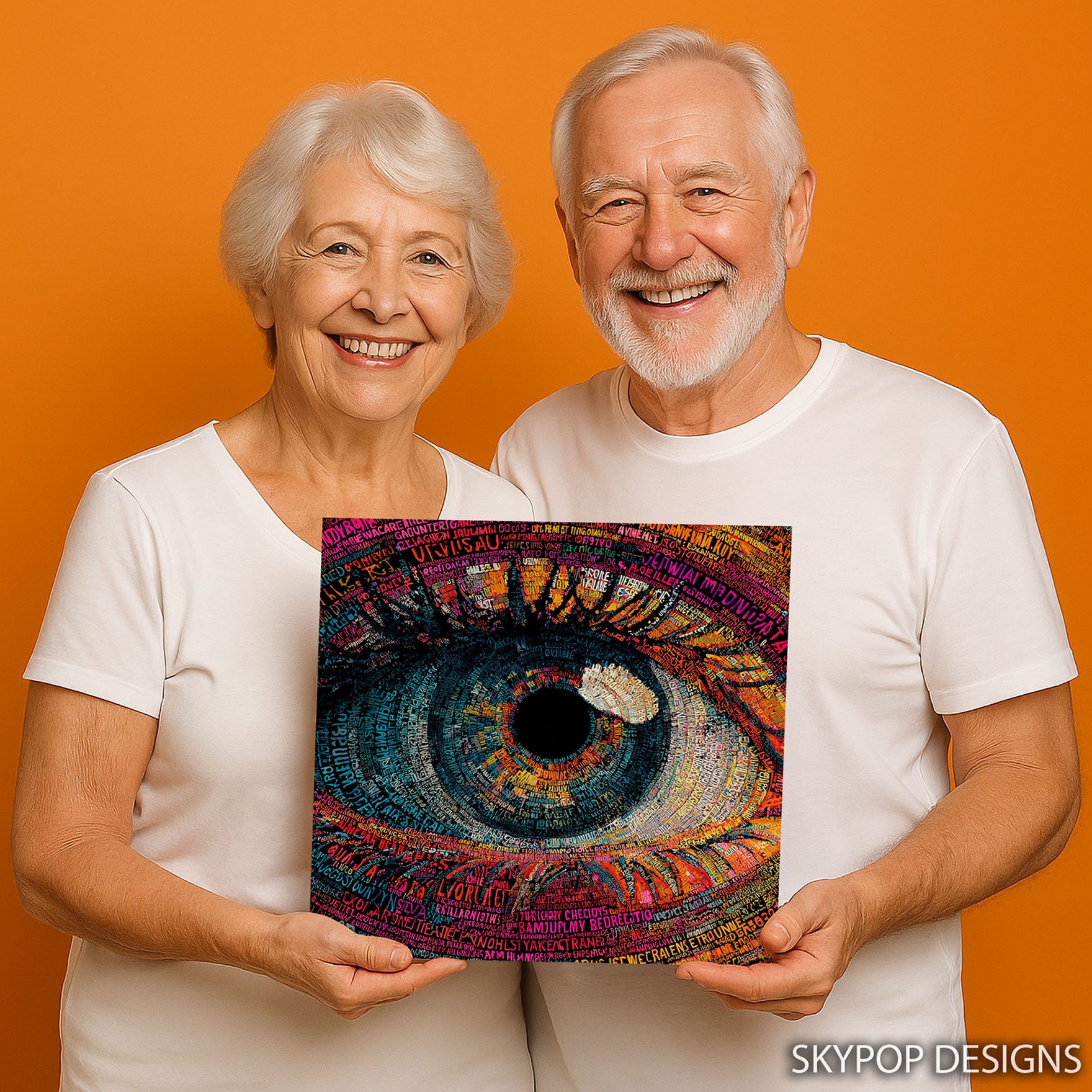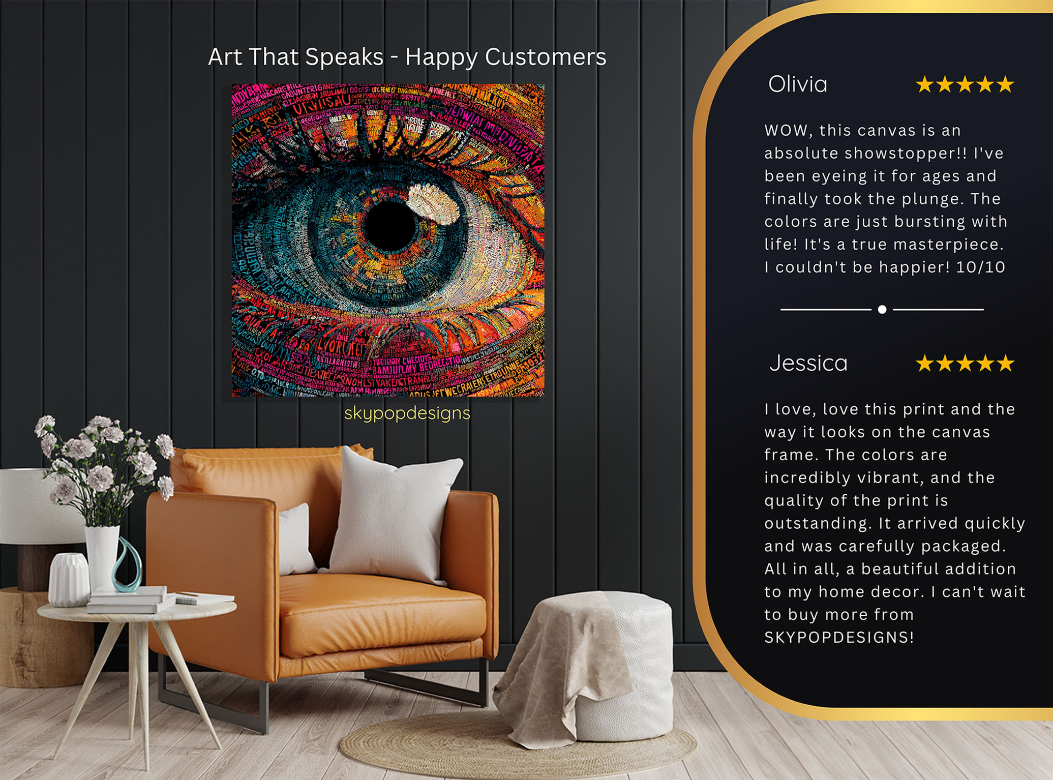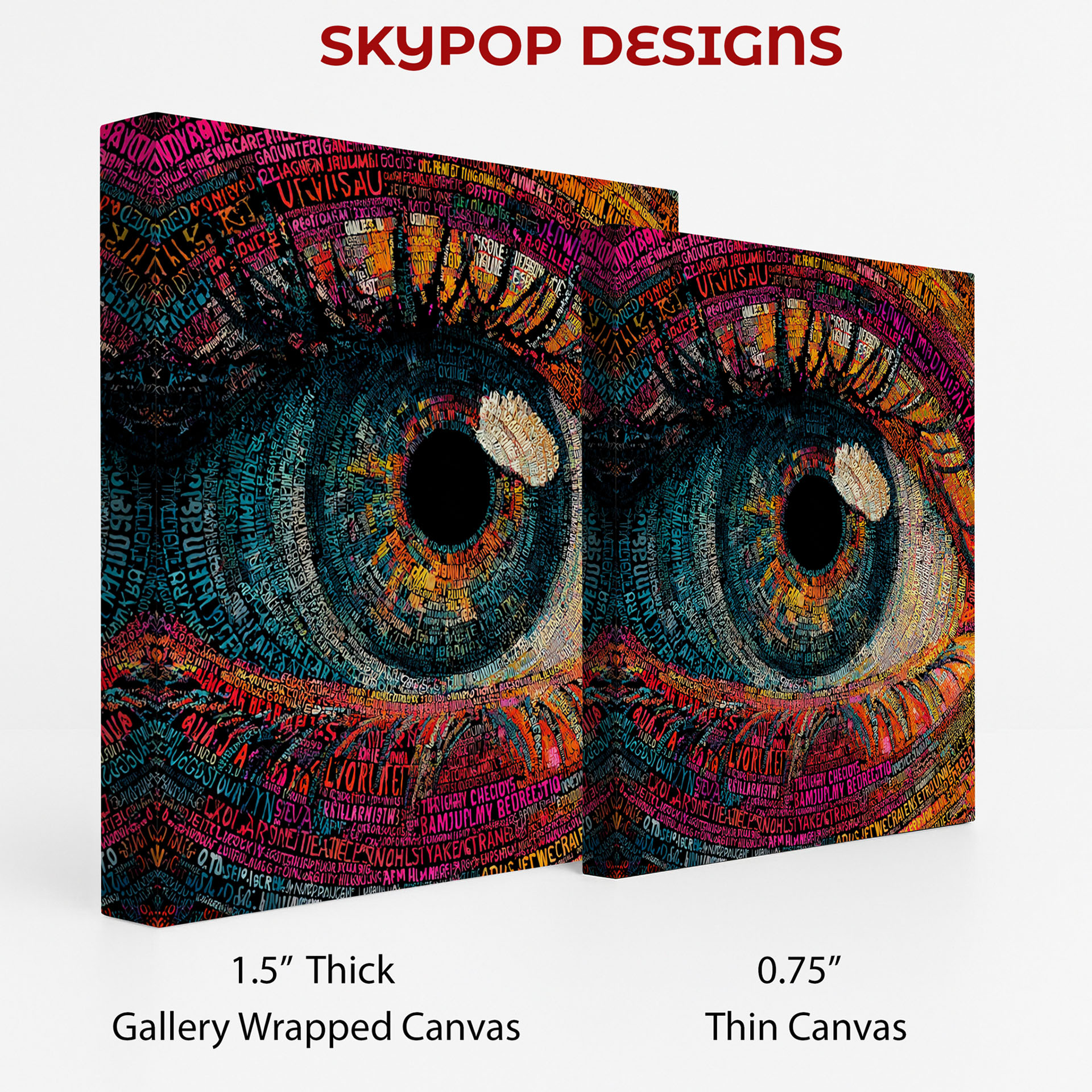 Transform your space with this captivating eye canvas wall art, a stunning piece of abstract contemporary art constructed entirely from words. This unique word art poster or canvas wall art is perfect for adding a bold, modern statement to any room. The intricate design and vibrant multicolor palette create a striking focal point that draws the viewer in, symbolizing knowledge and perception. Ideal for contemporary and modern decor styles, this eye artwork also complements industrial or street art-themed spaces. The rich, deep blues and fiery oranges evoke a sense of energy and intensity, making this poster a conversation starter. High-quality printing ensures every letter and color is sharp and vivid, bringing this intricate eye canvas art to life. This versatile wall art is perfect for living rooms needing an artistic upgrade or offices seeking inspiration. It also makes an exceptional gift for art lovers, creatives, or anyone who appreciates unique wall decor. The sheer detail in this piece means you’ll discover new elements with every glance, ensuring it remains a captivating addition to your home. Elevate your interior design with this powerful and thought-provoking word art canvas wall art today. Showcase your appreciation for innovative art and sophisticated design with this eye-catching piece. Add a dynamic and intellectual flair to your walls with this exceptional canvas art.