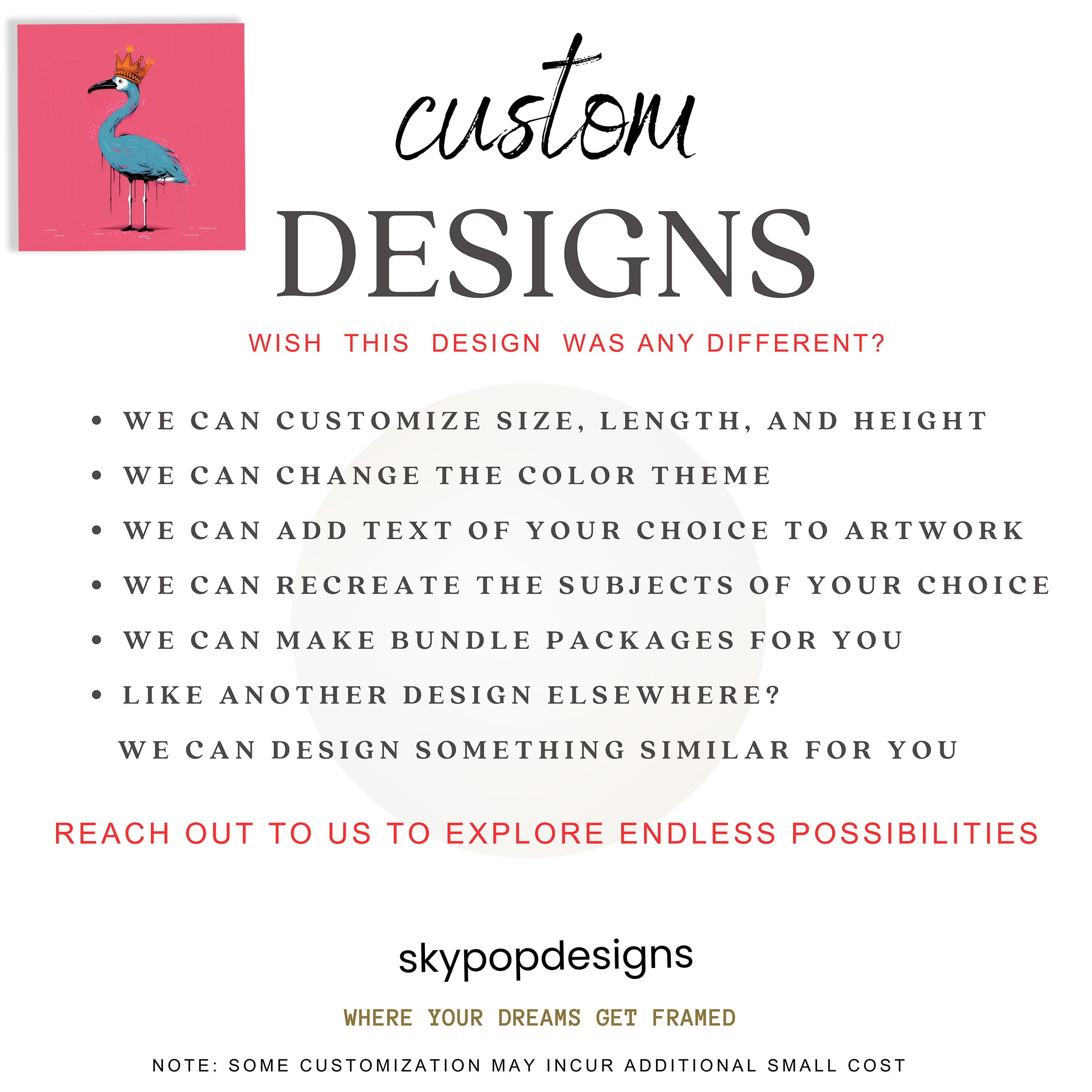 At SKYPOPDESIGNS, we specialize in high-quality canvas and poster prints designed to bring sophistication and style to your space. Please note that our designs are not created with 3D textures or as original oil, acrylic, or watercolor paintings; they are instead HD reproductions of original artwork. This approach allows us to offer these visually stunning pieces at competitive prices, ensuring you receive top-tier, maintenance-free art that’s easy to enjoy.