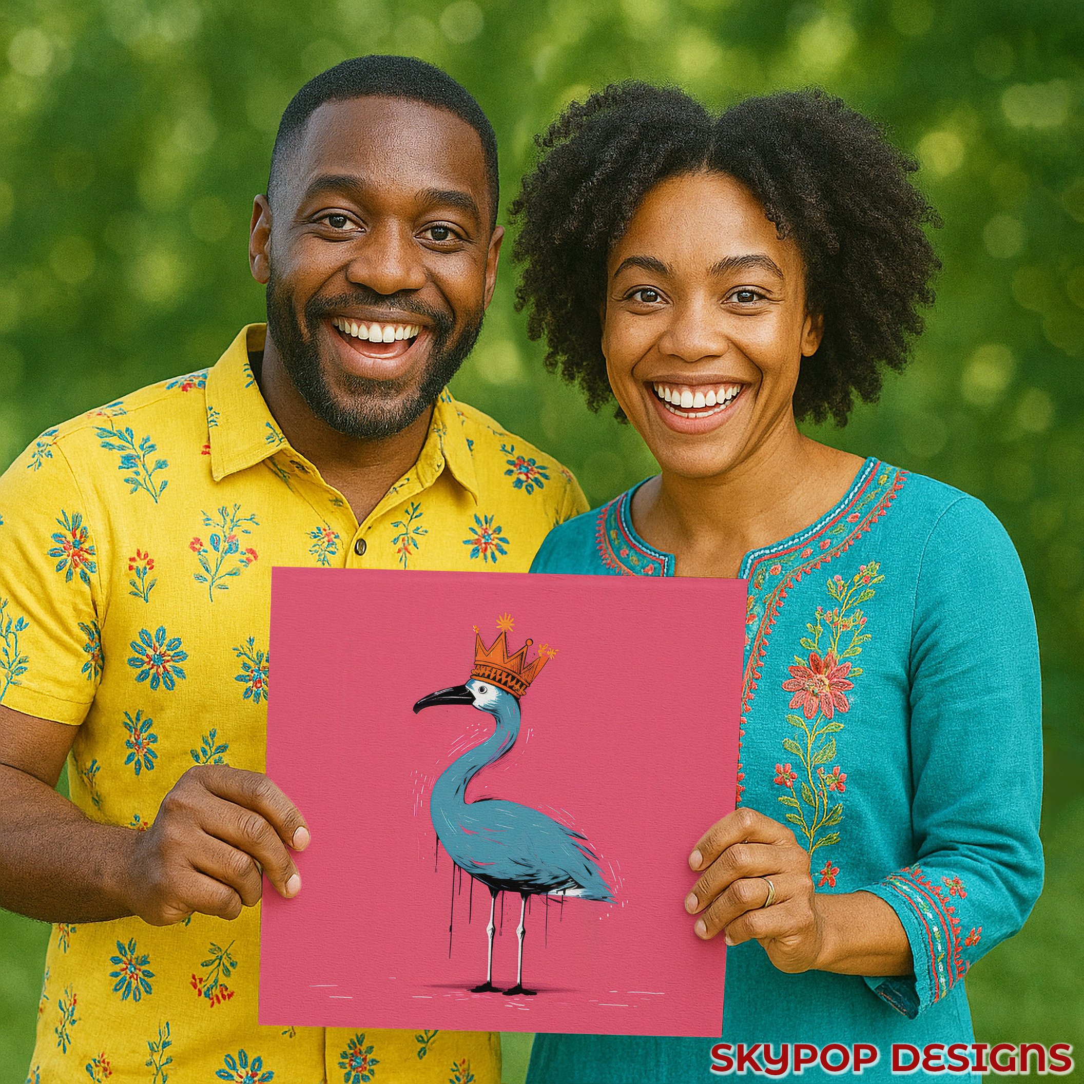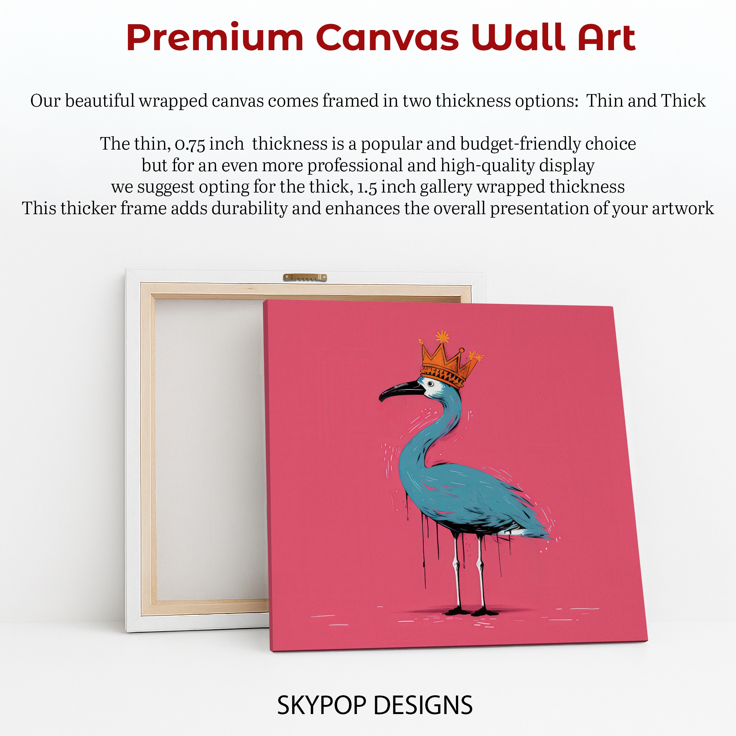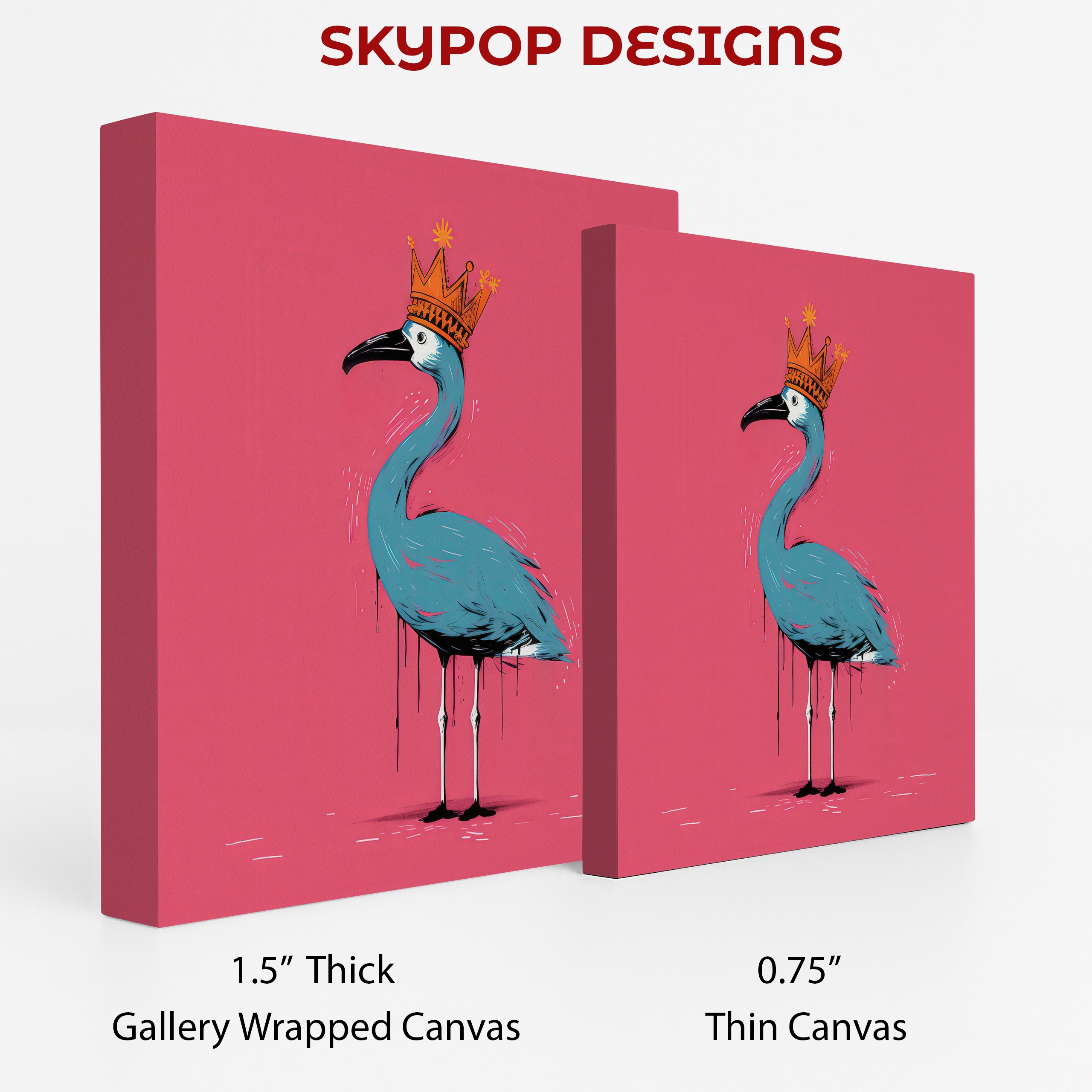 Transform your space with this striking flamingo canvas wall art, a vibrant centerpiece that captures attention. This unique poster features a regal flamingo adorned with an ornate golden crown, set against a bold pink backdrop, instantly elevating your home decor. The contemporary art style, with its graphic lines and playful drips, brings a modern, urban edge to any room, making it perfect for living rooms, bedrooms, or even a stylish office. As a piece of pop art, this canvas wall art showcases a bold color palette and a captivating subject, creating a fun and impactful statement. The striking combination of electric pink and the majestic flamingo in gold offers a mood-boosting visual experience, embodying confidence and flair. This versatile artwork is ideal for bohemian or contemporary decor schemes, adding a touch of personality and artistic appeal. It serves as a fantastic gift for birthdays, housewarmings, or any occasion for someone who loves unique animal art or vibrant wall decor. The high-quality print ensures the rich colors and crisp details of this poster pop, creating a captivating focal point. Add a touch of playful royalty to your walls with this eye-catching flamingo canvas art that is sure to spark conversation. Elevate your wall decor with this dynamic piece that celebrates individuality and bold design choices. Make a statement and infuse your space with color and character today.