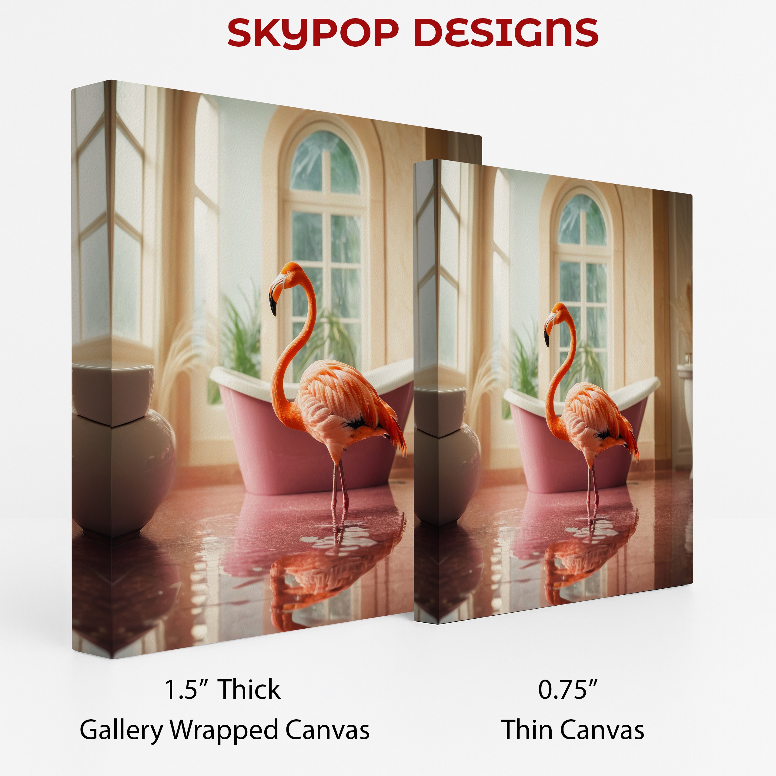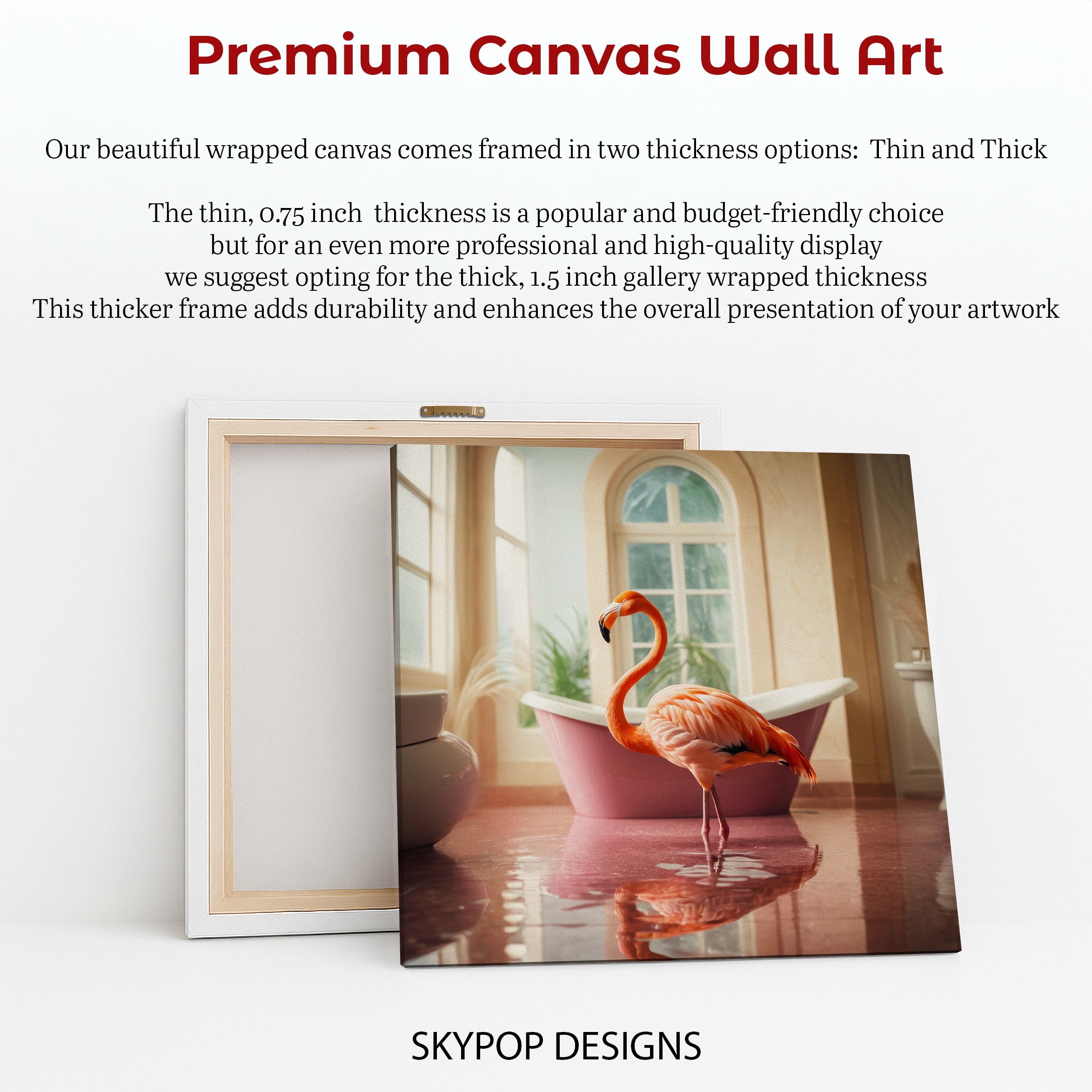 Keywords: Flamingo Wall Art, Canvas Print, Tropical Bird Art, Contemporary Art, Nature Art, Animal Art, Bohemian Decor, Modern Decor, Glam Decor, Bathroom Art, Living Room Art, Bedroom Decor, Sunroom Art, Pink Art, Orange Art, Beige Art, Multicolor Art, Flamingo Bath Time, Exotic Elegance, Playful Charm, Joyful Decor, Relaxing Atmosphere, Housewarming Gift, Birthday Gift, Unique Artwork, High-Quality Canvas, Home Decor, Wall Decor, Inspirational Art, Whimsical Decor