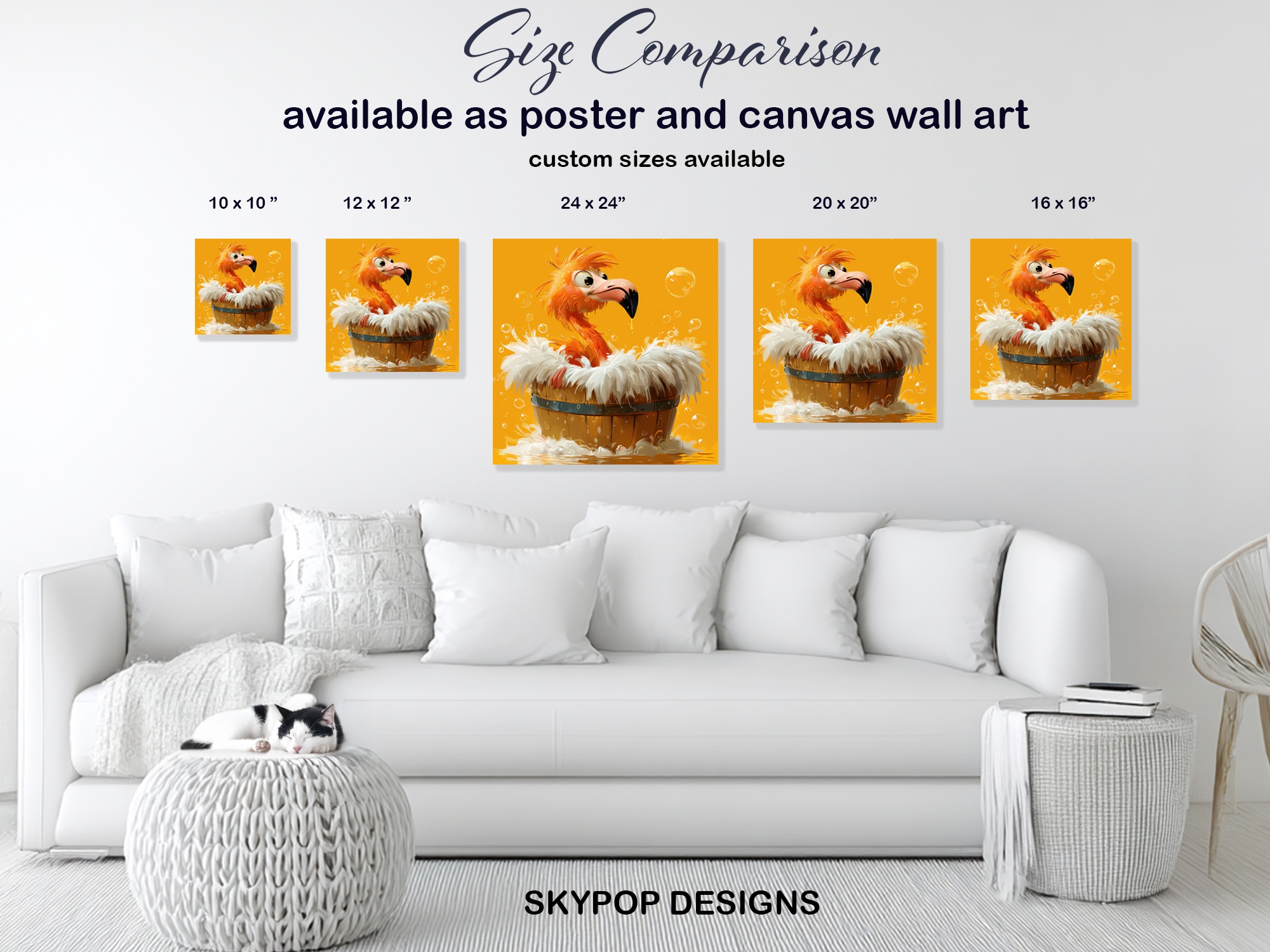Keywords: Flamingo Art, Flamingo Wall Art, Bubble Bath Art, Whimsical Wall Art, Animal Art, Contemporary Art, Bohemian Decor, Farmhouse Decor, Modern Decor, Children’s Room Art, Bathroom Art, Living Room Art, Nursery Decor, Yellow Art, Orange Art, Brown Art, Multicolor Art, Flamingo Poster, Canvas Wall Art, Playful Animal Art, Vibrant Art, Joyful Atmosphere, Home Decor, Wall Decor, Gift Idea, Birthday Gift, Housewarming Gift, Canvas Print, Beach Art, Tropical Decor