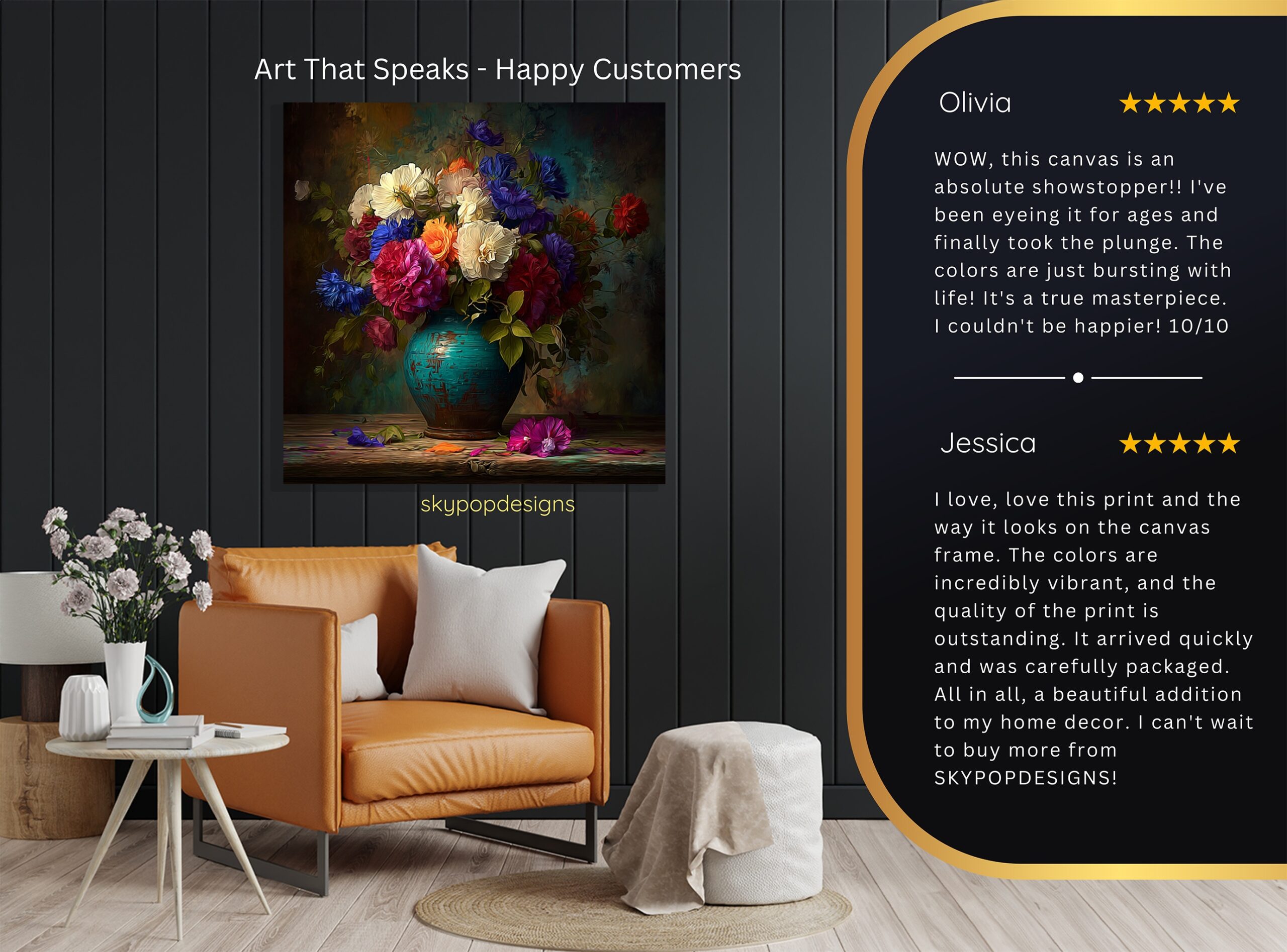 At SKYPOPDESIGNS, we specialize in high-quality canvas and poster prints designed to bring sophistication and style to your space. Please note that our designs are not created with 3D textures or as original oil, acrylic, or watercolor paintings; they are instead HD reproductions of original artwork. This approach allows us to offer these visually stunning pieces at competitive prices, ensuring you receive top-tier, maintenance-free art that’s easy to enjoy.