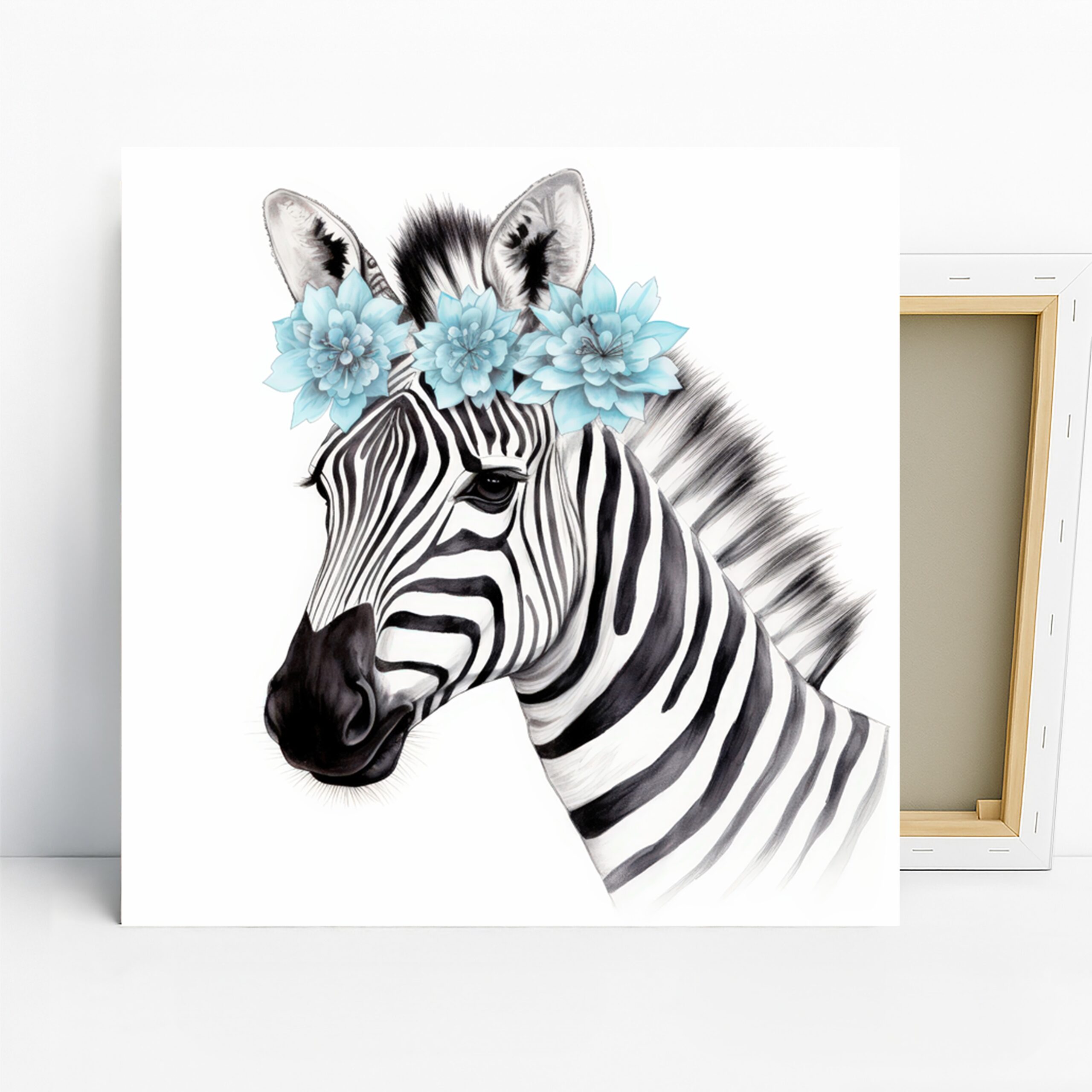 Elevate your home with this stunning floral zebra canvas wall art featuring a captivating zebra adorned with a crown of delicate blue flowers. This eye-catching poster or canvas wall art is perfect for transforming any living room or bedroom into a stylish sanctuary. The blend of bold black and white stripes with soft blue floral accents creates a visually striking composition that adds a touch of whimsical elegance to your decor. This unique animal art piece is ideal for bohemian and contemporary interior styles, making it a versatile addition to your wall collection. Showcase your love for nature and animals with this high-quality canvas print that brings a vibrant, yet serene, atmosphere to your space. It’s a perfect gift for birthdays, housewarmings, or any occasion, bringing joy and personality to any home. Our canvas wall art is printed on premium materials, ensuring lasting beauty and detail. Whether you are looking to redecorate or find that perfect statement piece, this zebra artwork will undoubtedly be a conversation starter. Surprise a friend or family member with this beautiful poster, a thoughtful present that adds charm and character to their living space. Add a touch of fresh, natural beauty to your walls with this exquisite zebra canvas wall art.Transform your home with this beautiful artwork today.