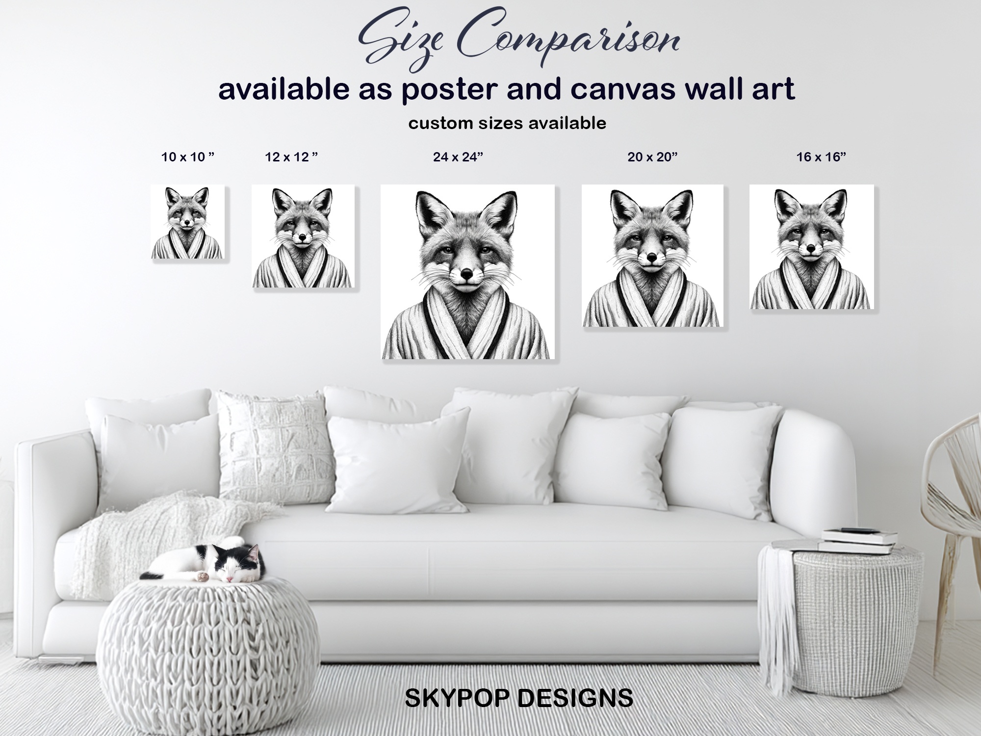 Elevate your home with this striking fox canvas wall art, a true statement piece for any modern interior. This captivating black and white poster showcases a dapper fox dressed in a stylish robe, bringing a touch of unexpected sophistication to your living space. The detailed linework and striking contrast of this animal art piece will transform your room into a conversation starter. Perfect for a minimalist office or a chic entryway, this canvas wall art enhances any decor style with its unique charm. Consider this art a thoughtful gift for any fox lover or someone who appreciates unique wall decor. The monochromatic palette adds a timeless elegance, making this poster versatile for various color schemes. This striking artwork, whether on canvas or as a poster, is ideal for creating a focal point in a contemporary living room or a serene bedroom. Add a touch of refined artistry and character to your home with this exceptional fox wall art. Its clean design and graphic quality make it a standout choice for gallery walls or as a standalone piece. Enhance your surroundings with this eye-catching blend of animal art and contemporary design, perfect for gifting or personal indulgence. Transform your space with this sophisticated and memorable piece today.