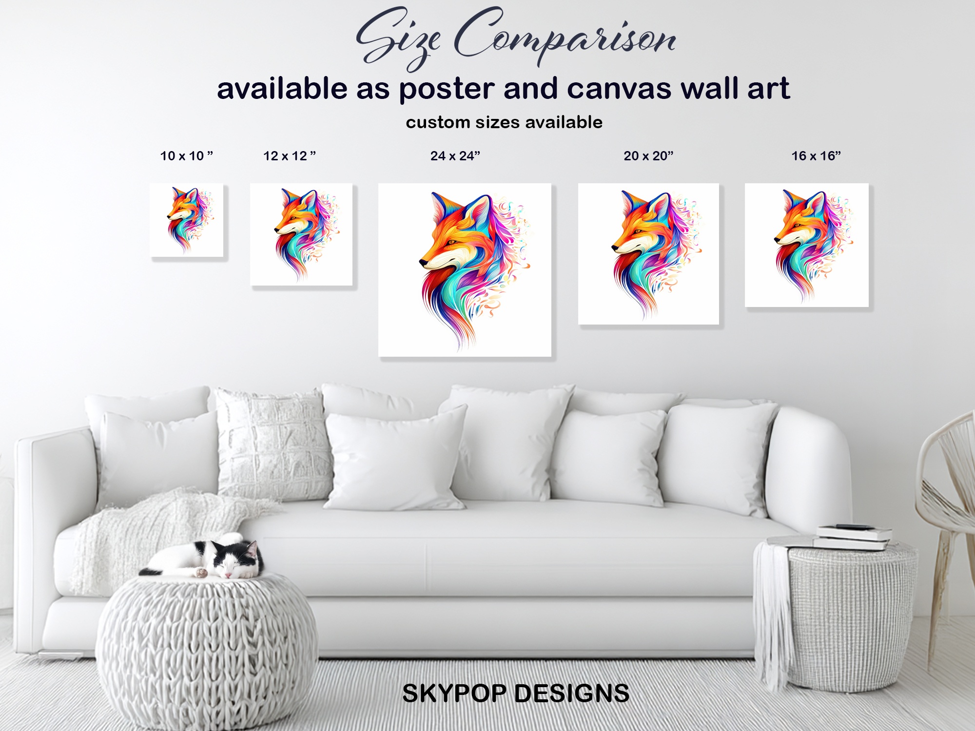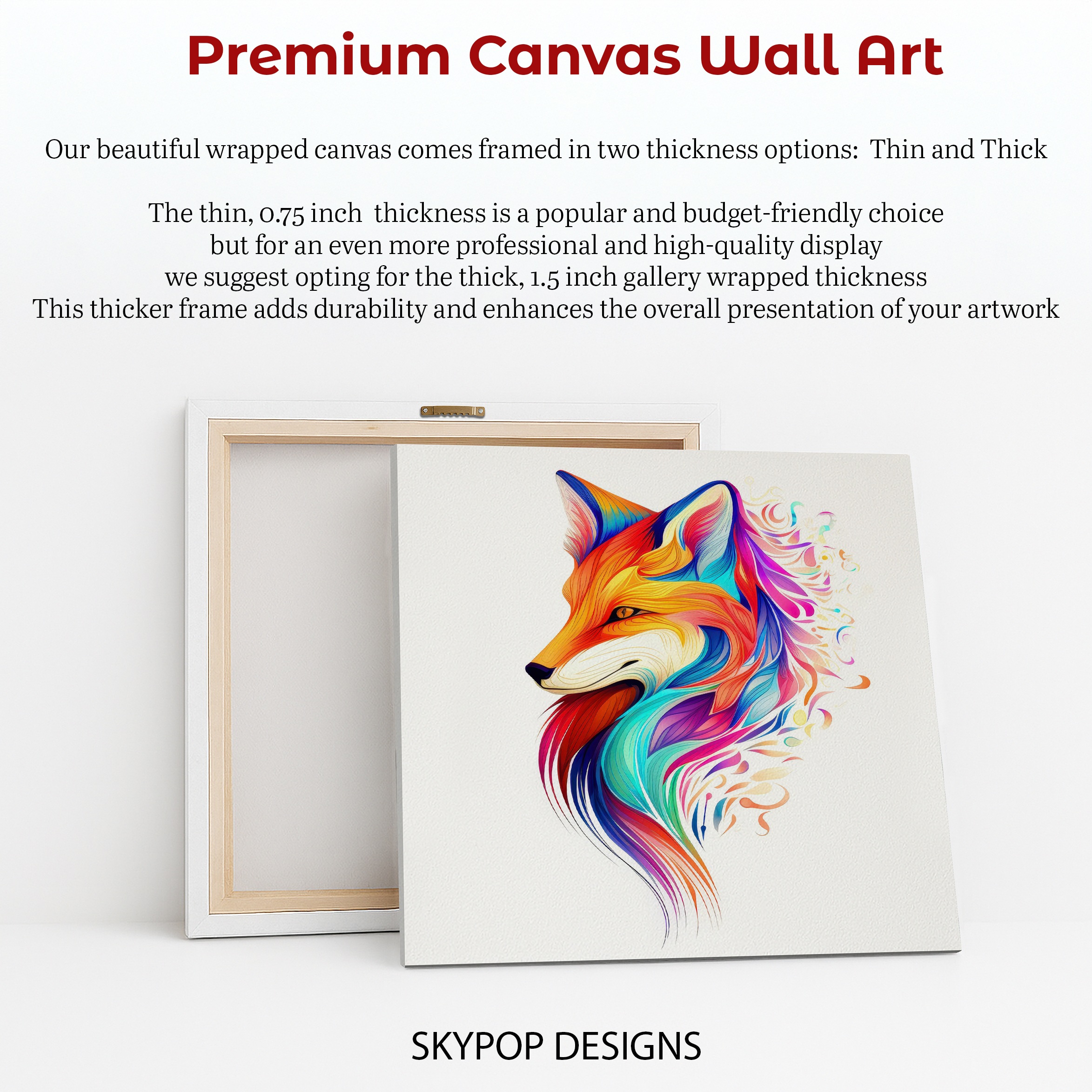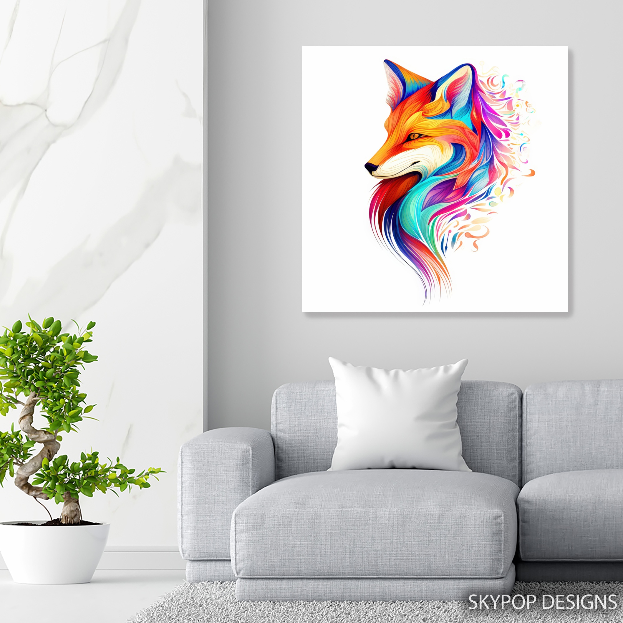 Keywords: fox art, canvas wall art, modern decor, bohemian decor, minimalist decor, living room art, bedroom art, office decor, kitchen art, multicolor art, orange art, blue art, pink art, animal art, nature art, contemporary art, vibrant art, abstract fox, fox spirit art, wall decor, home decor, unique art, gift for animal lovers, birthday gift, housewarming gift, art print, home interior, statement piece, vibrant colors, creative decor