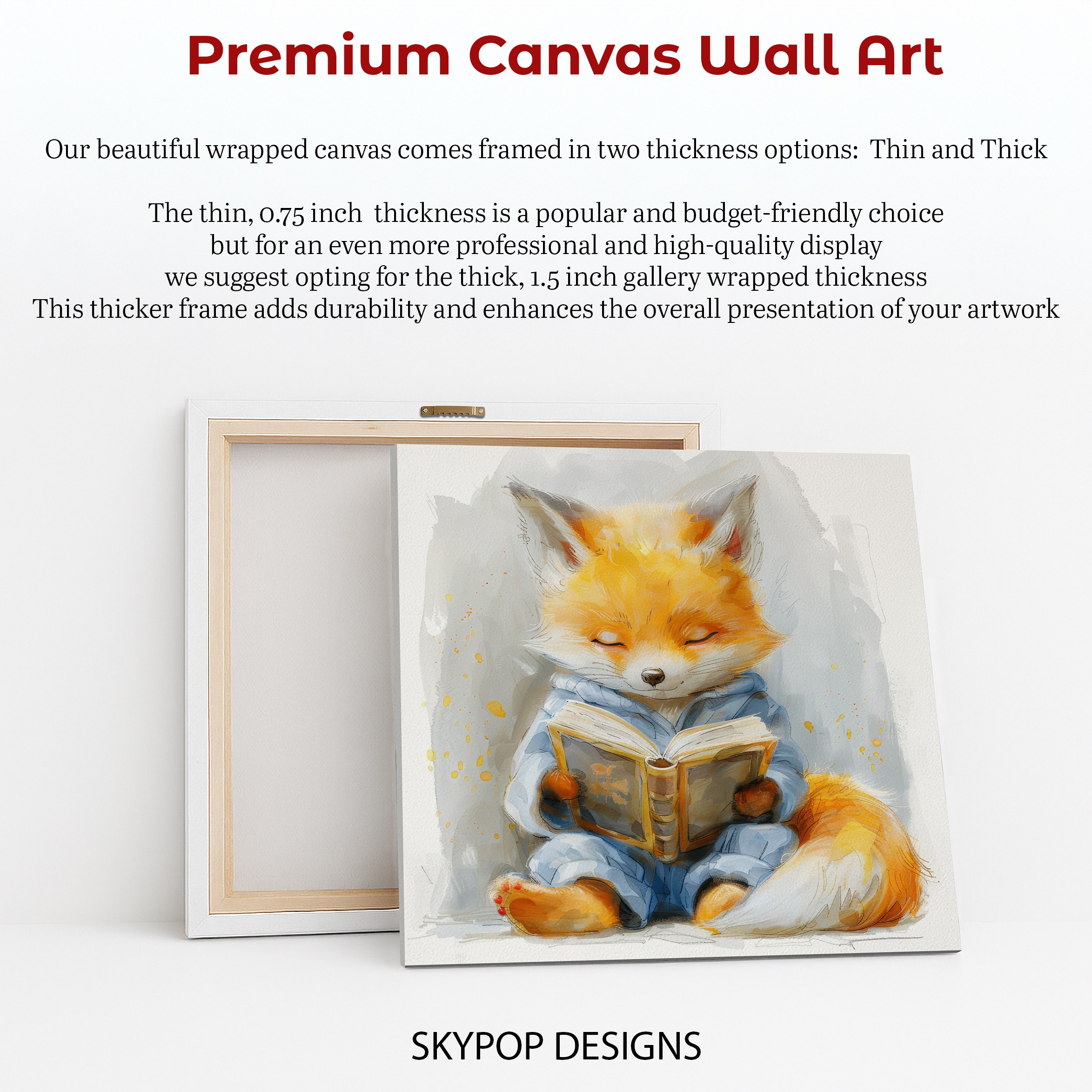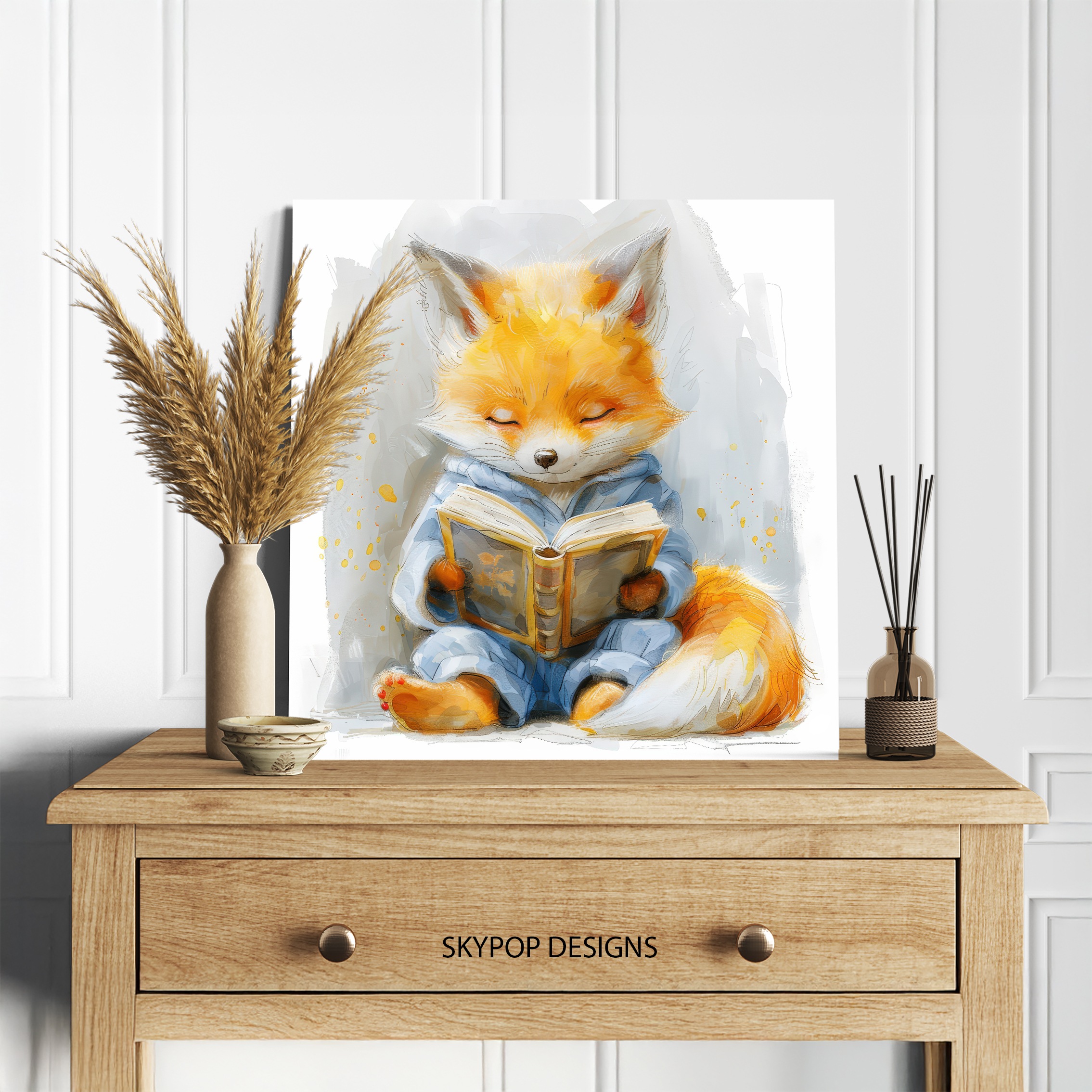 Transform your space with this charming Fox reading canvas wall art, featuring a cozy fox engrossed in a book. The vibrant orange hues and soft blue tones create a captivating and peaceful atmosphere, perfect for bringing warmth to any room. This delightful poster or canvas wall art offers a unique blend of animal art and modern design, making it ideal for children’s rooms, bedrooms, or a living room seeking a touch of whimsy. The minimalist style with subtle artistic brushstrokes enhances the gentle mood, evoking feelings of comfort and tranquility. It is a perfect addition to Scandinavian or modern decor styles, offering a striking yet subtle focal point. Elevate your home with this stunning fox artwork, celebrating the simple joy of reading and adding a pop of color and personality. High-quality printing ensures every detail of this captivating artwork is beautifully showcased. This versatile piece of wall art makes a thoughtful gift for birthdays or housewarmings, bringing a sense of calm and happiness to any occasion. Add a touch of nature’s wonder and a storybook charm to your home decor and transform your walls into a cozy retreat. Brighten your space today with this endearing fox scene.