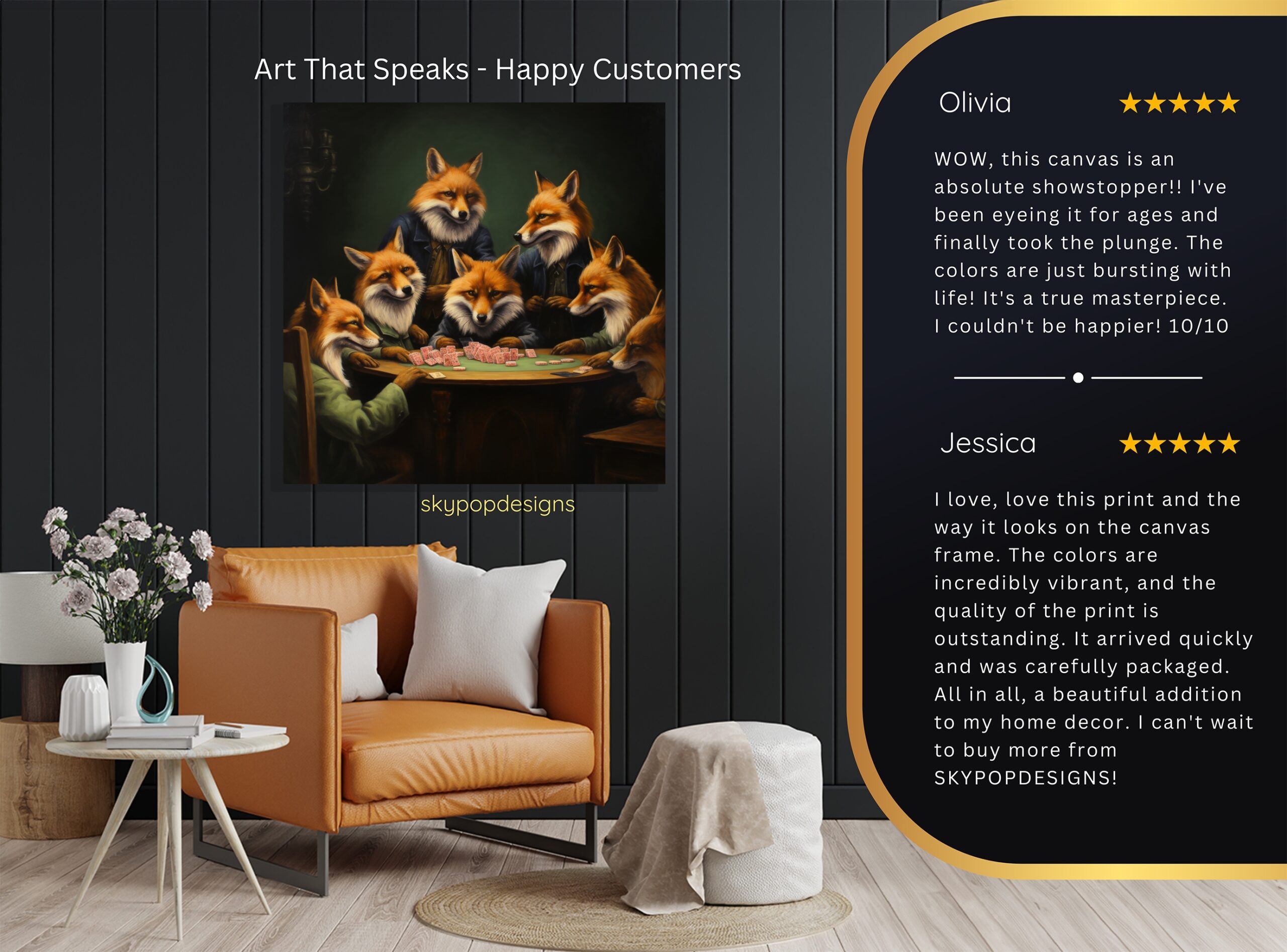 At SKYPOPDESIGNS, we specialize in high-quality canvas and poster prints designed to bring sophistication and style to your space. Please note that our designs are not created with 3D textures or as original oil, acrylic, or watercolor paintings; they are instead HD reproductions of original artwork. This approach allows us to offer these visually stunning pieces at competitive prices, ensuring you receive top-tier, maintenance-free art that’s easy to enjoy.