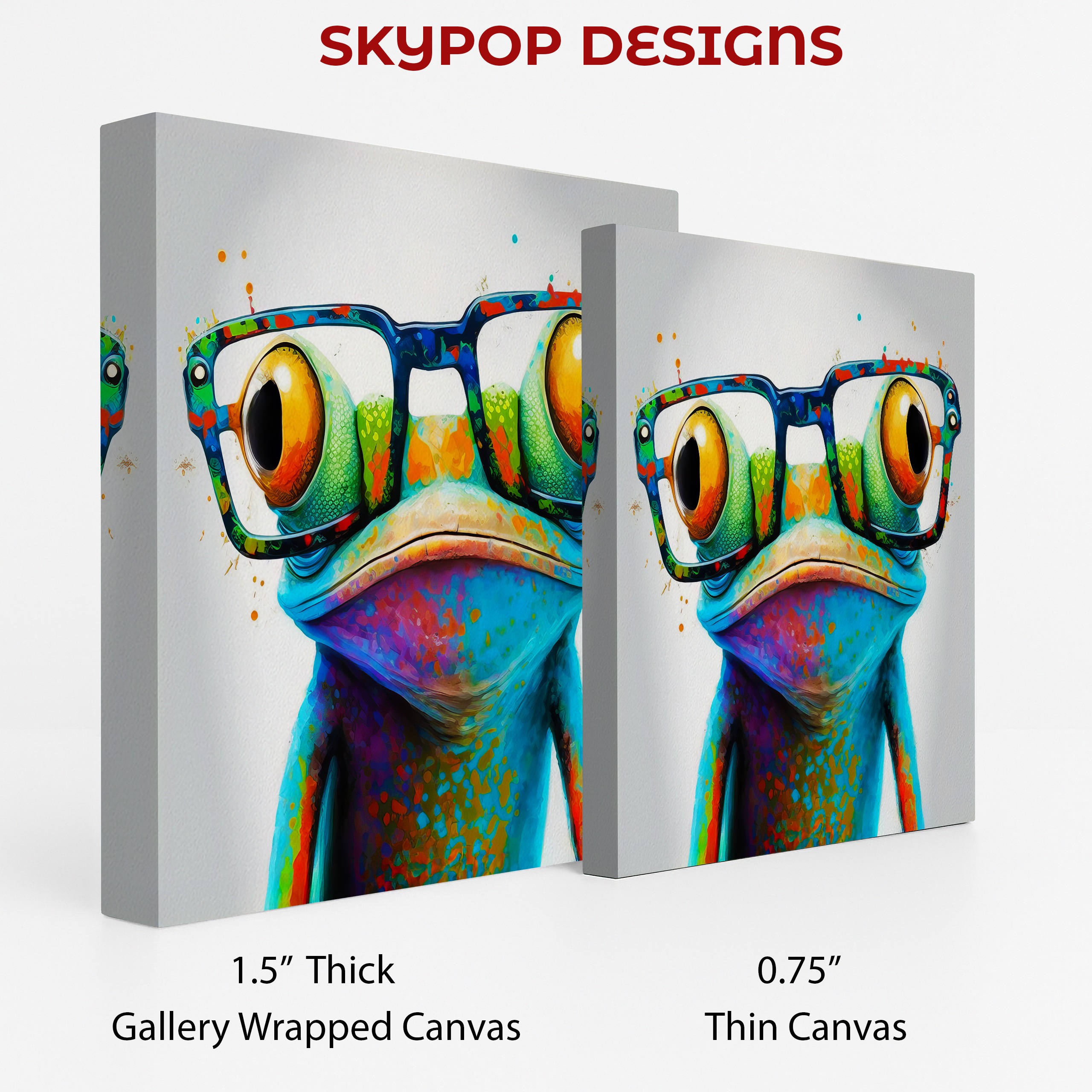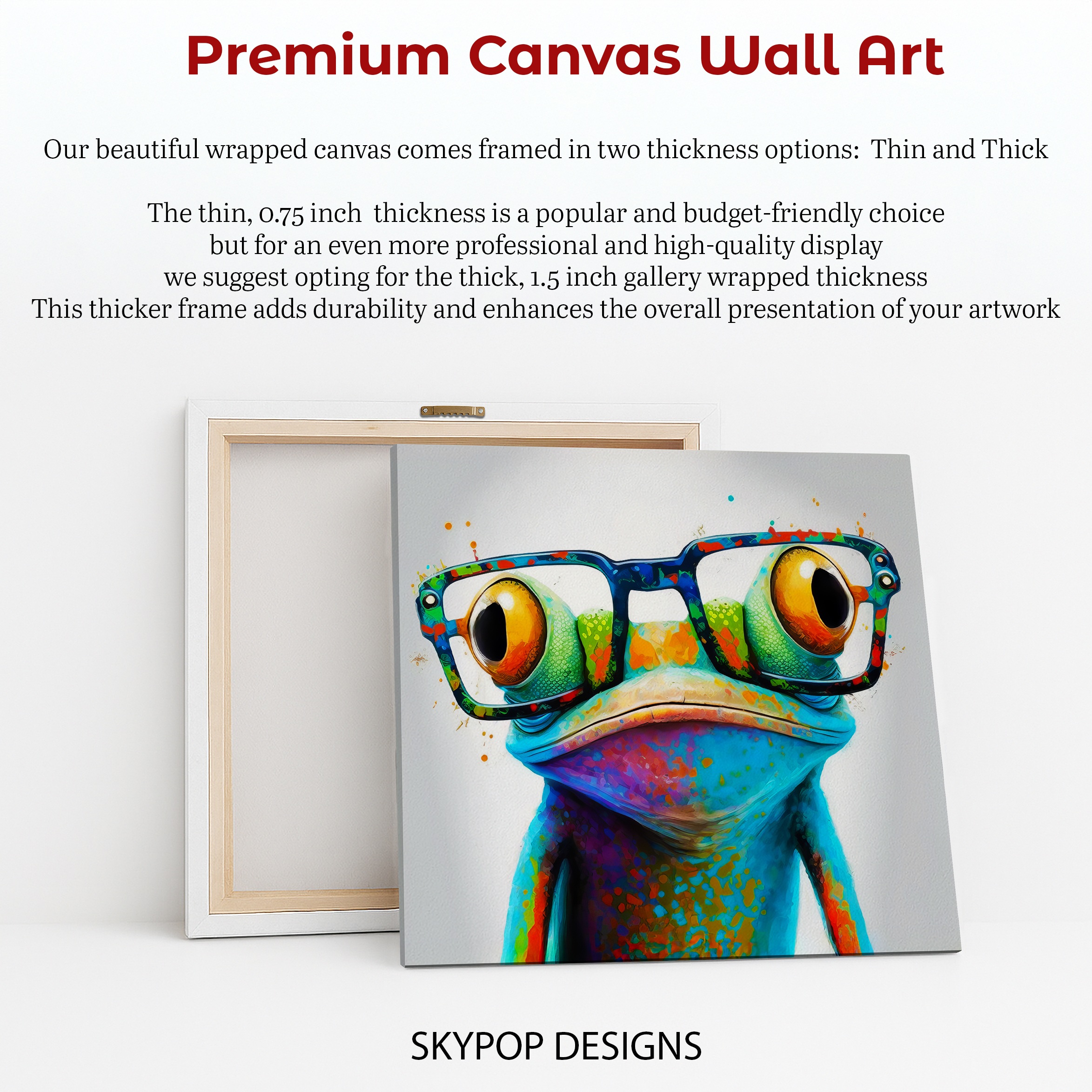 Keywords: frog art, canvas wall art, nerdy art, whimsical art, pop art, modern decor, bohemian decor, contemporary art, living room art, office art, kids room art, multicolor art, teal art, orange art, blue art, animal wall art, unique wall art, quirky art, statement piece, home decor, decorative art, art print, wall decor, gift for frog lover, vibrant art, cheerful art, fun art, personality art, eye-catching art, artful decor