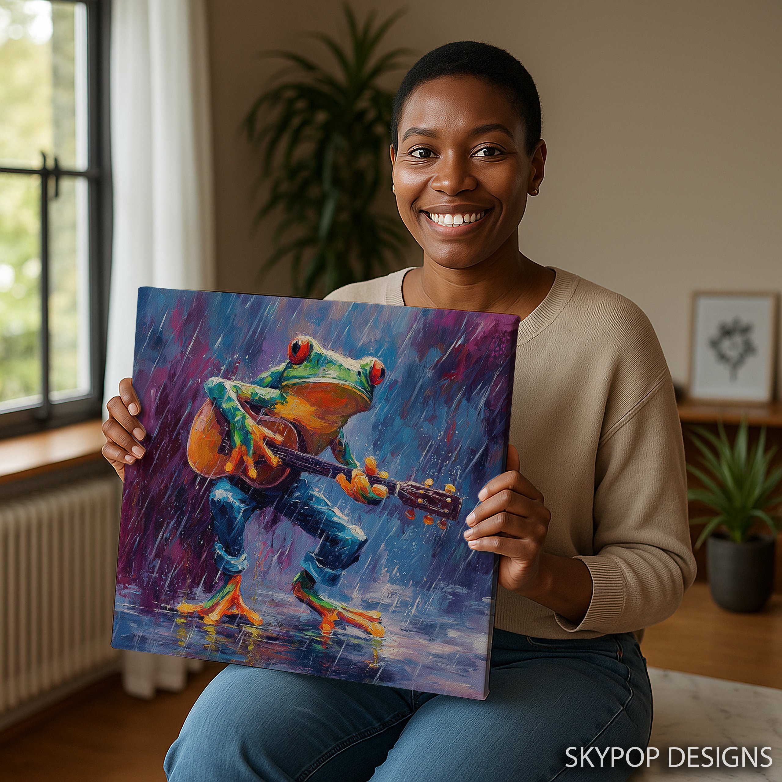 Keywords: Guitar Frog Art, Frog Wall Art, Animal Art, Animal Poster, Canvas Wall Art, Blue Wall Art, Multicolor Art, Purple Art, Green Art, Contemporary Art, Whimsical Art, Bohemian Decor, Modern Decor, Living Room Art, Children’s Room Decor, Game Room Poster, Bar Decor, Music Lover Gift, Unique Wall Art, Frog Poster, Rain Art, Expressive Brushstrokes, Playful Art, Home Decor, Wall Decor, Art Collection, Musical Magic, Artistic Expression, Vibrant Art, Eye-Catching Art